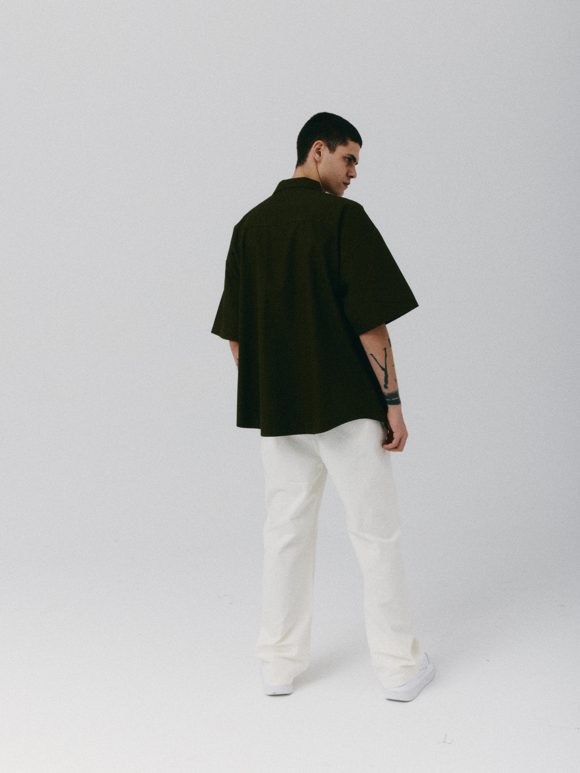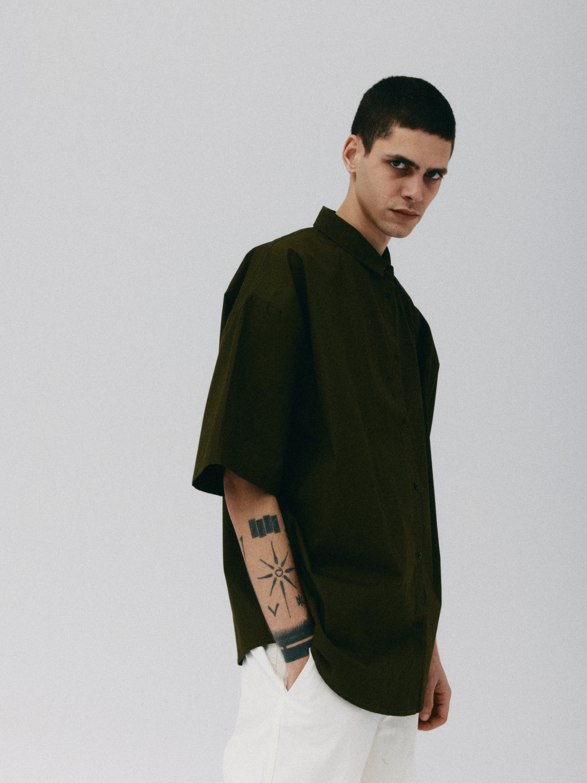 Koszula o luźnym, ultra oversize’owym, męskim kroju z krótkim rękawem. Klasyczna, nieco wydłużona forma, o pudełkowym kształcie. Prosty, duży kołnierzyk oraz szerokie rękawy dopełniają całości. Model zapinany na guziki. Solidna baza pod każdy look. Świetnie wygląda z jeansami w każdym odcieniu jak i garniturowymi spodniami.