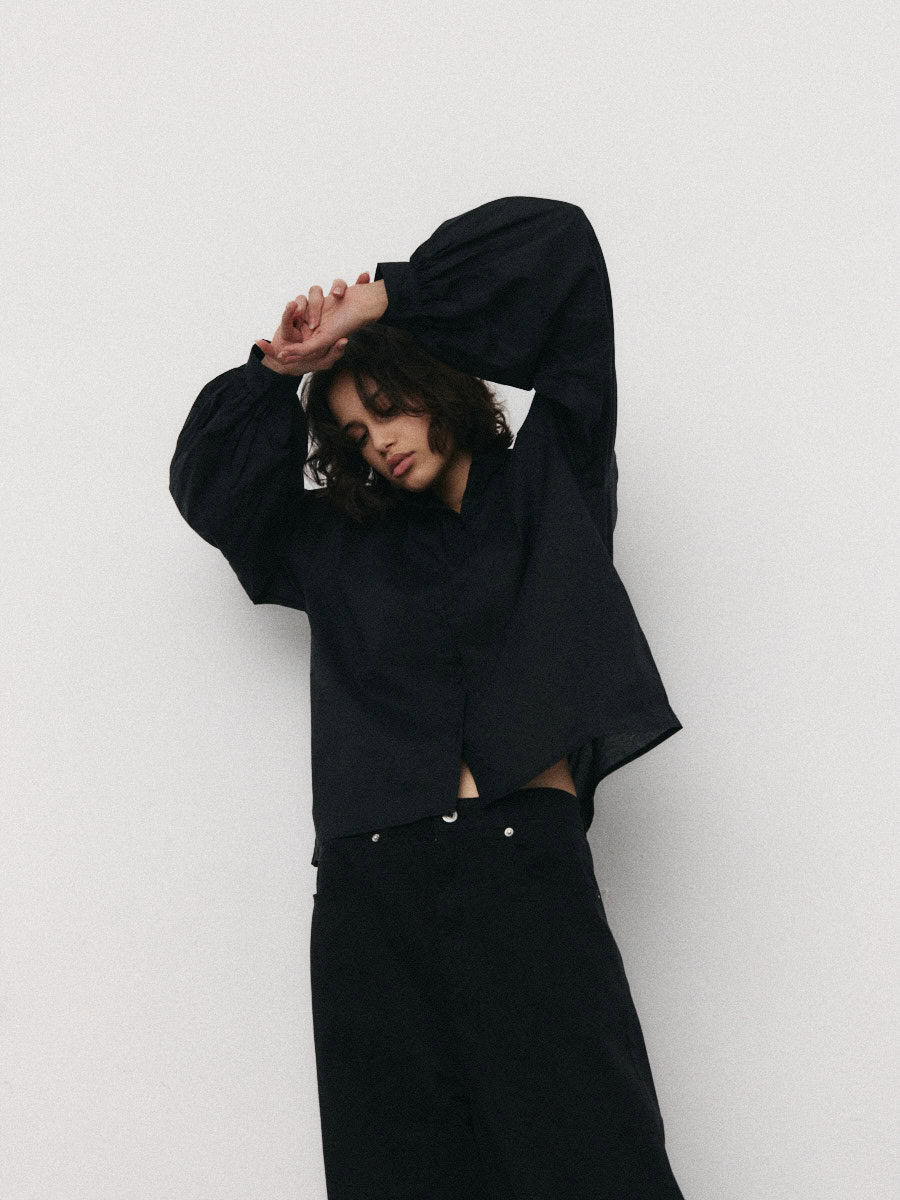 Koszula z bufiastymi rękawami AMPLE została uszyta w 100% z bawełny. Przyjemna w dotyku tkanina nie podrażnia skóry, nie gryzie i zapewnia maksymalny komfort noszenia. Dzianina o gładkiej strukturze, świetnie absorbuje wilgoć.