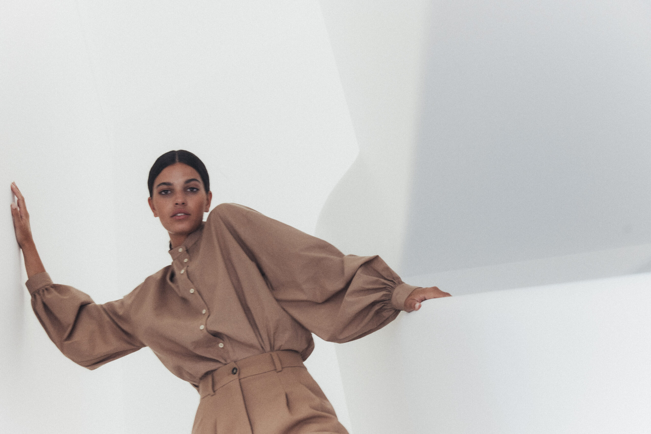 Koszula z bufiastymi rękawami AMPLE została uszyta w 100% z bawełny. Przyjemna w dotyku tkanina nie podrażnia skóry, nie gryzie i zapewnia maksymalny komfort noszenia. Dzianina o gładkiej strukturze, świetnie absorbuje wilgoć.