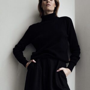 Cienki, delikatnie oversize’owy golf o gładkim splocie. Luźna stójka pod szyją pozwala na swobodne wywinięcie. Dopasowany rękaw zakończony ściągaczem. Świetnie sprawdzi się na co dzień z jeansami jak i na wieczór ze spódnicą czy eleganckimi spodniami HAI black.