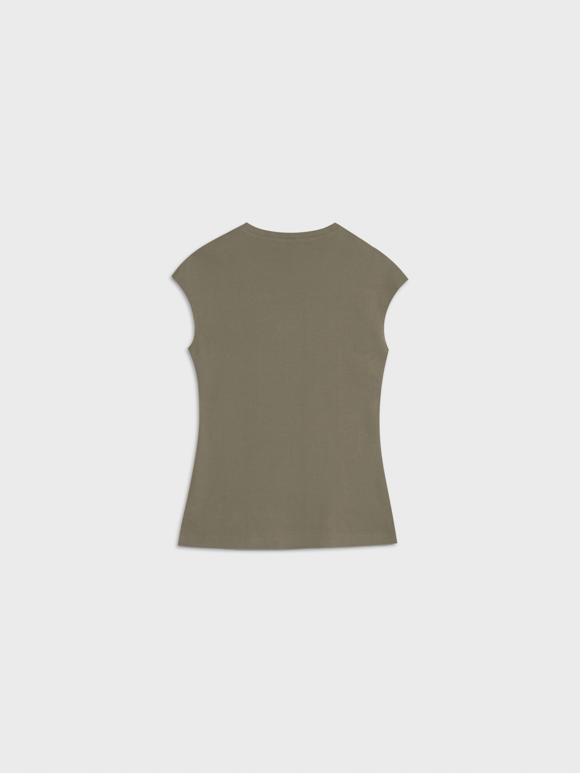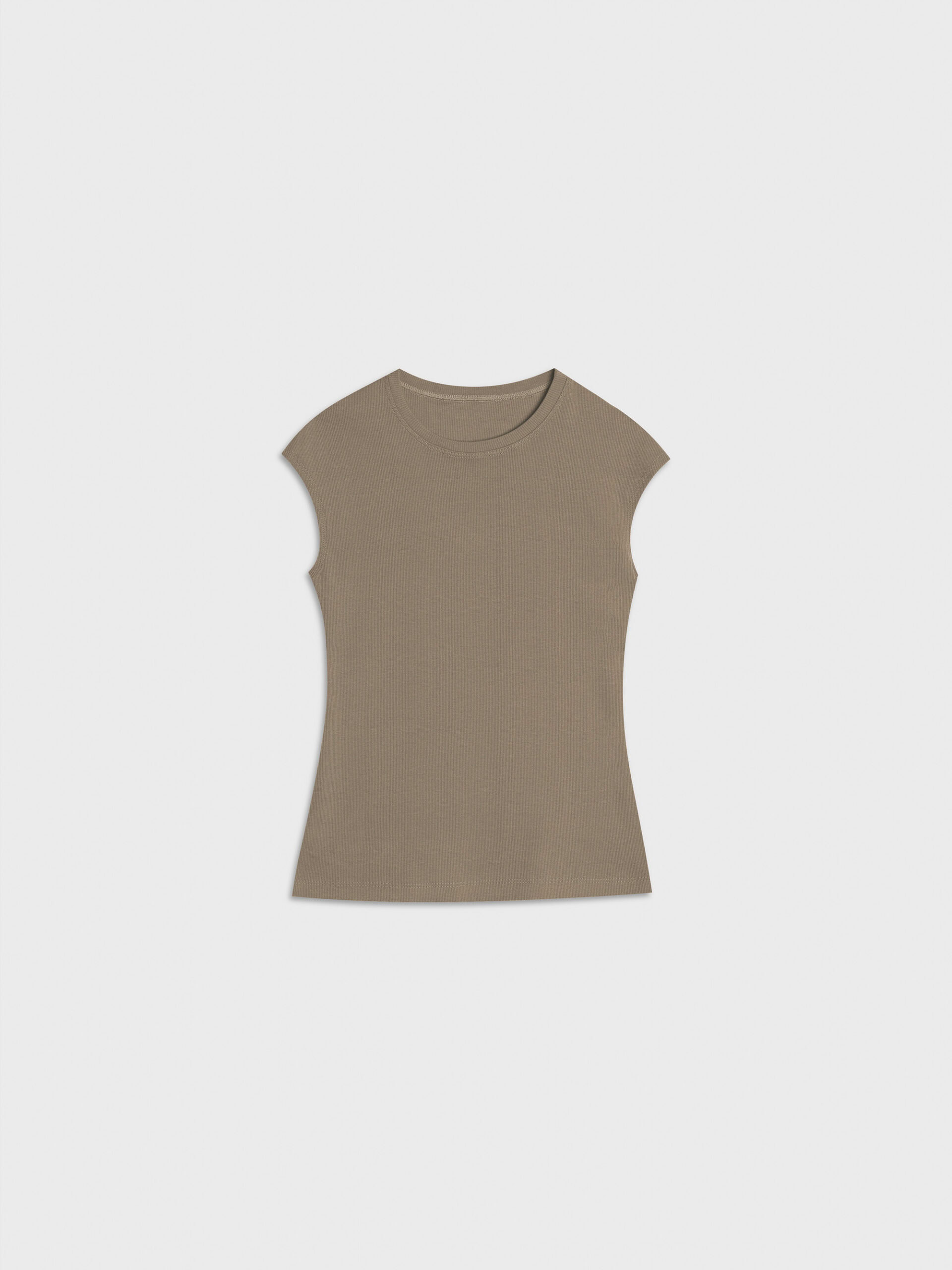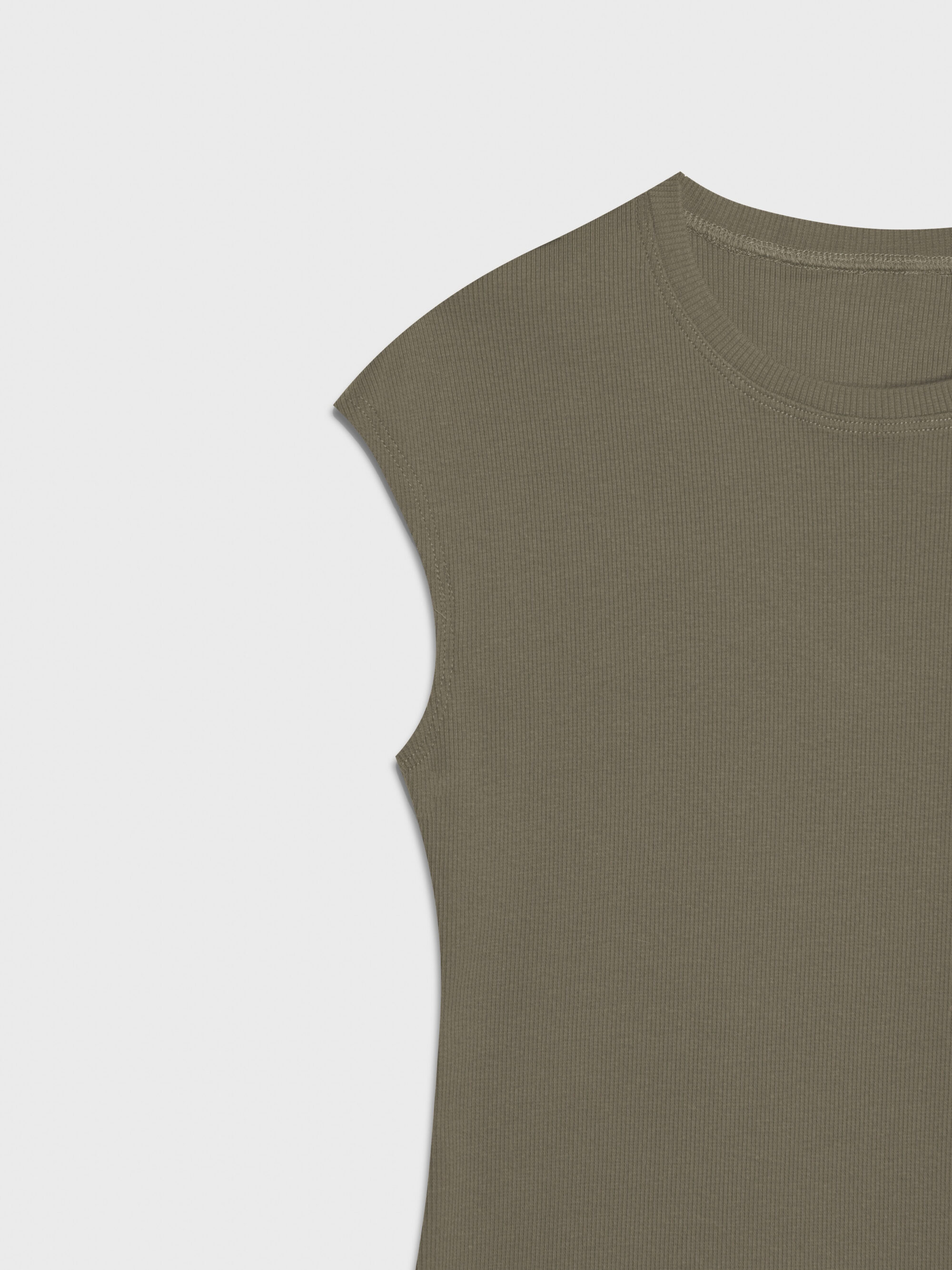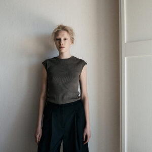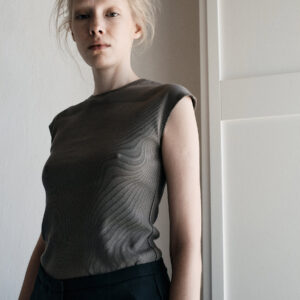 Dopasowana bluzka bez rękawów o minimalistycznym kroju. Idealny basic z zabudowanym dekoltem. Doskonale sprawdzi się zarówno w casualowej jak i w wieczorowej wersji. Może być też noszona jako baza pod marynarkę czy kardigan.