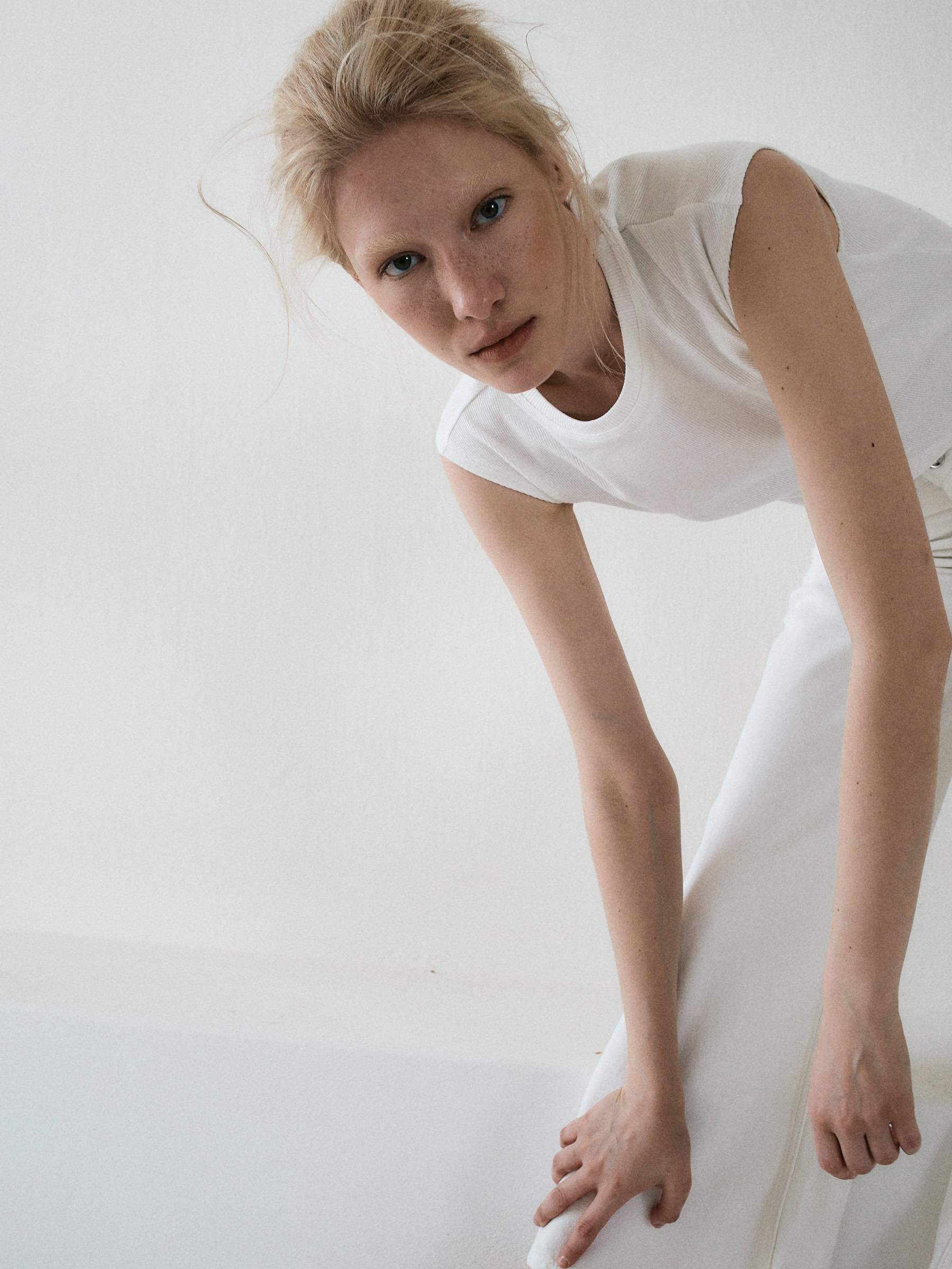 Dopasowana bluzka bez rękawów o minimalistycznym kroju. Idealny basic z zabudowanym dekoltem. Doskonale sprawdzi się zarówno w casualowej jak i w wieczorowej wersji. Może być też noszona jako baza pod marynarkę czy kardigan.