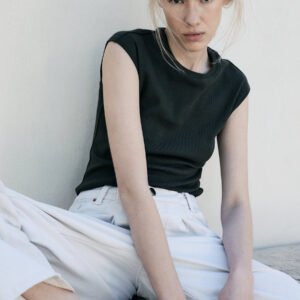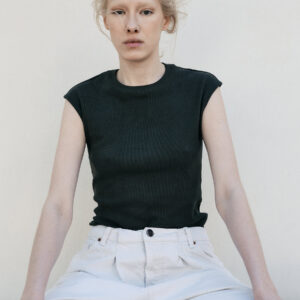 Dopasowana bluzka bez rękawów o minimalistycznym kroju. Idealny basic z zabudowanym dekoltem. Doskonale sprawdzi się zarówno w casualowej jak i w wieczorowej wersji. Może być też noszona jako baza pod marynarkę czy kardigan.