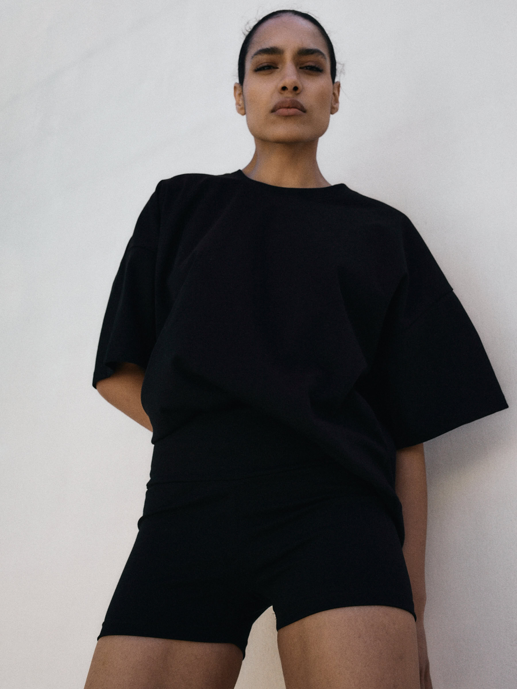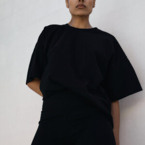 Klasyczny t-shirt o kroju oversize, z delikatnie wydłużonymi rękawami. Wygodny, pudełkowy krój idealnie sprawdzi się zarówno na co dzień, do pracy, jak i na wieczór. Świetnie wygląda w połączeniu z szortami z wysokim stanem, eleganckimi cygaretkami i każdą opcją jeansów. Będzie stanowił doskonały zestaw z kompletem dresowym 1990.