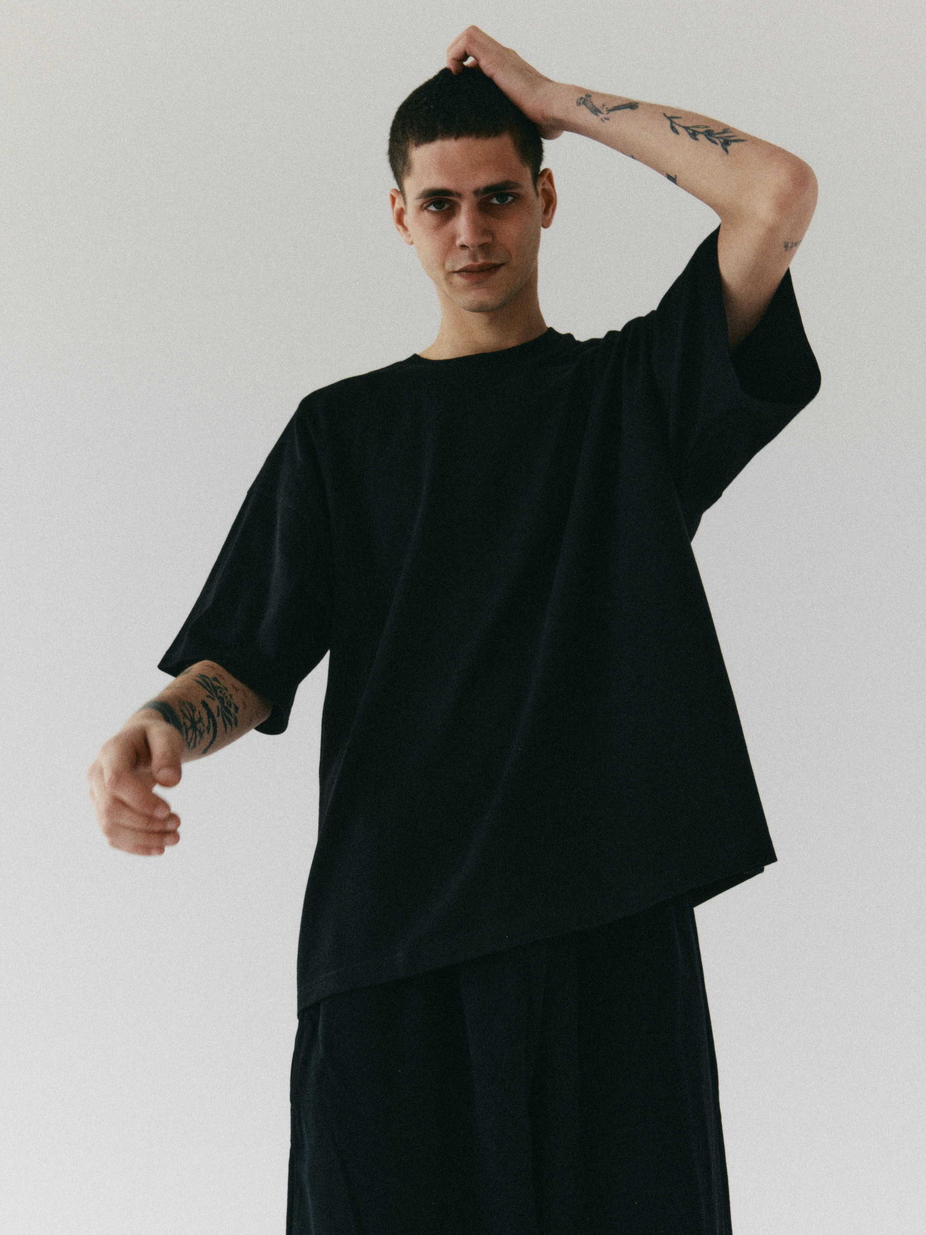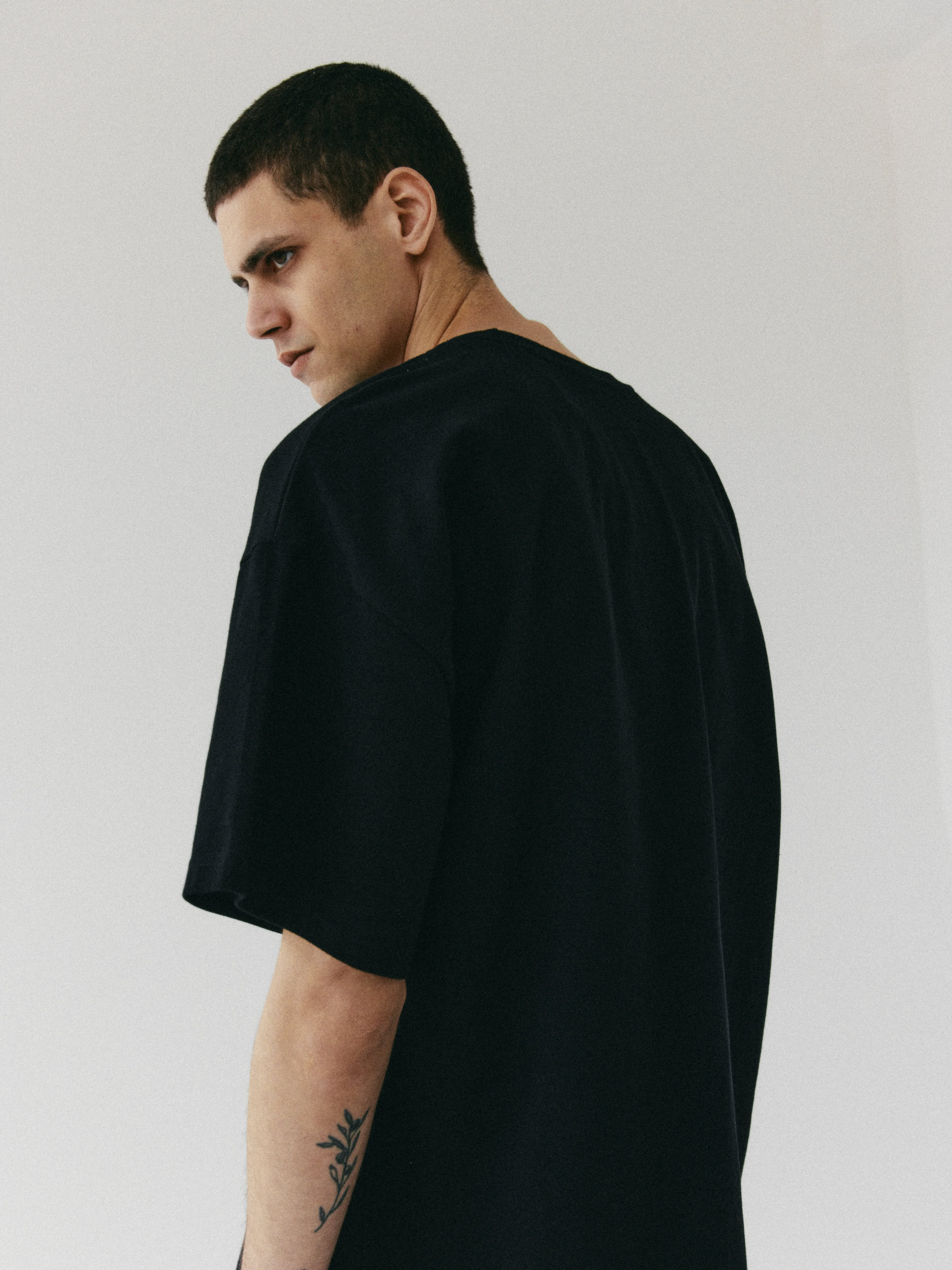 Klasyczny t-shirt o kroju oversize, z delikatnie wydłużonymi rękawami. Wygodny, pudełkowy krój idealnie sprawdzi się zarówno na co dzień, do pracy, jak i na wieczór. Świetnie wygląda w połączeniu z szortami z wysokim stanem, eleganckimi cygaretkami i każdą opcją jeansów. Będzie stanowił doskonały zestaw z kompletem dresowym 1990.