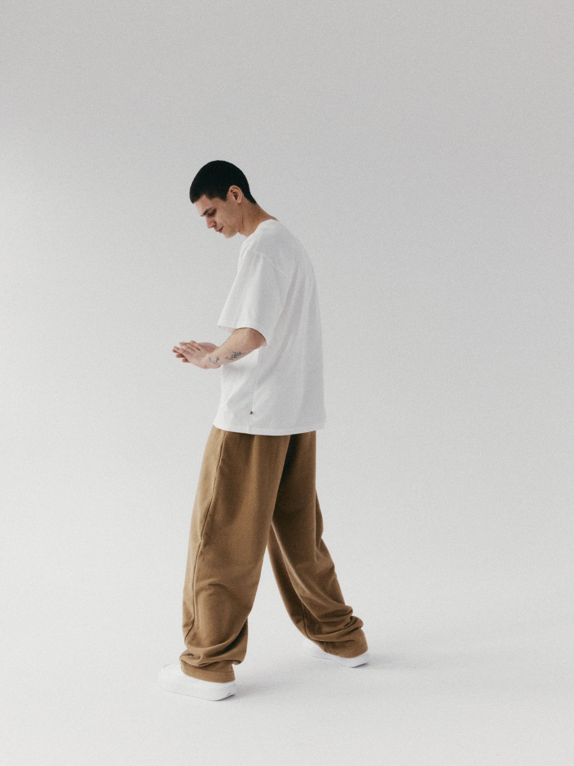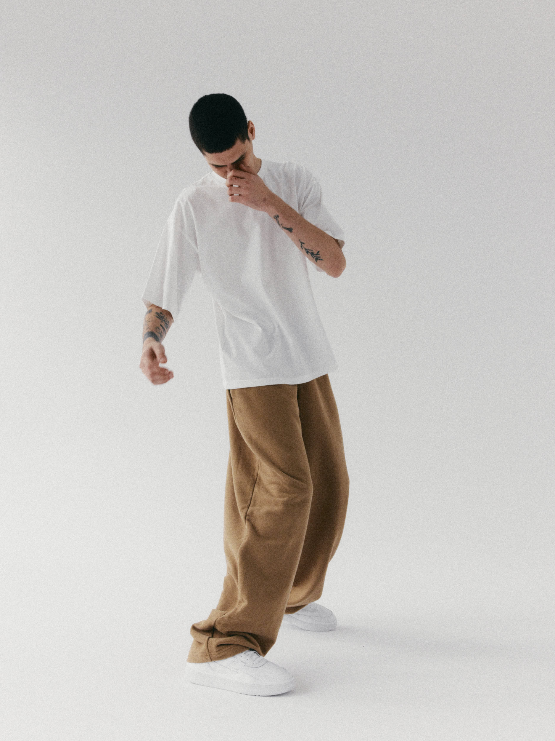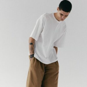 Klasyczny t-shirt o kroju oversize, z delikatnie wydłużonymi rękawami. Wygodny, pudełkowy krój idealnie sprawdzi się zarówno na co dzień, do pracy, jak i na wieczór. Świetnie wygląda w połączeniu z szortami z wysokim stanem, eleganckimi cygaretkami i każdą opcją jeansów. Będzie stanowił doskonały zestaw z kompletem dresowym 1990.