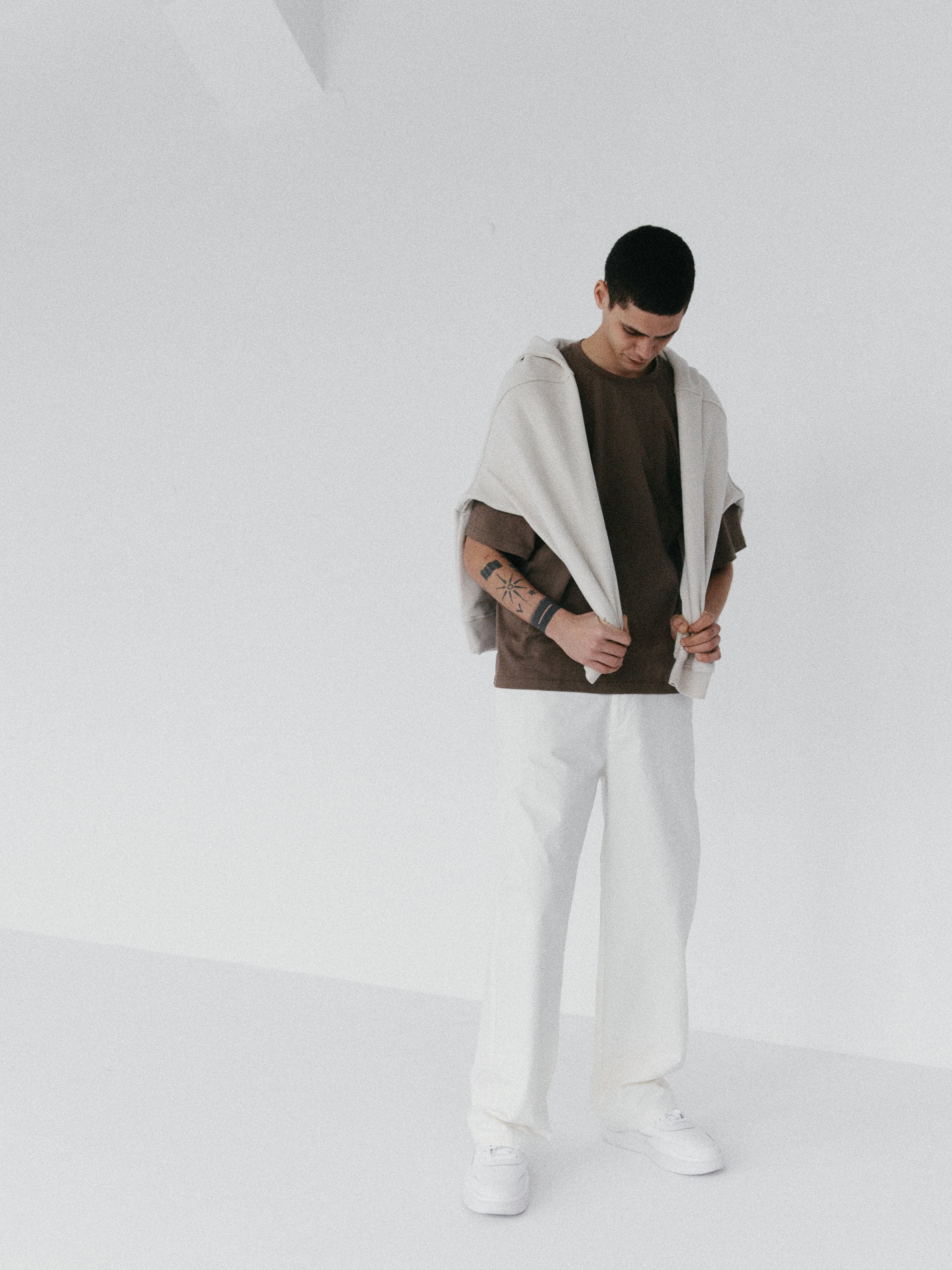 Wysokiej jakości bawełna, z której uszyty jest t-shirt READY TO WEAR, produkowana jest na nasze specjalne zamówienie. Wykończona jest specjalnym uszlachetnieniem, które nadaje jej gładkości i zabezpiecza przed nadmiernym peelingowaniem. Dodatkowo dzianina została poddana procesowi zmiękczania, dzięki czemu jest niezwykle przyjemna dla skóry.