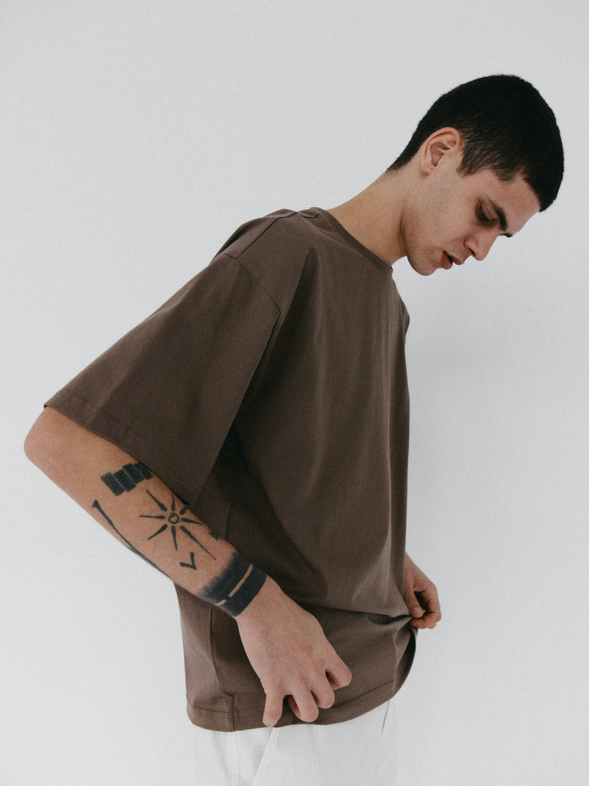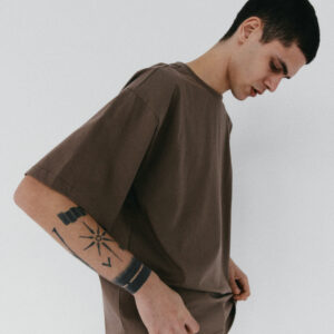 Klasyczny t-shirt o kroju oversize, z niestandardowo długimi rękawami i lekko obniżoną linią ramion. Wygodny, minimalistyczny krój idealnie sprawdzi się zarówno na co dzień do pracy, na wyjazd, jak i na wieczór Świetnie wygląda w połączeniu z szortami z wysokim stanem, eleganckimi cygaretkami i każdą opcją jeansów.