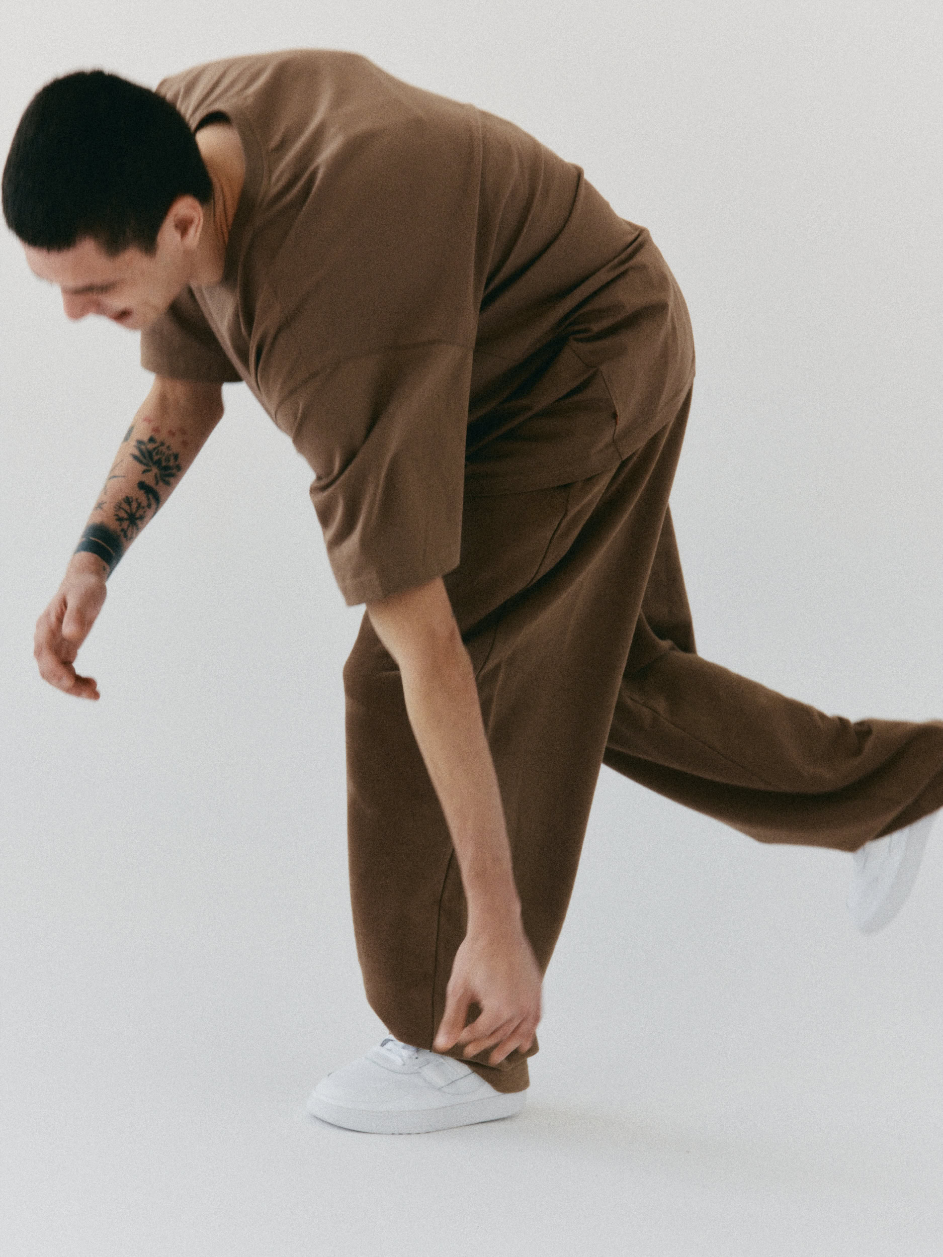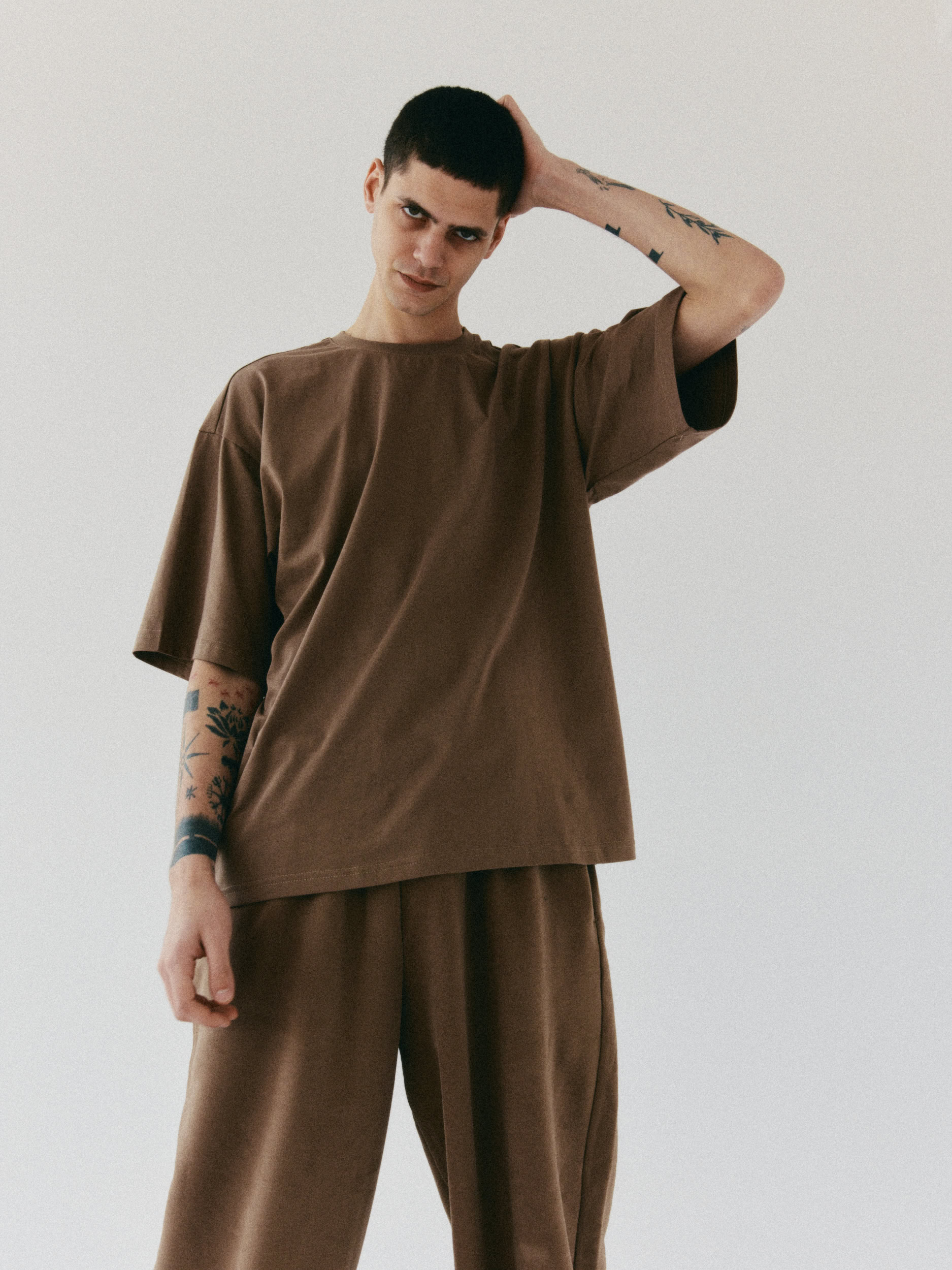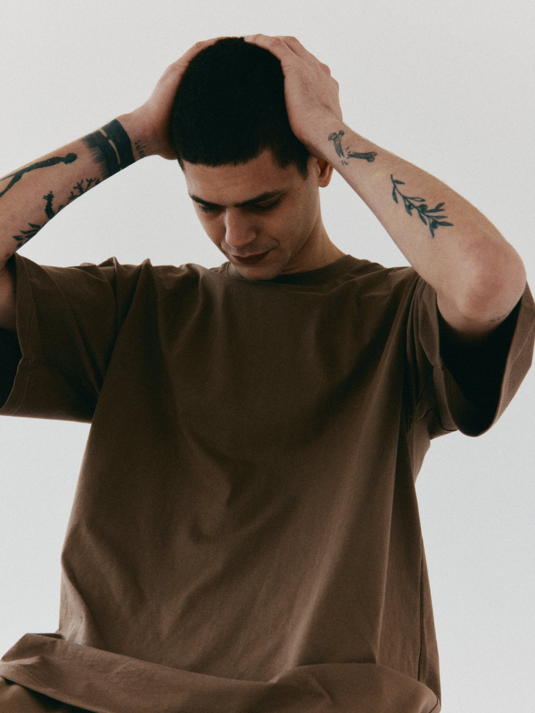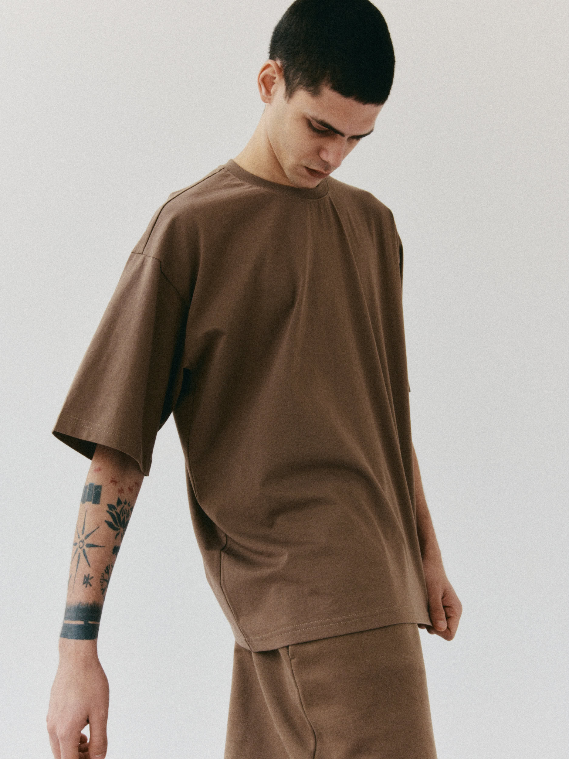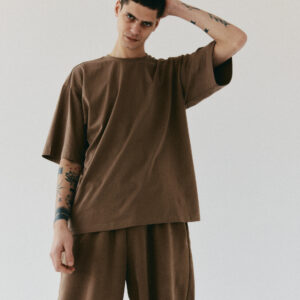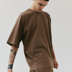 Klasyczny t-shirt o kroju oversize, z niestandardowo długimi rękawami i lekko obniżoną linią ramion. Wygodny, minimalistyczny krój idealnie sprawdzi się zarówno na co dzień do pracy, na wyjazd, jak i na wieczór Świetnie wygląda w połączeniu z szortami z wysokim stanem, eleganckimi cygaretkami i każdą opcją jeansów.