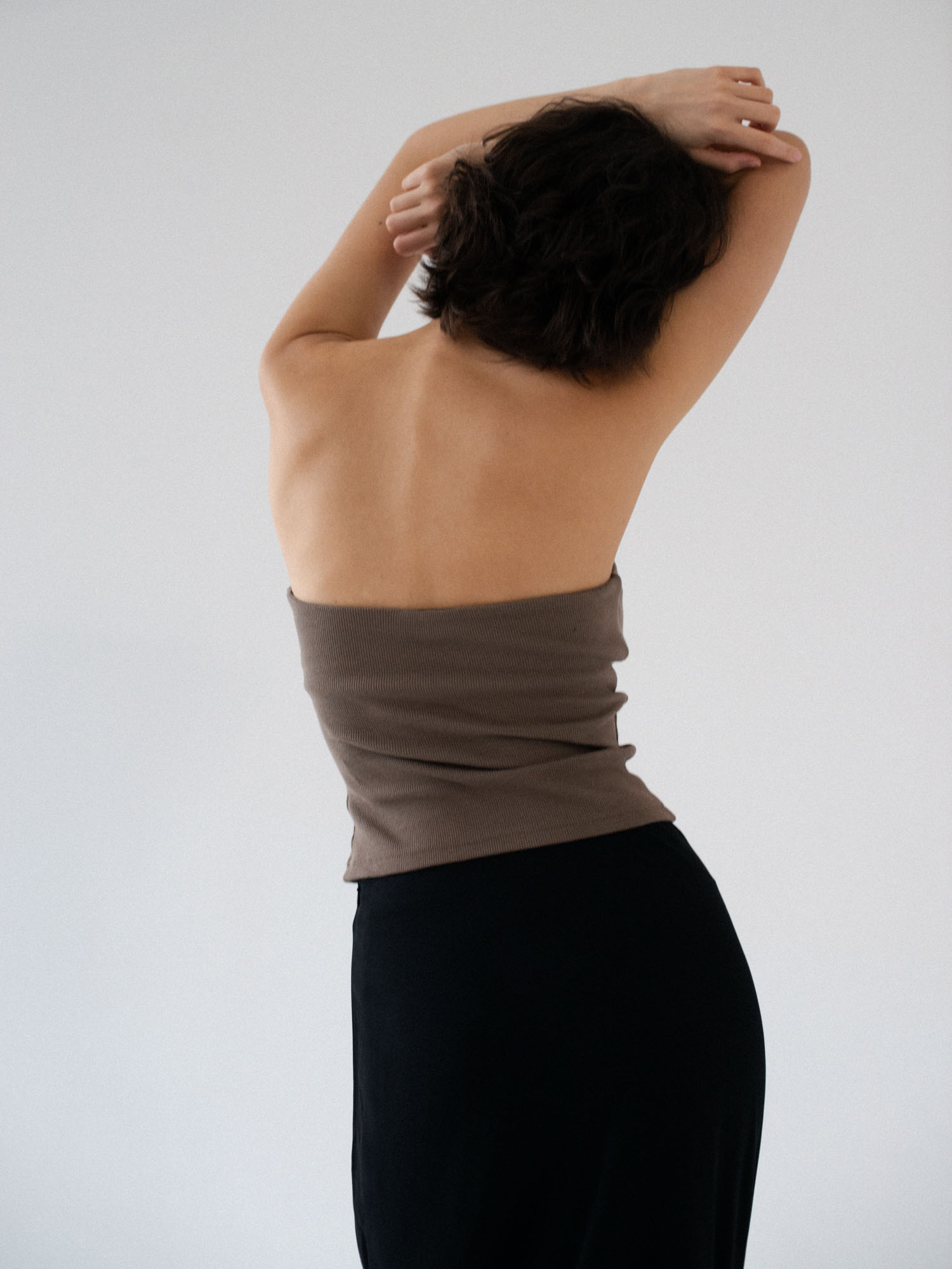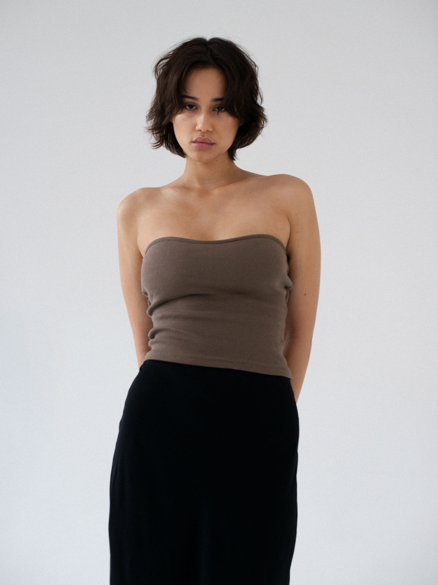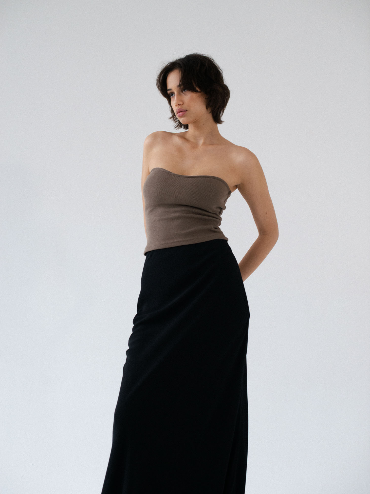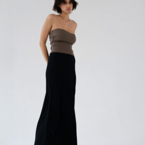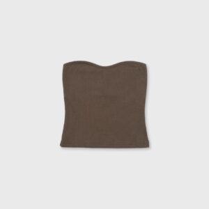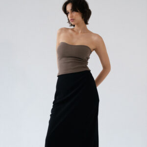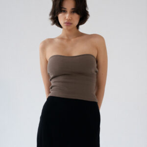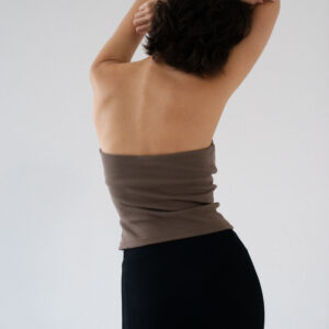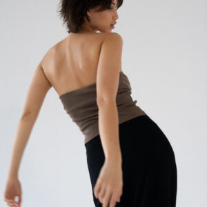 Minimalistyczny top bandeau. Uszyty z bawełnianego dżerseju w prążki idealnie dostosowuje się do sylwetki. Top ma ukrytą podszewkę na biuście oraz elastyczny brzeg wokół góry jak i pod biustem co zapobiega jego opadaniu oraz zapewnia komfort noszenia. Świetnie sprawdzi się zarówno z casualowymi jeansami, jak i z elegancką spódnicą.