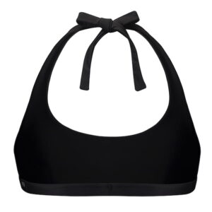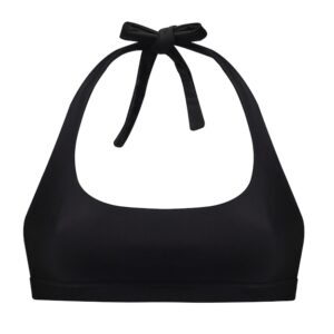 Biustonosz do pływania z kolekcji TUMBLR GRLS uszyty z dwóch warstw wytrzymałego materiału pochodzącego z recyclingu. Model typu bikini, wiązany na szyi z mocno wyciętymi miseczkami. Doskonale radzi sobie zarówno z małym jak i dużym biustem. Idealny do opalania, a dzięki dłuższym i odrobinę szerszym sznurkom można zawiązać go na plecach, tak by uniknąć opalania pasków. Konstrukcja biustonosza bardzo dobrze zbiera i układa piersi. Mocno powycinany, delikatny tył zaprojektowany jest w taki sposób, by wyglądać dobrze do koszulek typu backless. Pomimo dużych wycięć kostium zapewnia komfort przy pływaniu. Model wzmocniony pod biustem tkaną gumą wyprodukowaną na specjalne zamówienie, która nie rozciąga się mimo częstego kontaktu z wodą.