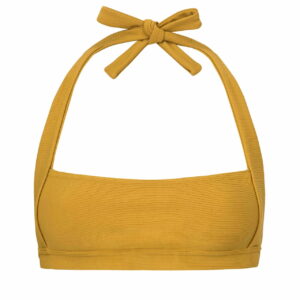 Dobrze trzymający biustonosz do pływania z kolekcji LUST FOR THE SUN, uszyty z szybkoschnącego, elastycznego materiału o delikatnie prążkowanej strukturze. Model typu bikini, wiązany na szyi z mocno wyciętymi miseczkami. Konstrukcja biustonosza została dodatkowo wzmocniona bocznymi wstawkami, które doskonale podtrzymują, nawet bardzo ciężkie piersi i modelują je w taki sposób by miały ładny, okrągły kształt. Dzięki dłuższym i odrobinę szerszym sznurkom biustonosz można zawiązać na plecach, tak by uniknąć opalania pasków. Komfort noszenia zapewnia wszyta delikatna podszewka typu second skin, która umożliwia cyrkulację powietrza i sprawnie odprowadza wilgoć. U góry wszyta mała metka z ekoskóry.