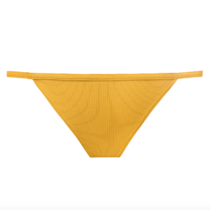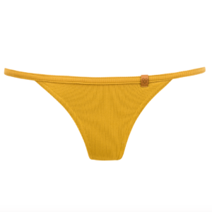 Figi z kolekcji LUST FOR THE SUN uszyte z szybkoschnącego, elastycznego materiału o delikatnie prążkowanej strukturze. Model typu spaghetti, pozbawiony tradycyjnego paska gumowego, który zastąpiony został cienkimi sznureczkami na linii bioder. Optymalne zabudowanie majtek z tyłu (kształt pomiędzy klasycznymi figami, a stringami) oraz wykończenie specjalistycznymi gumkami, zapewniają komfort noszenia. Idealne do opalania. Model wykończony bardzo przyjemną w dotyku podszewką, w kolorze materiału zewnętrznego, która umożliwia cyrkulację powietrza i sprawnie odprowadza wilgoć. Z przodu wszyta mała metka z ekoskóry.