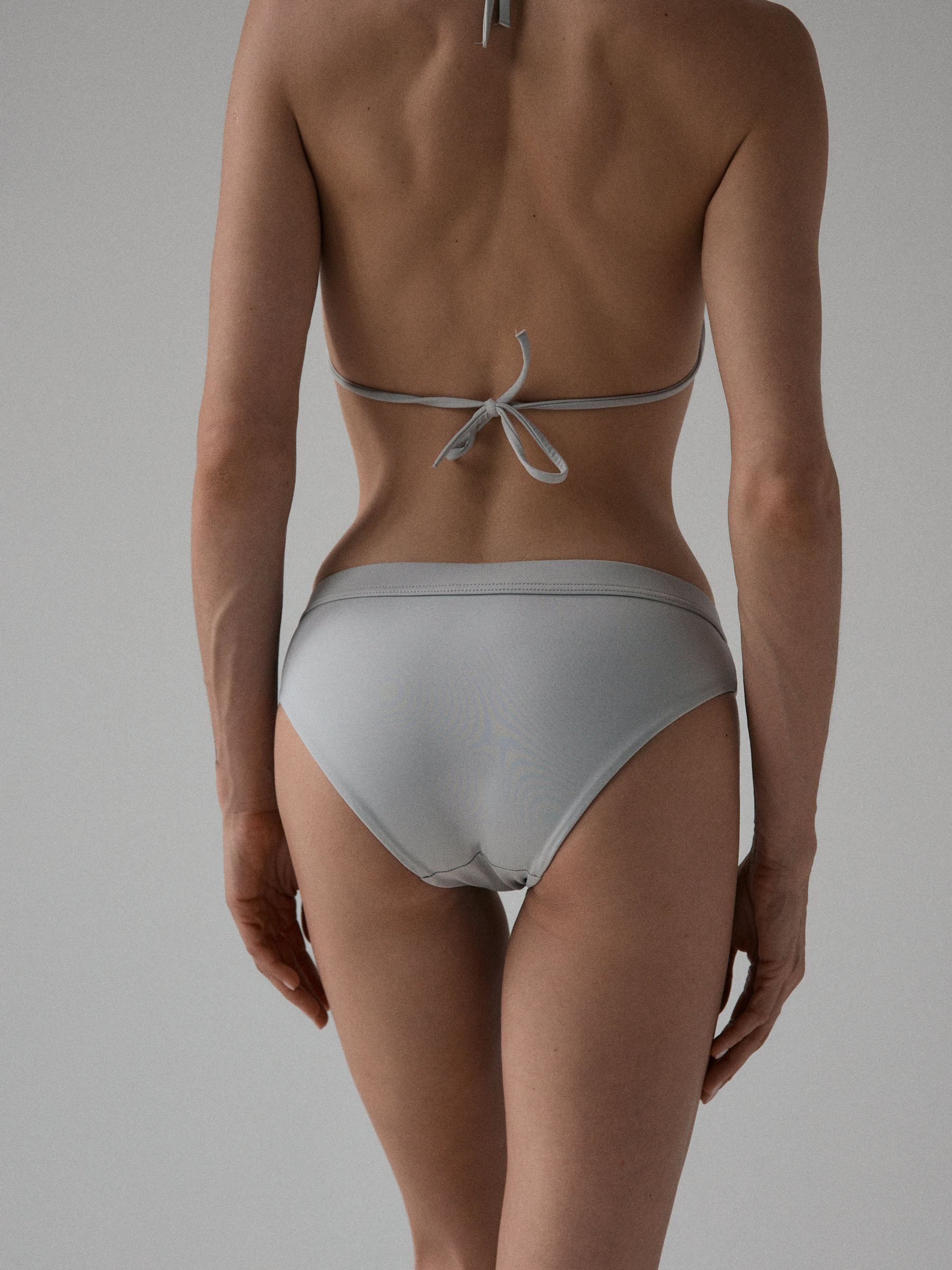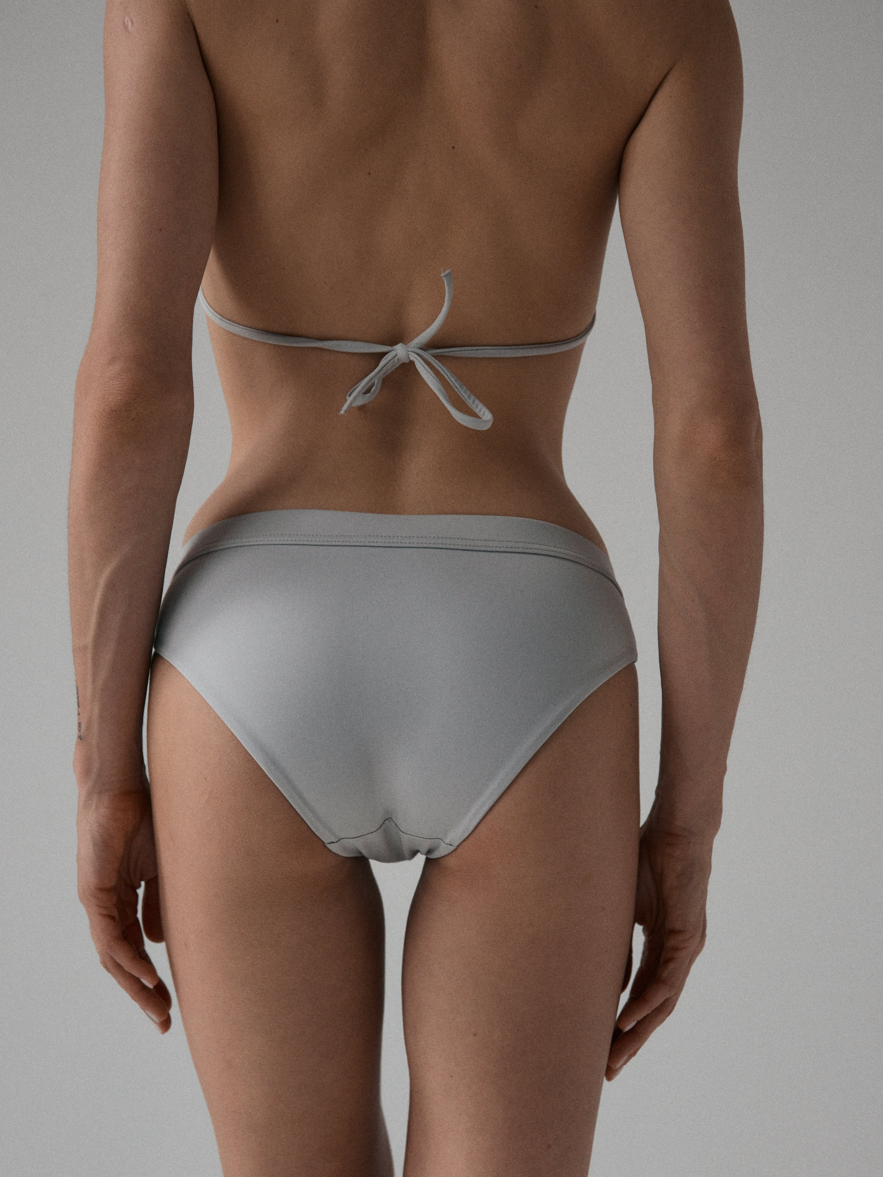 Figi kąpielowe typu bikini o klasycznym kroju, z delikatnie obniżonym stanem. Optymalne zabudowanie majtek z tyłu zapewnia komfort noszenia. Wykończone gumką, która zapobiega marszczeniu się i zawijaniu. Wycięcia po bokach optycznie wydłużają nogi. Niski stan doskonale podkreśla biodra. Model idealnie sprawdzi się w połączeniu z naszymi biustonoszami CREO oraz ORATE.
