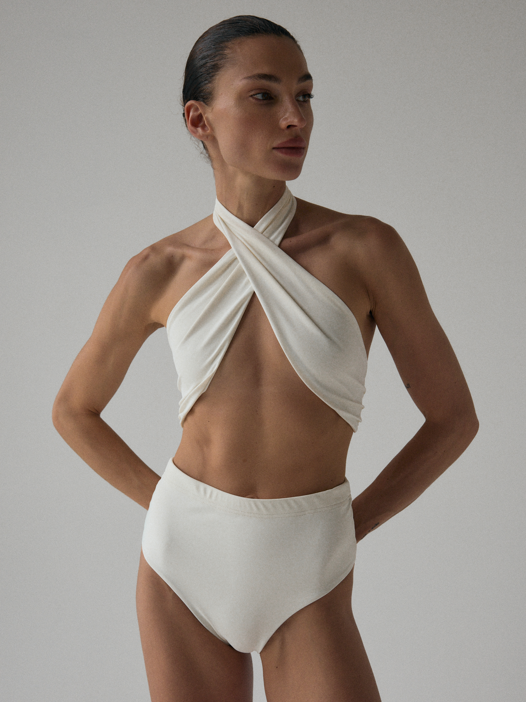 figi kąpielowe typu high-waist OJALA eggshell