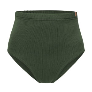Figi z kolekcji LUST FOR THE SUN uszyte z szybkoschnącego, elastycznego materiału o delikatnie prążkowanej strukturze. Model z mocno podwyższanym stanem dla #muuvgirls, które chcą podkreślić wcięcie w talii i pupę, a jednocześnie zamaskować drobne niedoskonałości. Optymalne zabudowanie majtek zapewnia komfort noszenia, a dzięki specjalistycznym gumkom wszytym w boki, figi nie zwijają się, ani nie marszczą. Model wykończony bardzo przyjemną w dotyku podszewką, w kolorze materiału zewnętrznego, która umożliwia cyrkulację powietrza i sprawnie odprowadza wilgoć. Z przodu wszyta mała metka z ekoskóry.