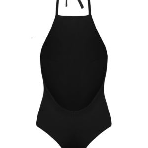 Kostium jest wiązany na szyi. Na linii obojczyka został zabezpieczony delikatną fiszbiną, żeby materiał nie marszczył się, nie rolował i zachowywał swój kształt. Model jest bardzo mocno wycięty po bokach, został więc wyposażony w specjalistyczne gumki zapobiegające wypadaniu i przemieszczaniu się piersi. Wyjątkowo mocny dekolt na plecach świetnie wygląda na plaży, a także tworzy efekt nagich pleców w zestawieniu ze spodniami lub spodenkami z wysokim stanem.