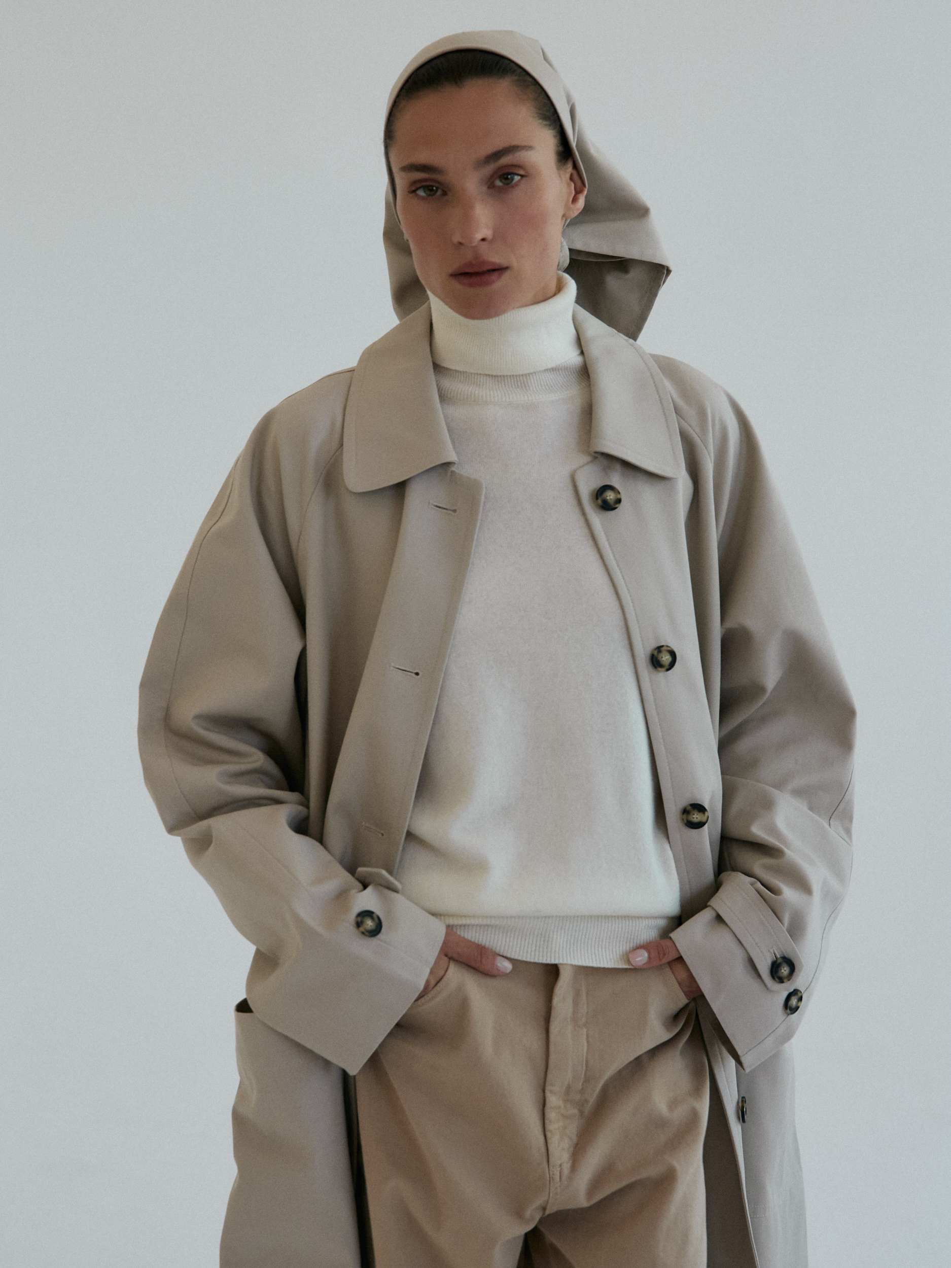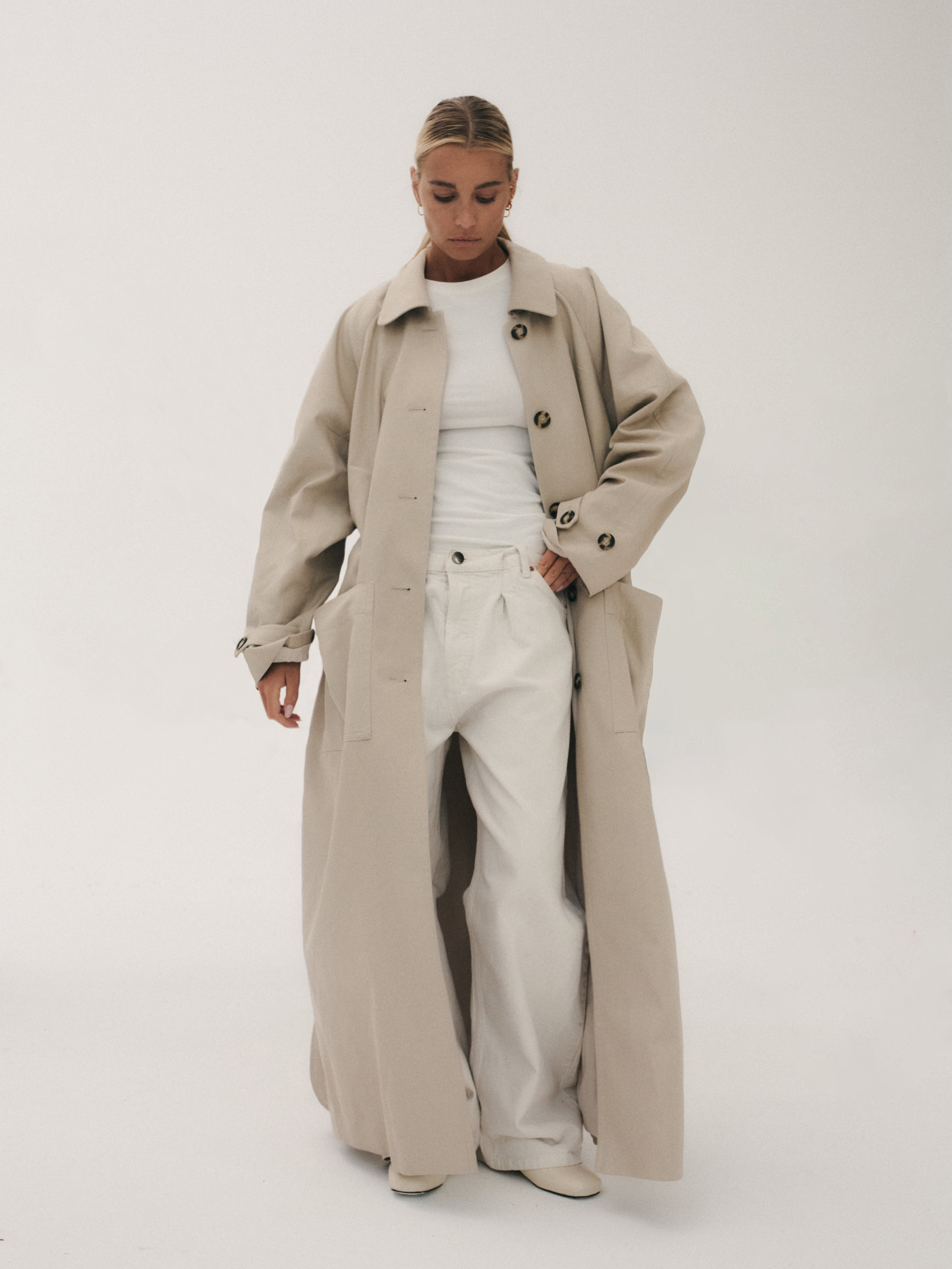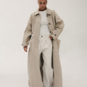 Oversize’owy, ultra-długi prochowiec o męskim kroju. Prosty, minimalistyczny. Zapinany na guziki oraz przewiązywany paskiem w talii. Dwie duże, funkcjonalne kieszenie z przodu. Opuszczona linia ramion i duże klapy z przodu dopełniają całości. Dopracowany w najmniejszym detalu idealnie sprawdzi się w sezonie przejściowym. Najlepiej sprawdzi się w monochromatycznych zestawach.