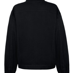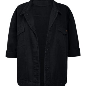 Przejściowa kurtka o luźnym, mocno oversize’owym kroju wykonana z bawełnianej tkaniny. Jej właściwości sprawiają, że produkt jest trwały i jakościowy. Ponadczasowy krój, wykończony klasyczny kołnierzykiem oraz dwiema funkcjonalnymi kieszeniami. Model zapinany jest na napy. Świetnie wygląda do basic’owego t-shirtu lub tanktopu. Latem narzucamy ją na sukienki, a jesienią i zimą zakładamy pod nią ulubione swetry.