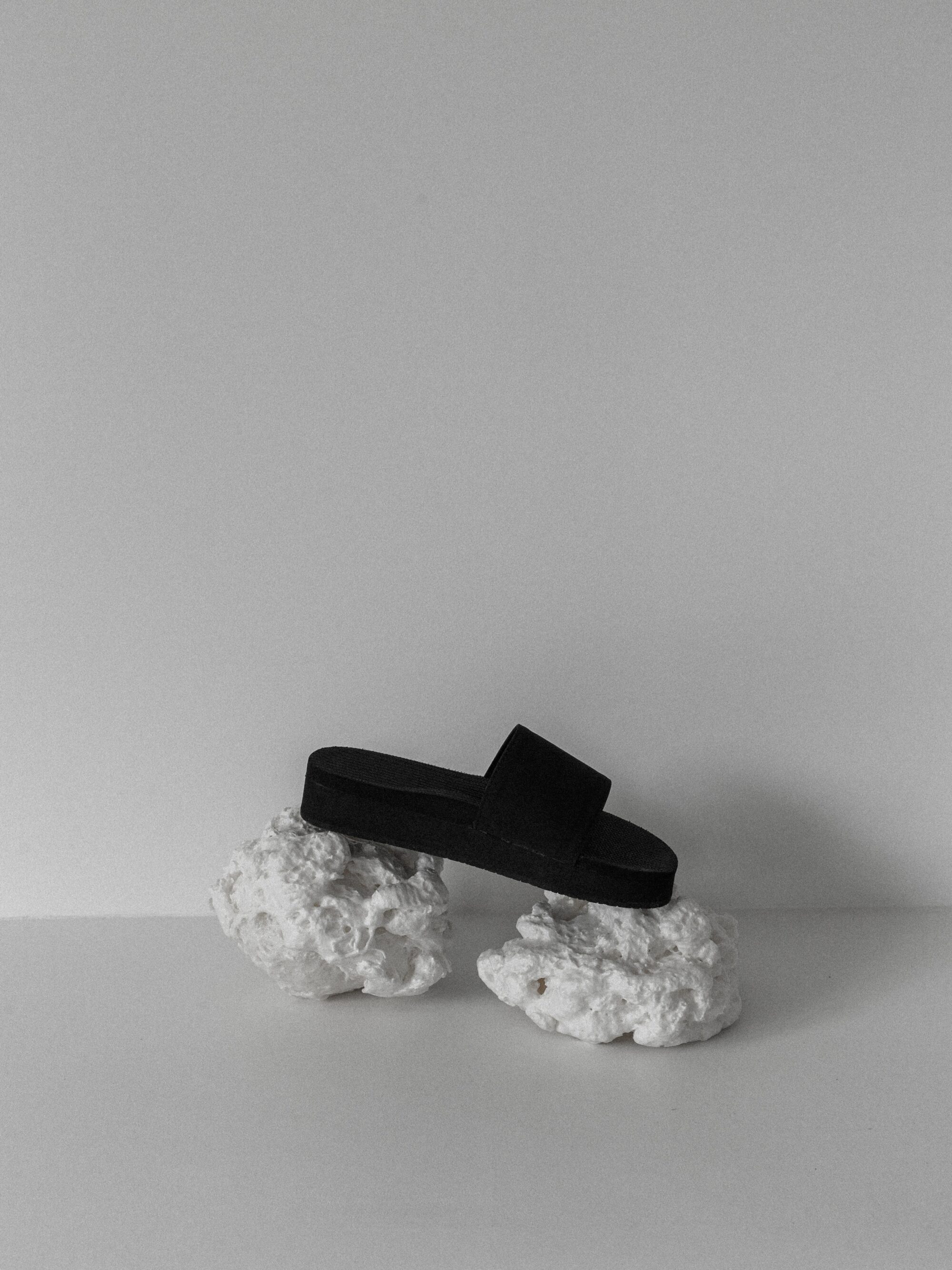 Klapki MARE black stworzone z największą starannością, bez użycia maszyn zasilanych paliwem. Posiadają właściwości wodoodporne. Podeszwa wykonana z opon pochodzących z recyklingu. Tylna struktura w kształcie logo firmy. Pasek wytworzony ze specjalnego włókna na zamówienie przy użyciu mniejszej ilości wody oraz farbowania. Klapki wyprodukowane w zrównoważony sposób z myślą o kierowaniu się w stronę bardziej świadomego stylu życia.