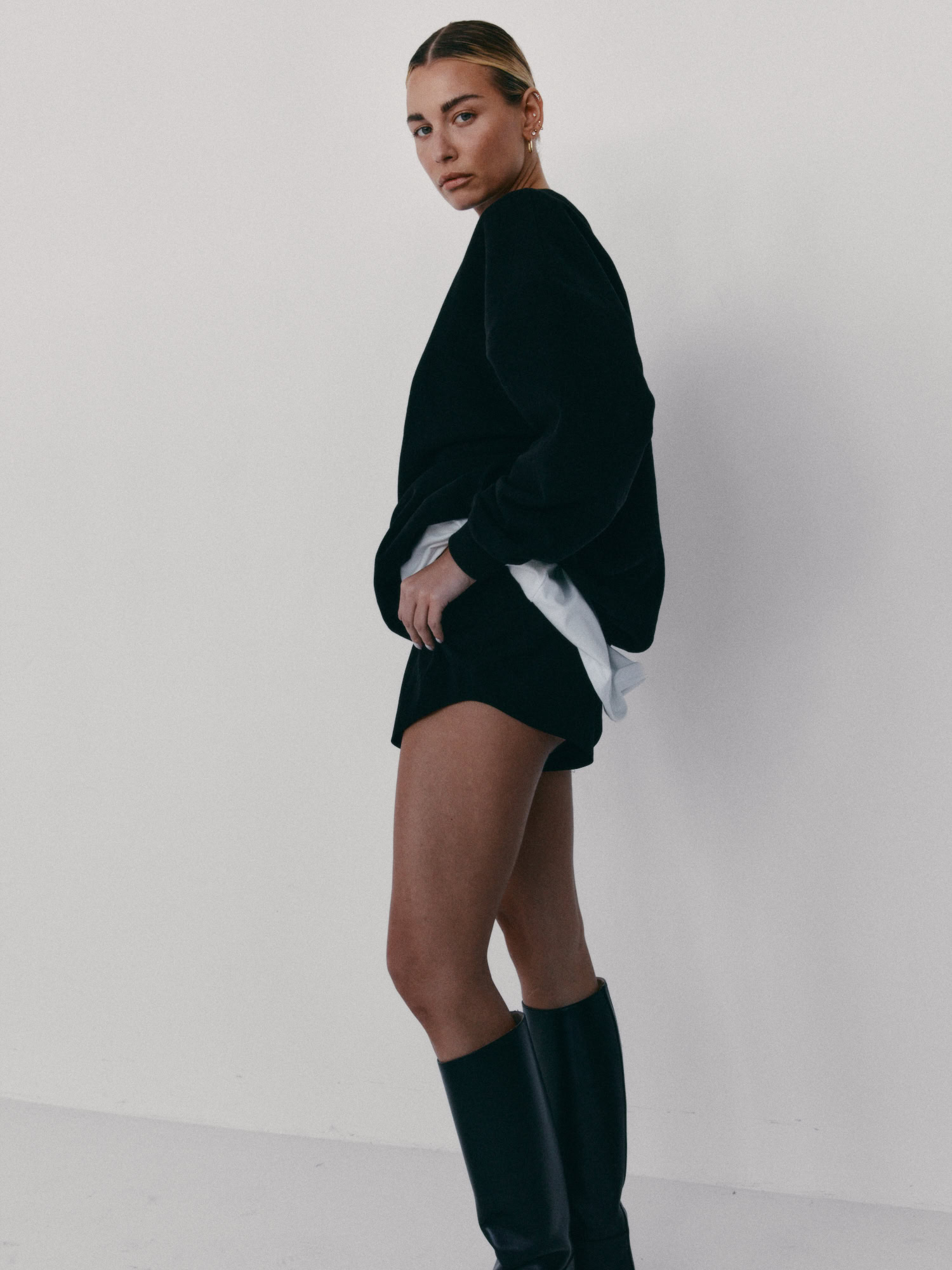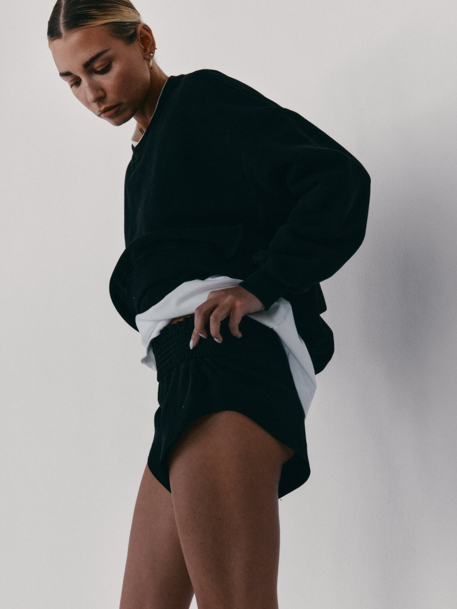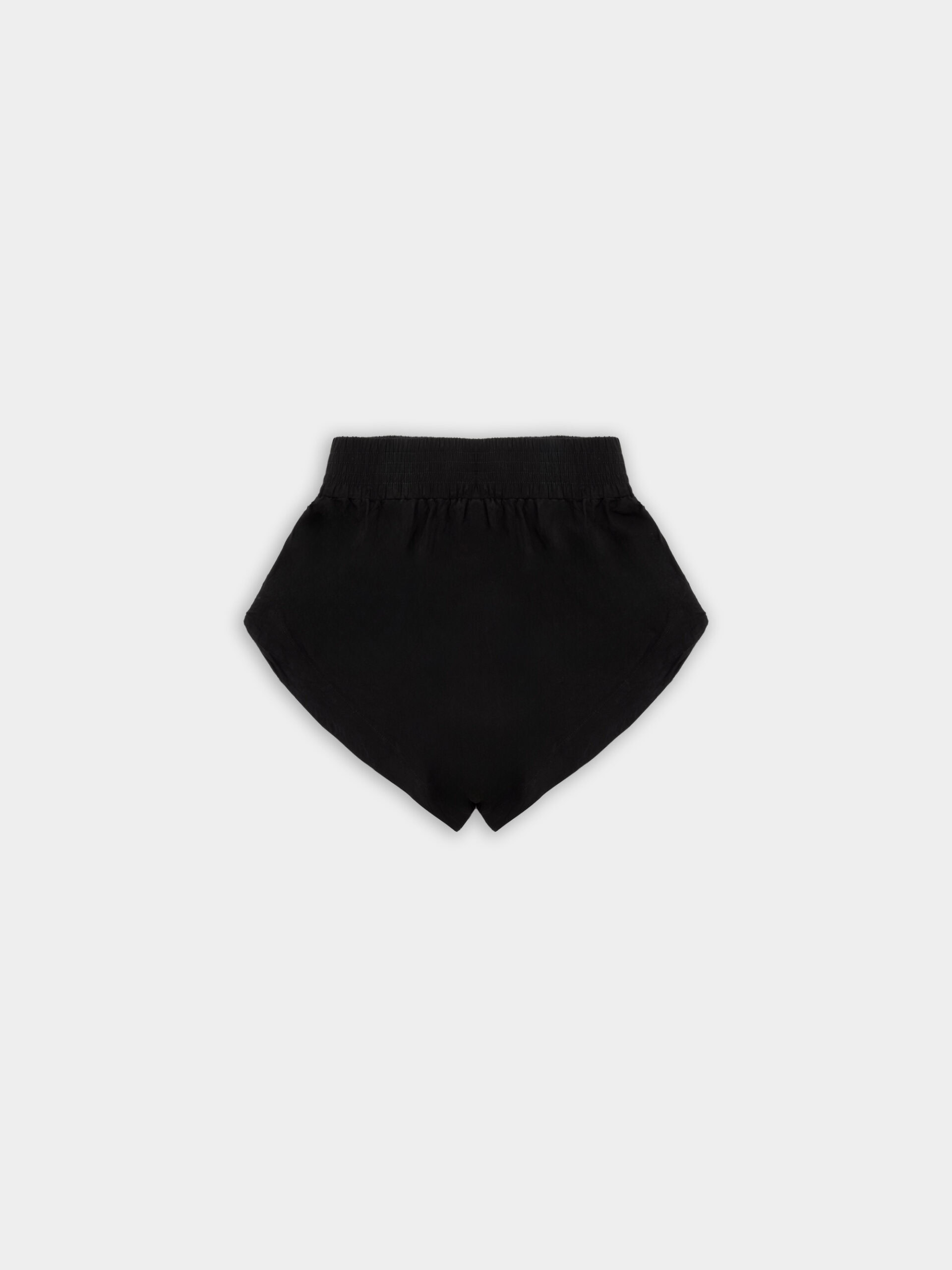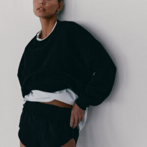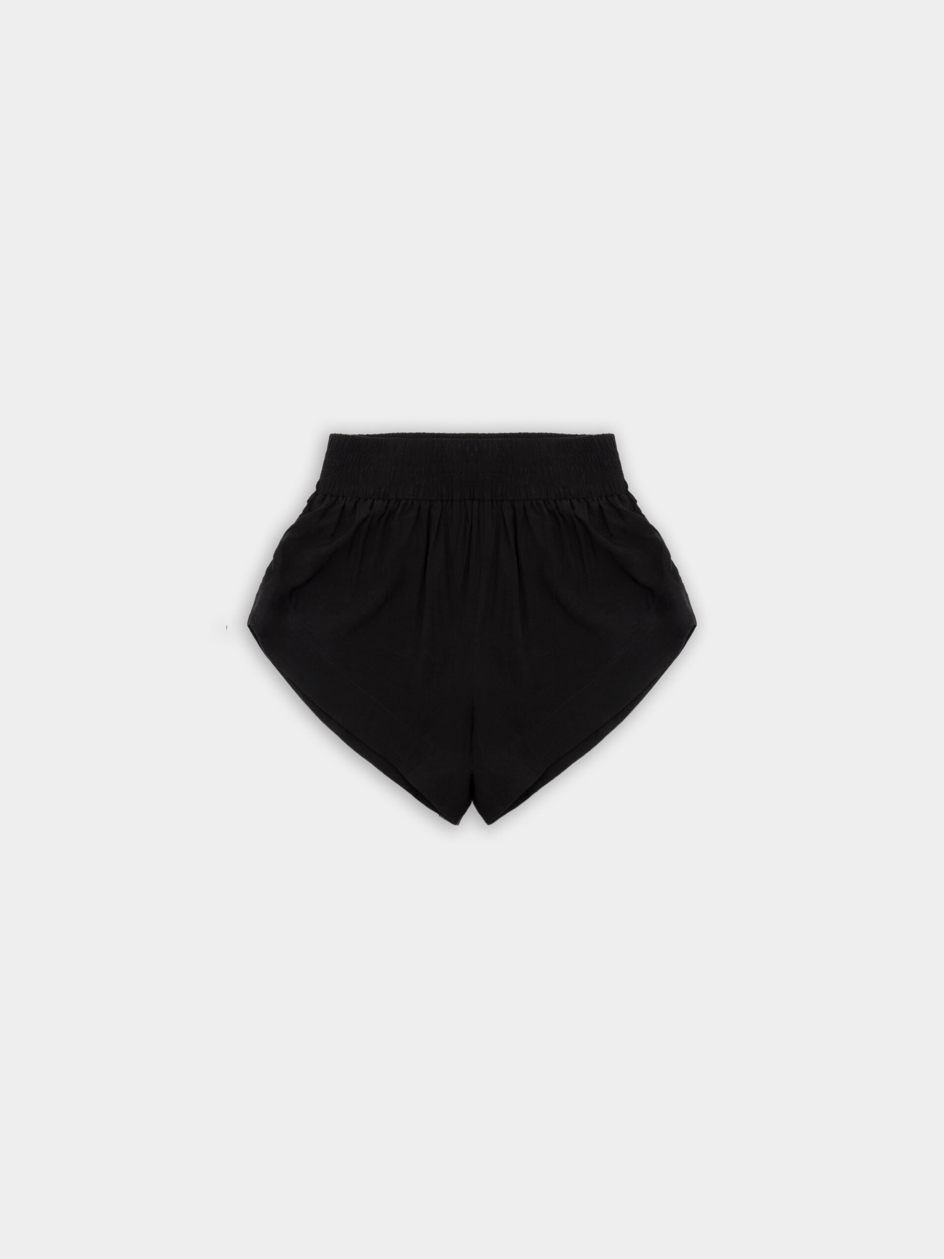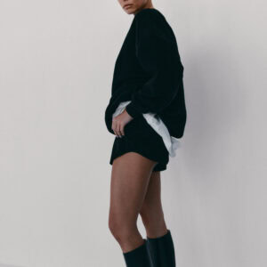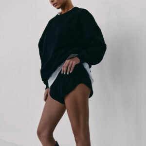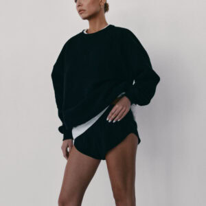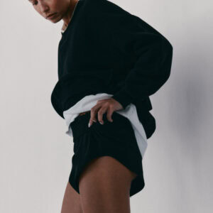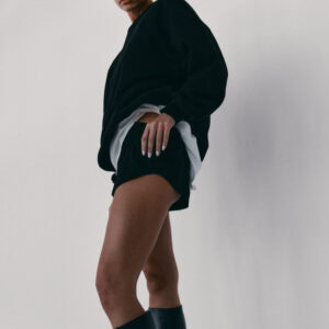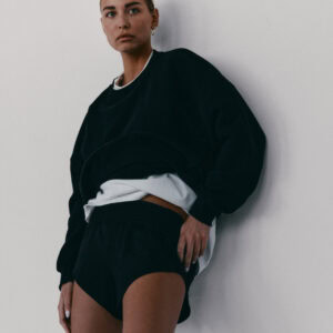 Spodenki z wysokim stanem i głębokimi wycięciami po bokach, które optycznie wydłużają nogi. Szeroka guma w pasie dopełnia całości i jednocześnie pozwala na swobodne dopasowanie do sylwetki. Model nie posiada suwaka. Najlepiej prezentują się w monochromatycznych zestawach. Idealnie komponują się z koszulką DUE w tym samym odcieniu.