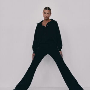 Spodnie LE PUMP uszyte są  z wysokogatunkowej bawełny z domieszką poliestru z recyklingu. Specjalne uszlachetnienie – szmerglowanie z prawej strony sprawia, że są niezwykle przyjemne w dotyku. Dzianina ma drobną pętelkę w środku, co czyni ją perfekcyjną na sezon wiosenno-letni, a także sprawia, że materiał miękko się układa. Nie podrażnia skóry, nie elektryzuje się.