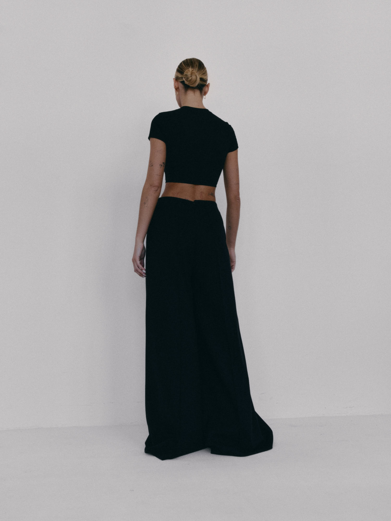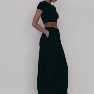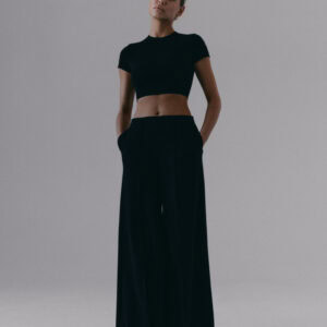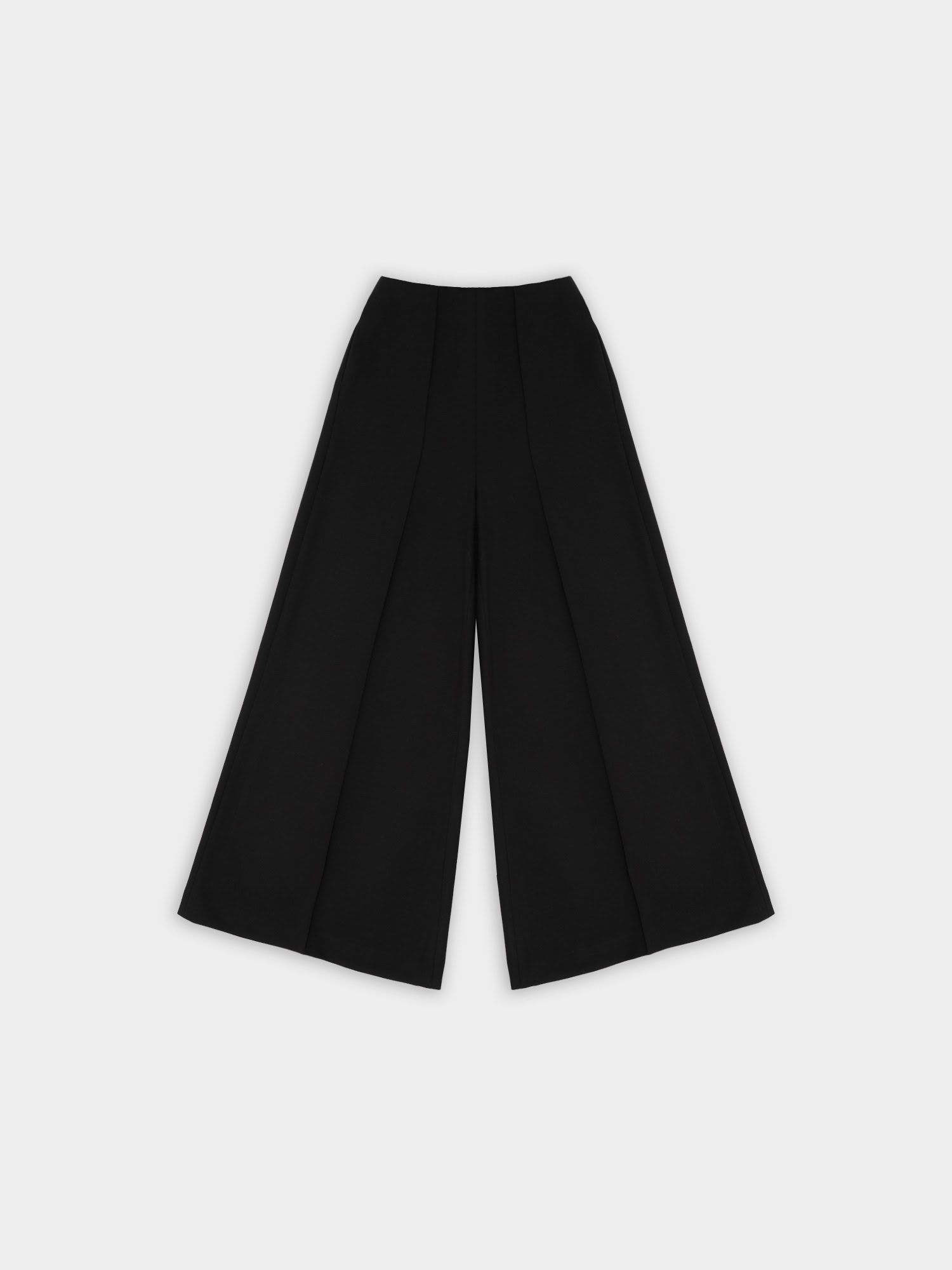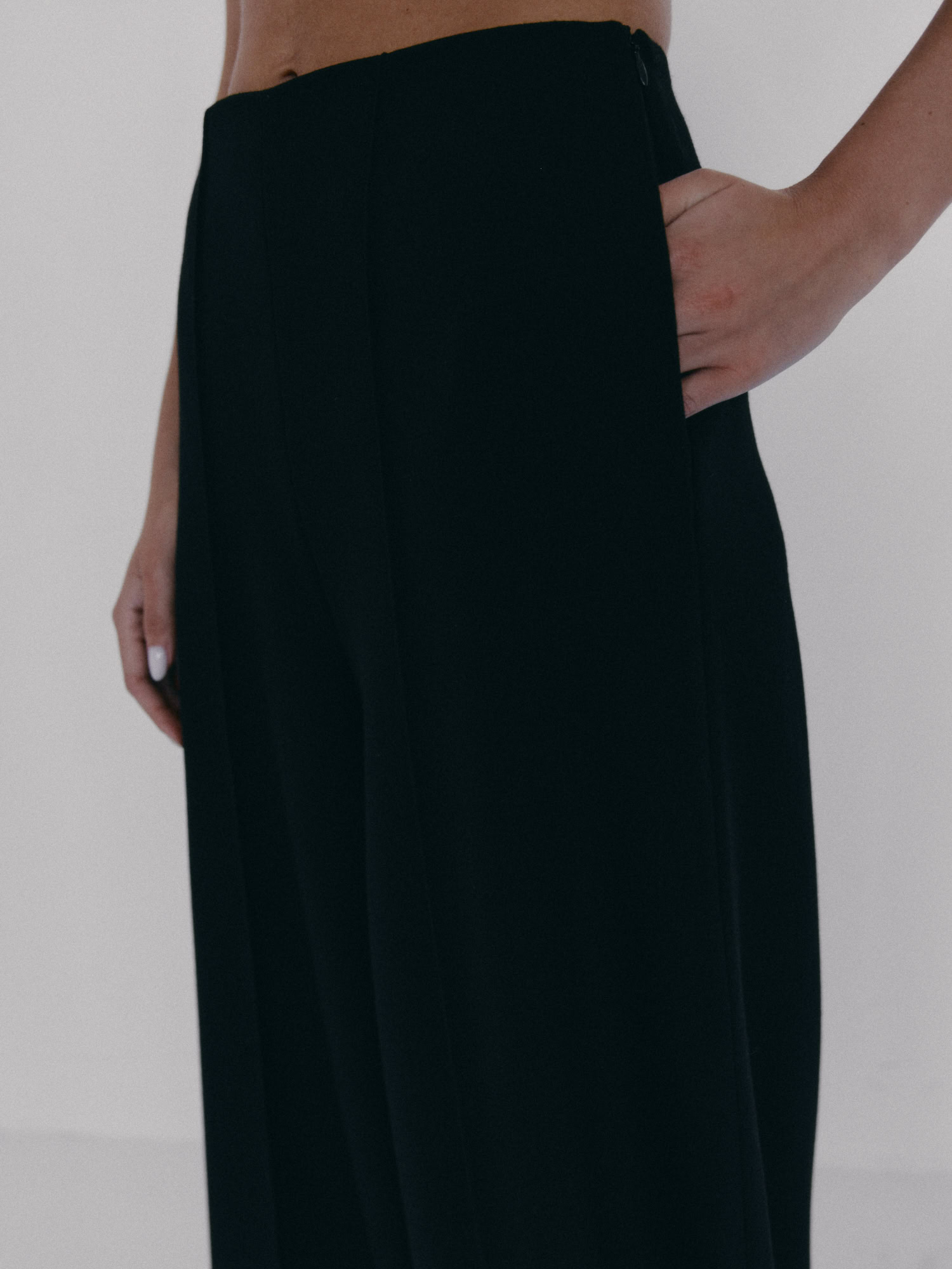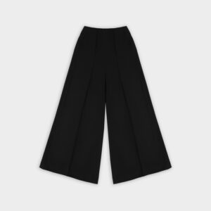 Szerokie spodnie o luźnym kroju, z przeszyciami. Model posiada funkcjonalne kieszenie po bokach. Zapinane na zamek z boku. Wysoki stan idealnie podkreśla talię. Spodnie sprawdzą się jako podstawa casualowych jak i eleganckich stylizacji, szczególnie w zestawie z marynarką i kamizelką MAIN.