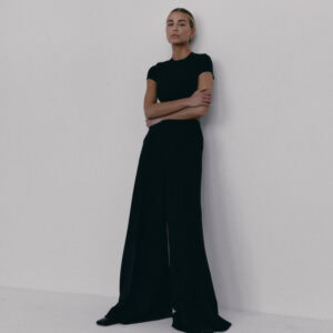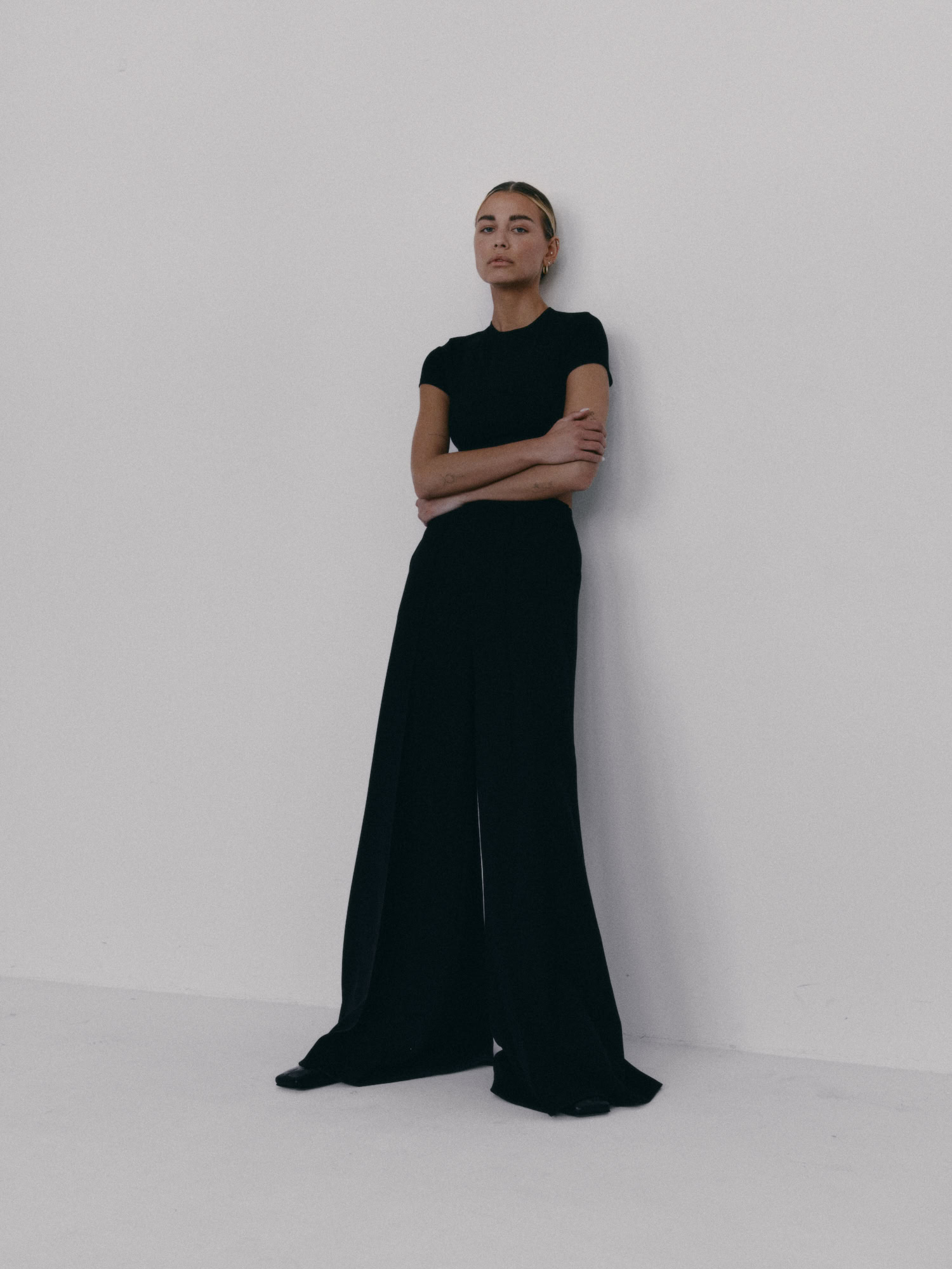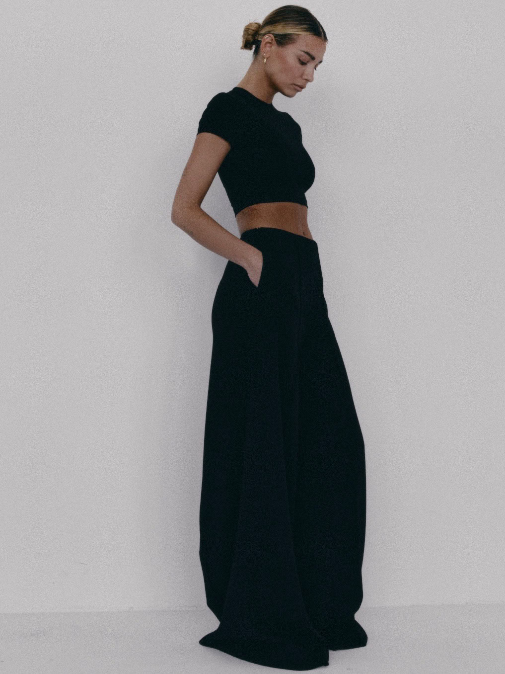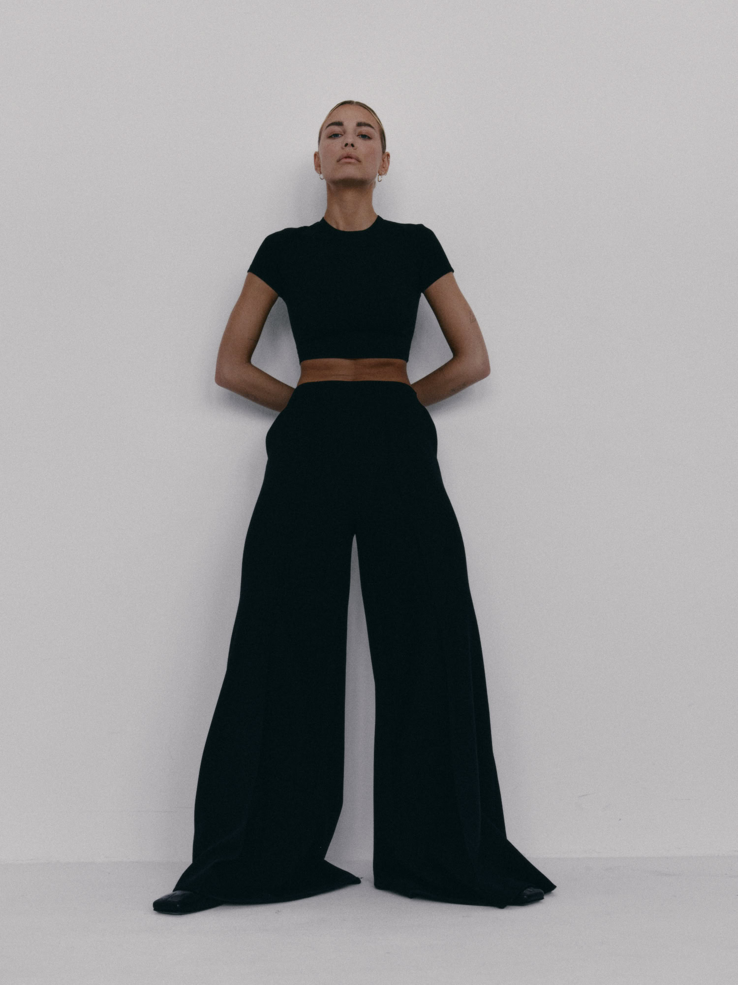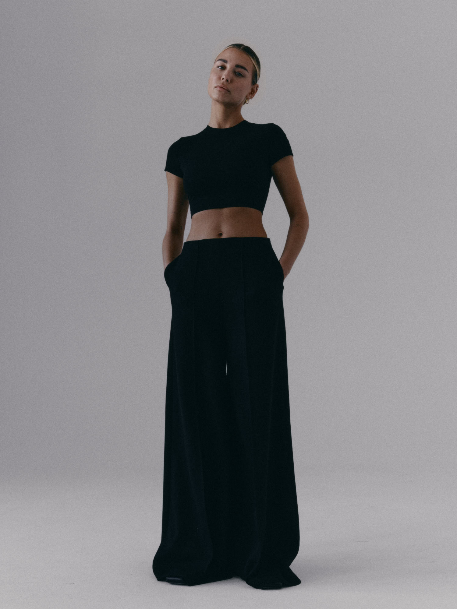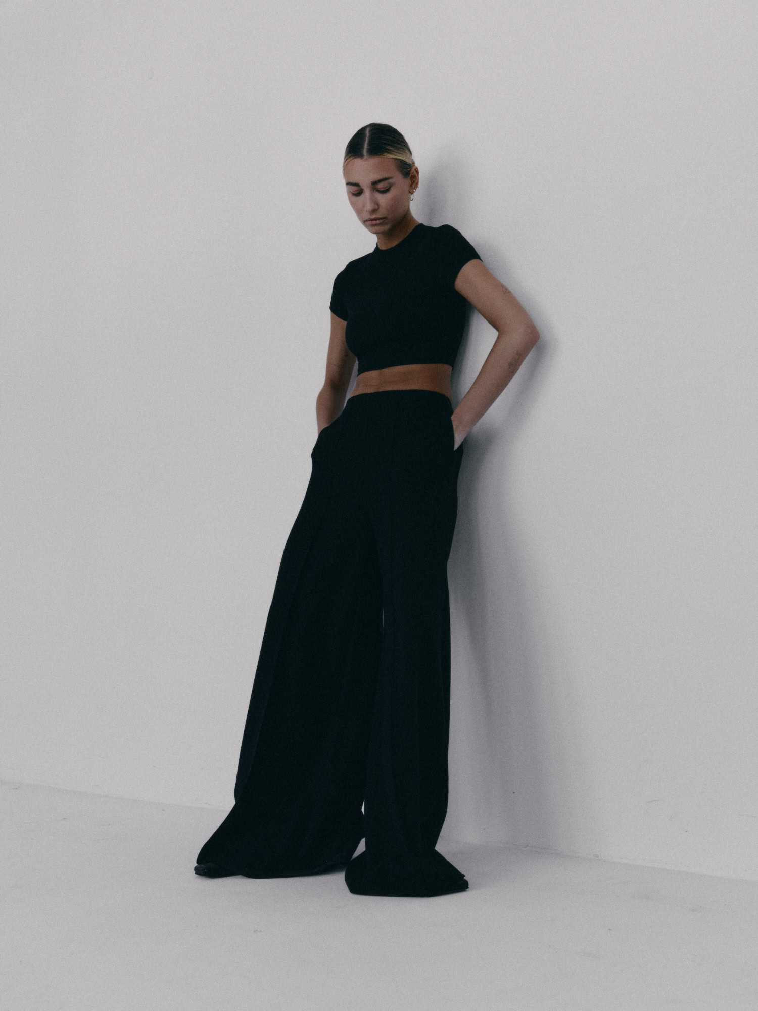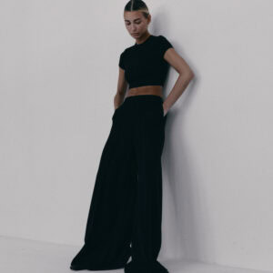 Spodnie JOIA uszyte są z mieszanki poliestru z recyklingu, wiskozy i elastanu. Materiał o wyższej gramaturze jest niezwykle przyjemny w dotyku oraz elastyczny. A do tego nie kurczy się, nie zmienia swojej formy i nie gniecie się.