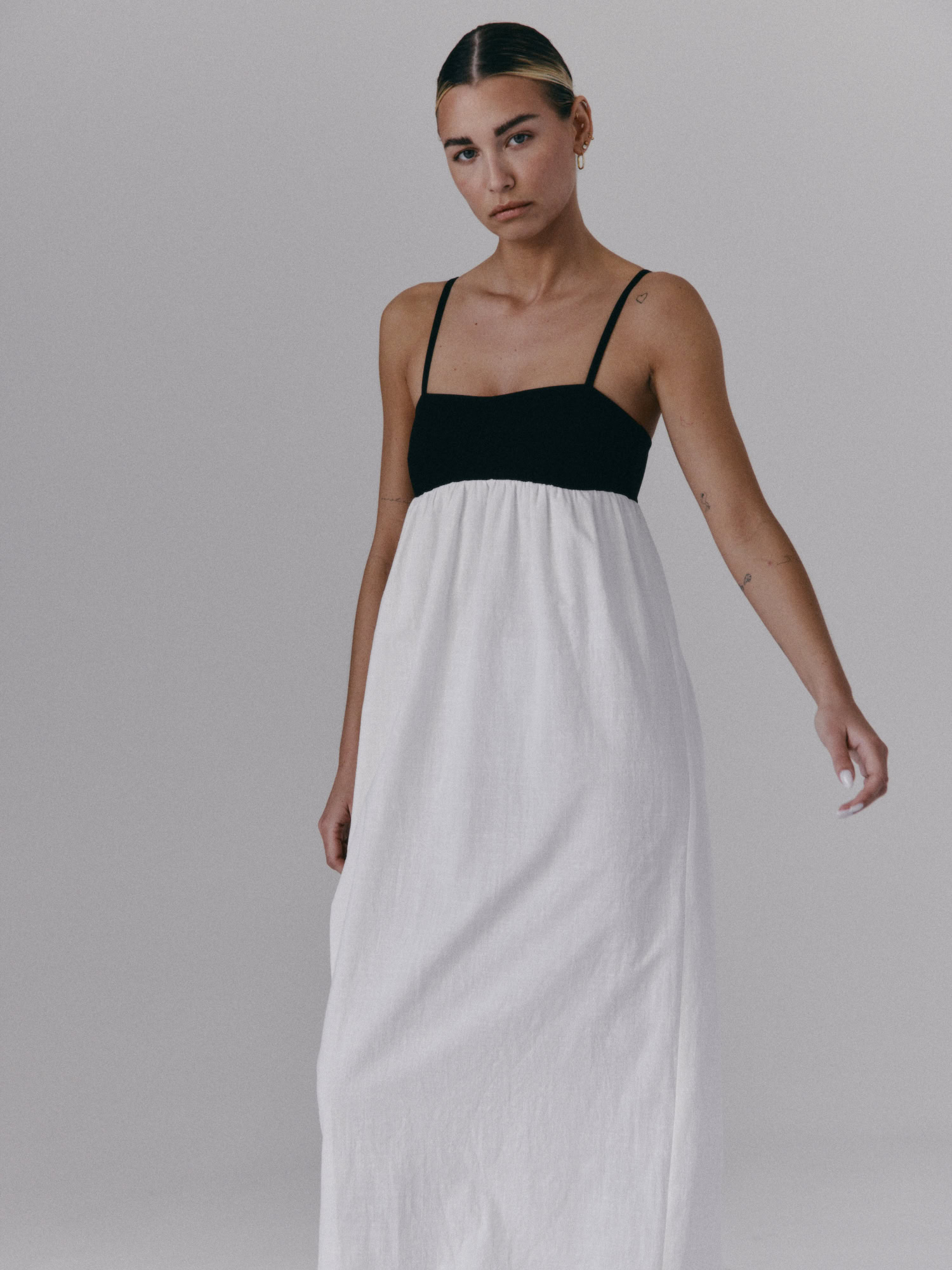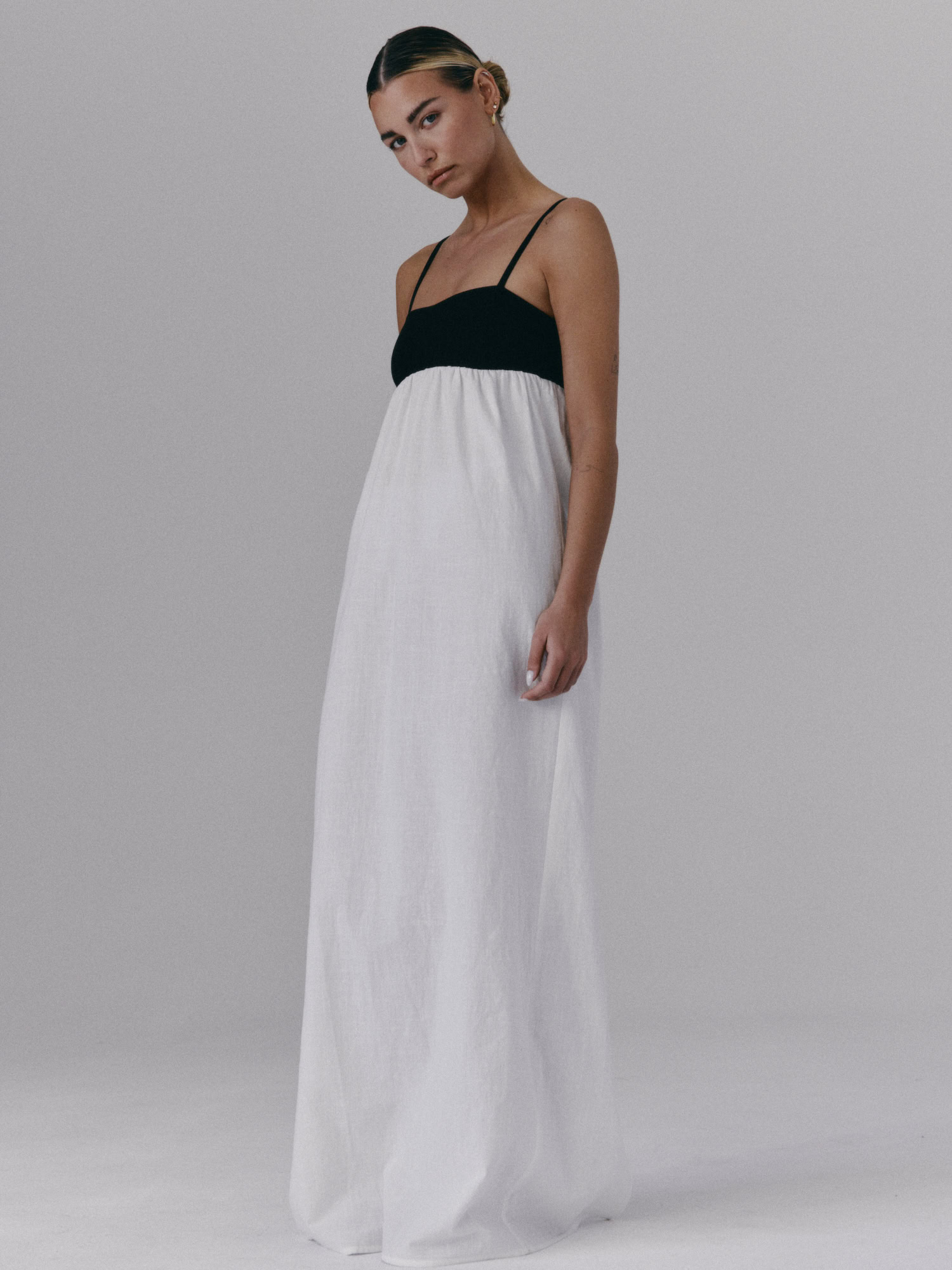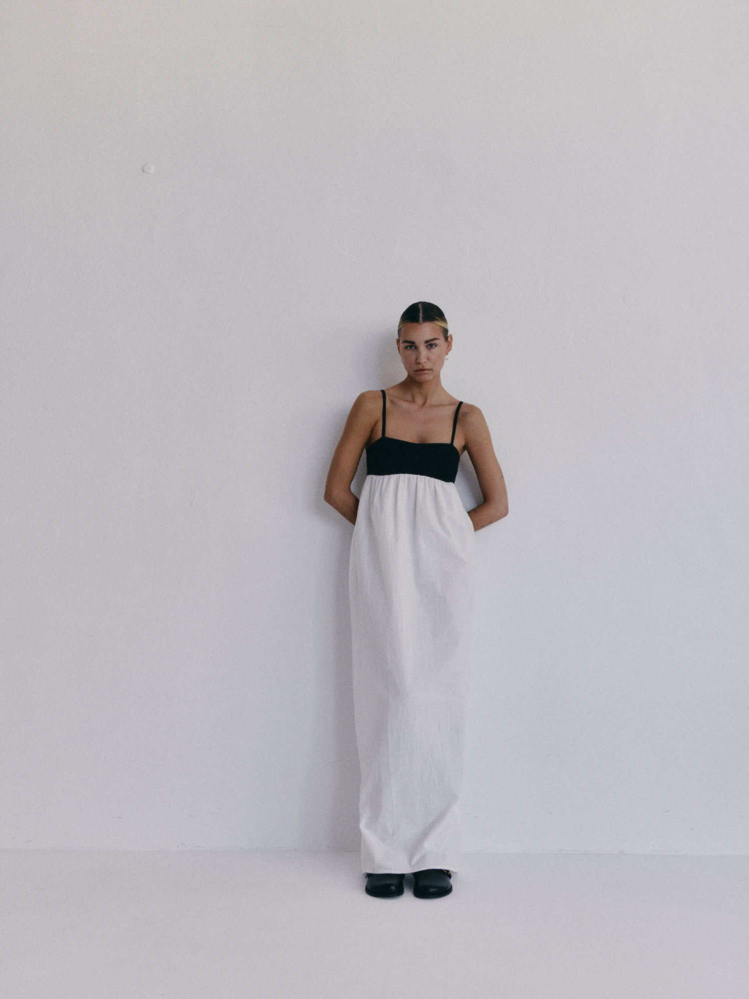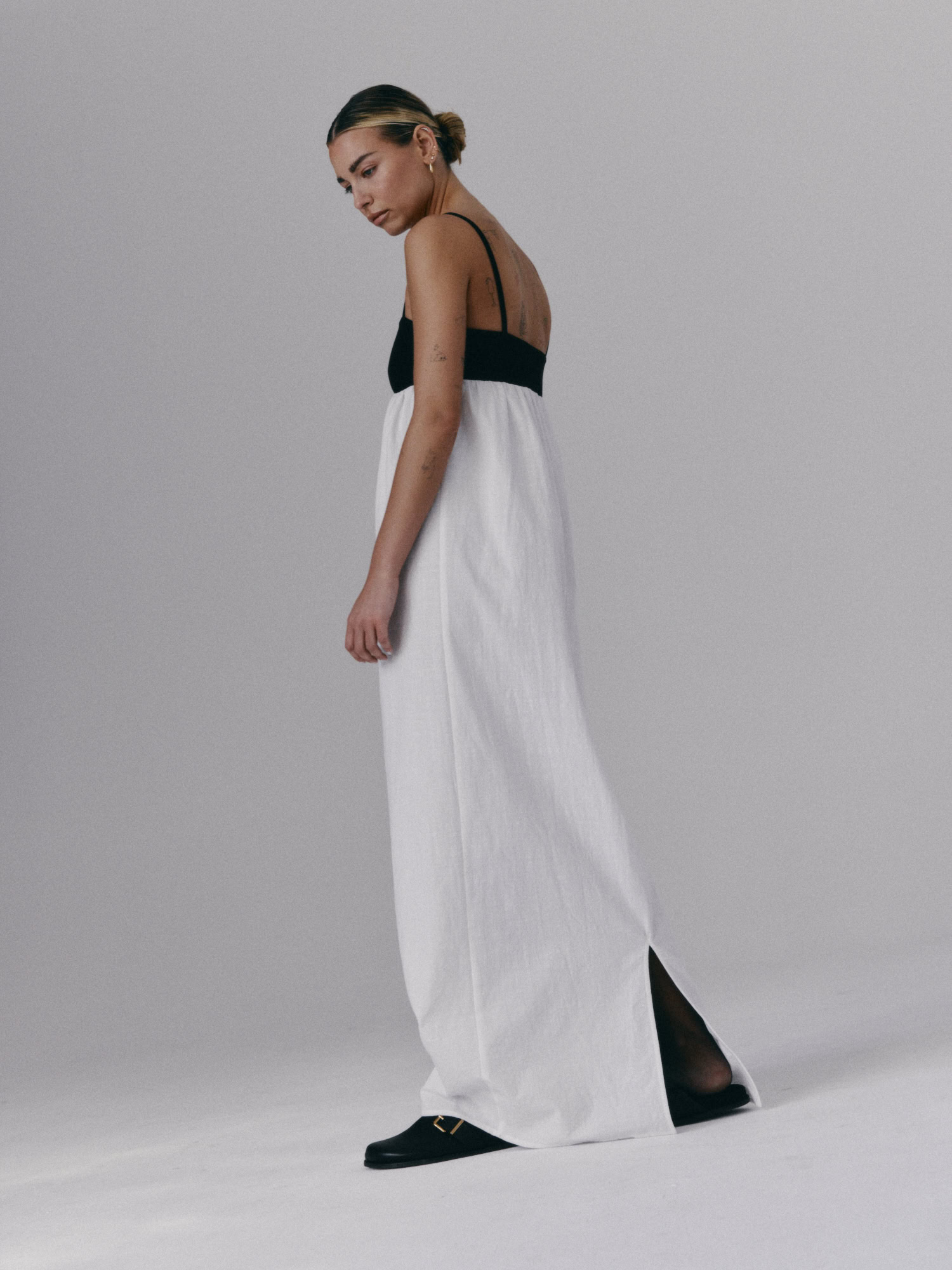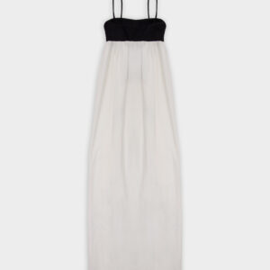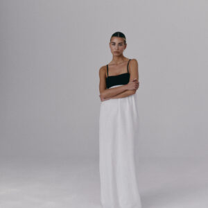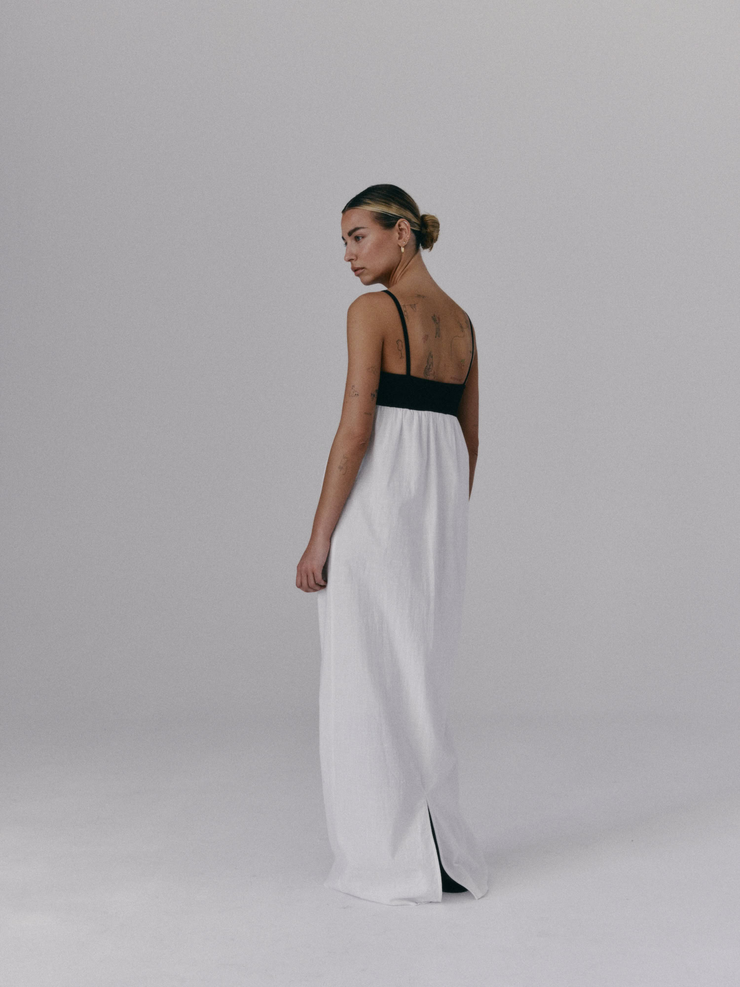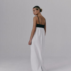 Długa, prosta sukienka na cienkich ramiączkach. Stanik podtrzymujący biust pozwala na noszenie sukienki saute. Luźny krój i długość do kostek. Delikatne rozcięcie z tyłu zapewnia swobodę ruchu. Sprawdzi się zarówno na co dzień, jak i wieczorne wyjście.