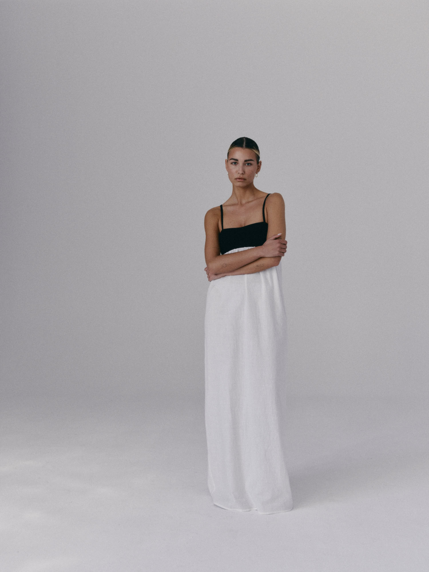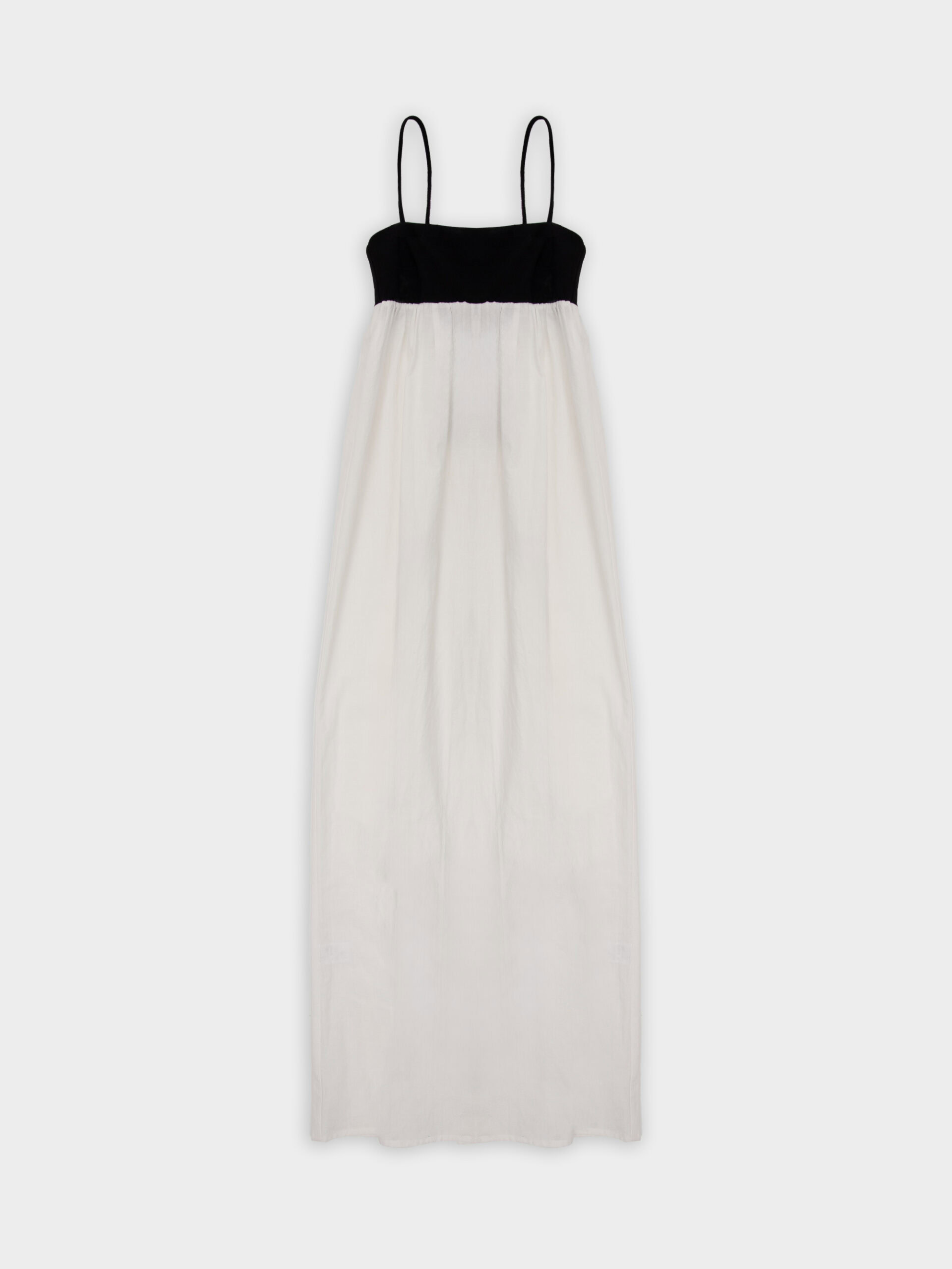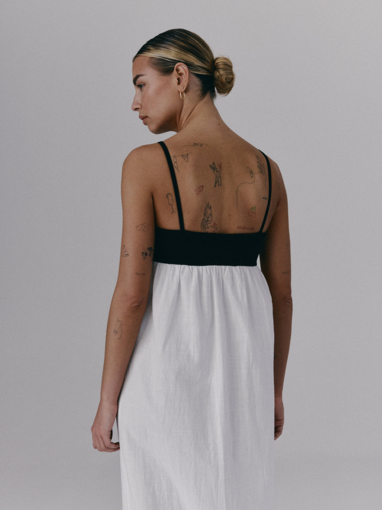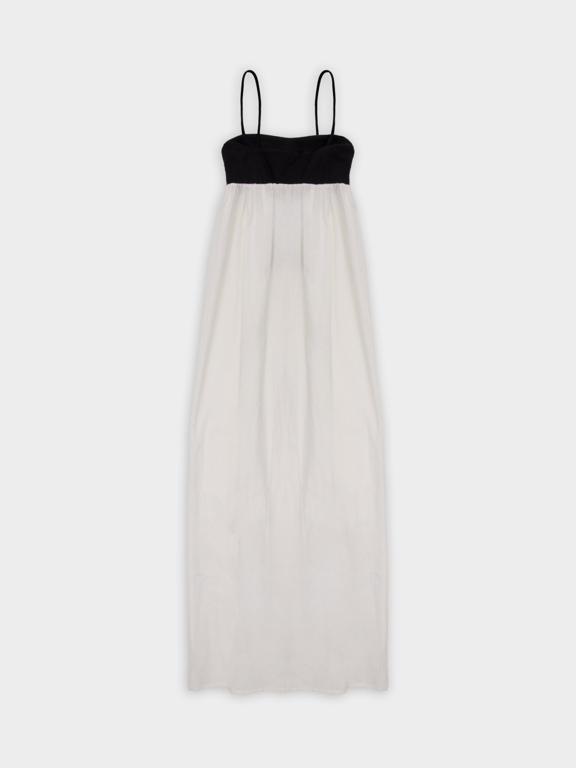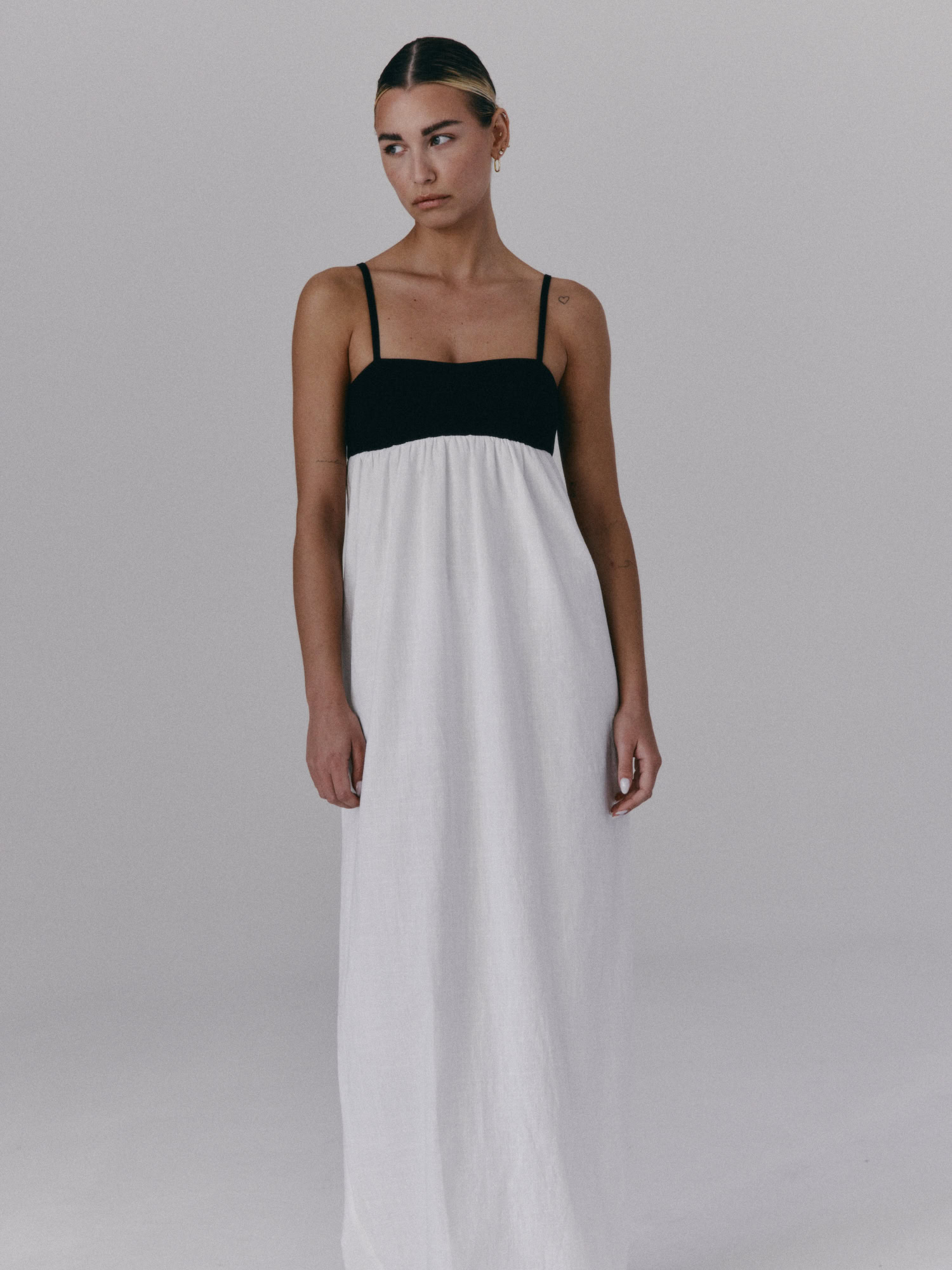 Długa, prosta sukienka na cienkich ramiączkach. Stanik podtrzymujący biust pozwala na noszenie sukienki saute. Luźny krój i długość do kostek. Delikatne rozcięcie z tyłu zapewnia swobodę ruchu. Sprawdzi się zarówno na co dzień, jak i wieczorne wyjście.
