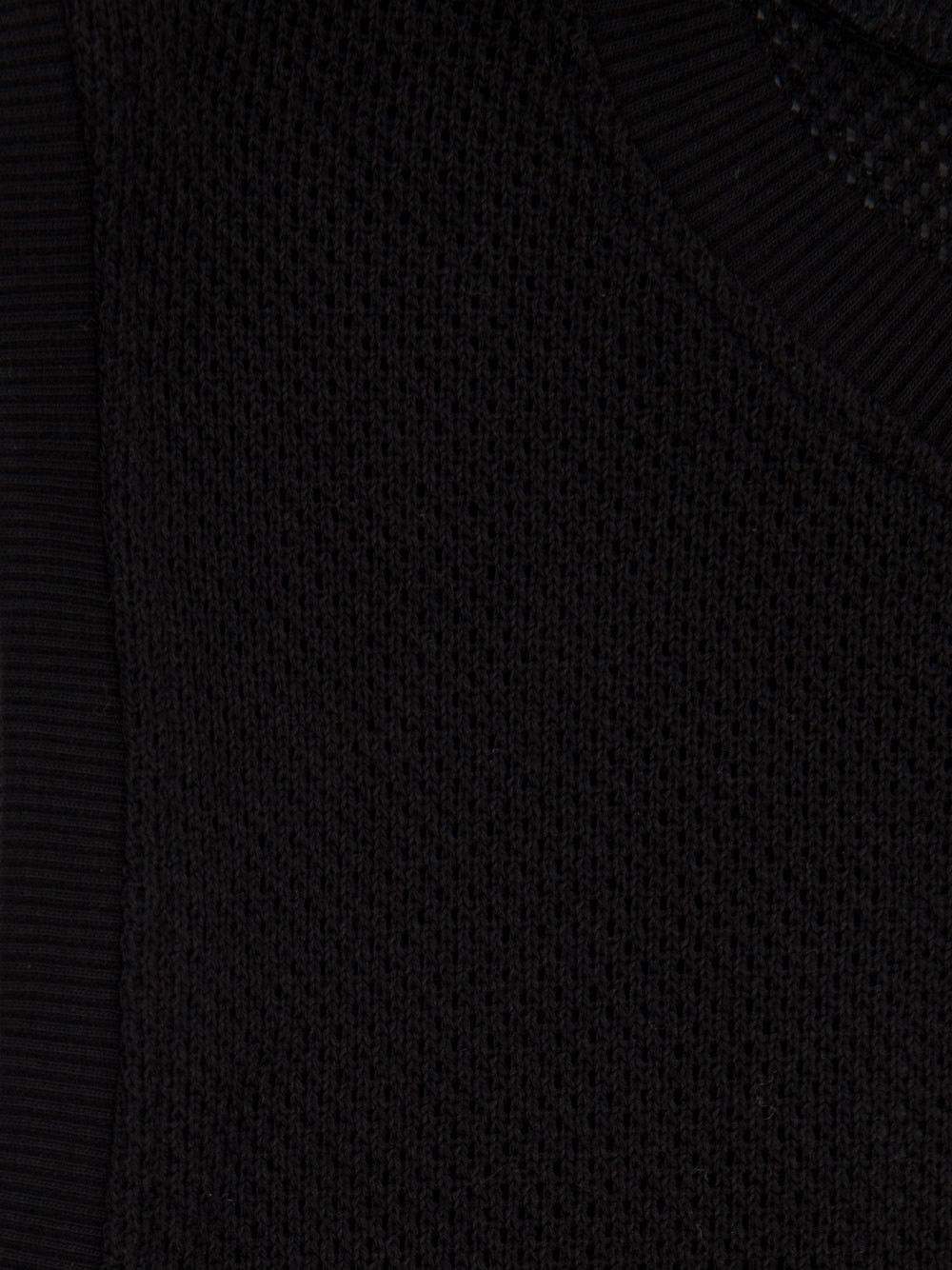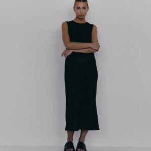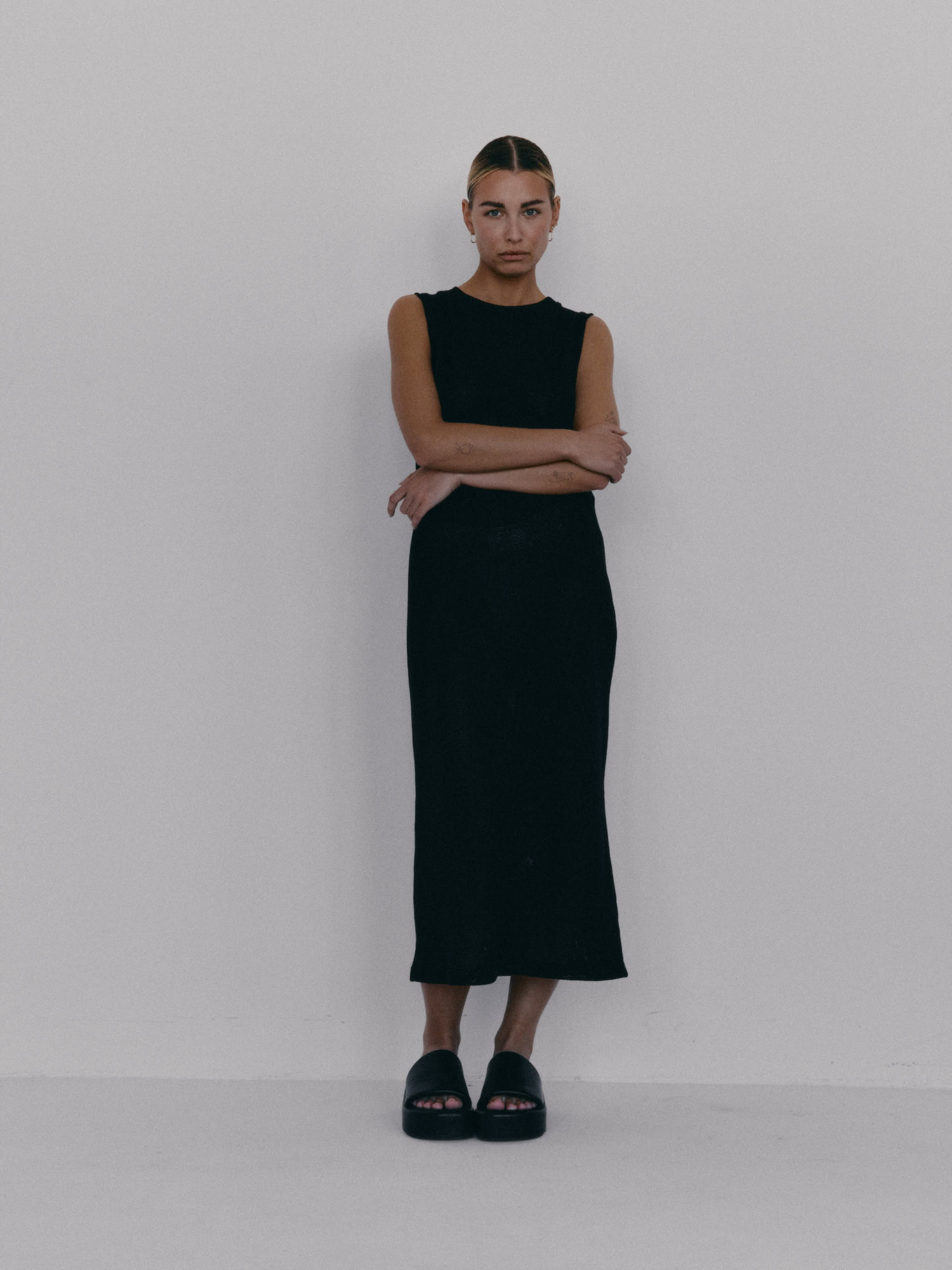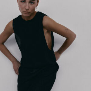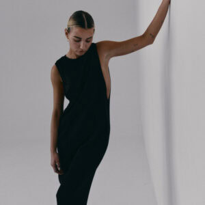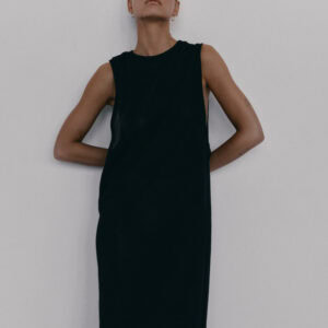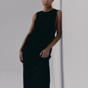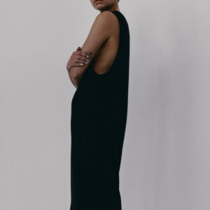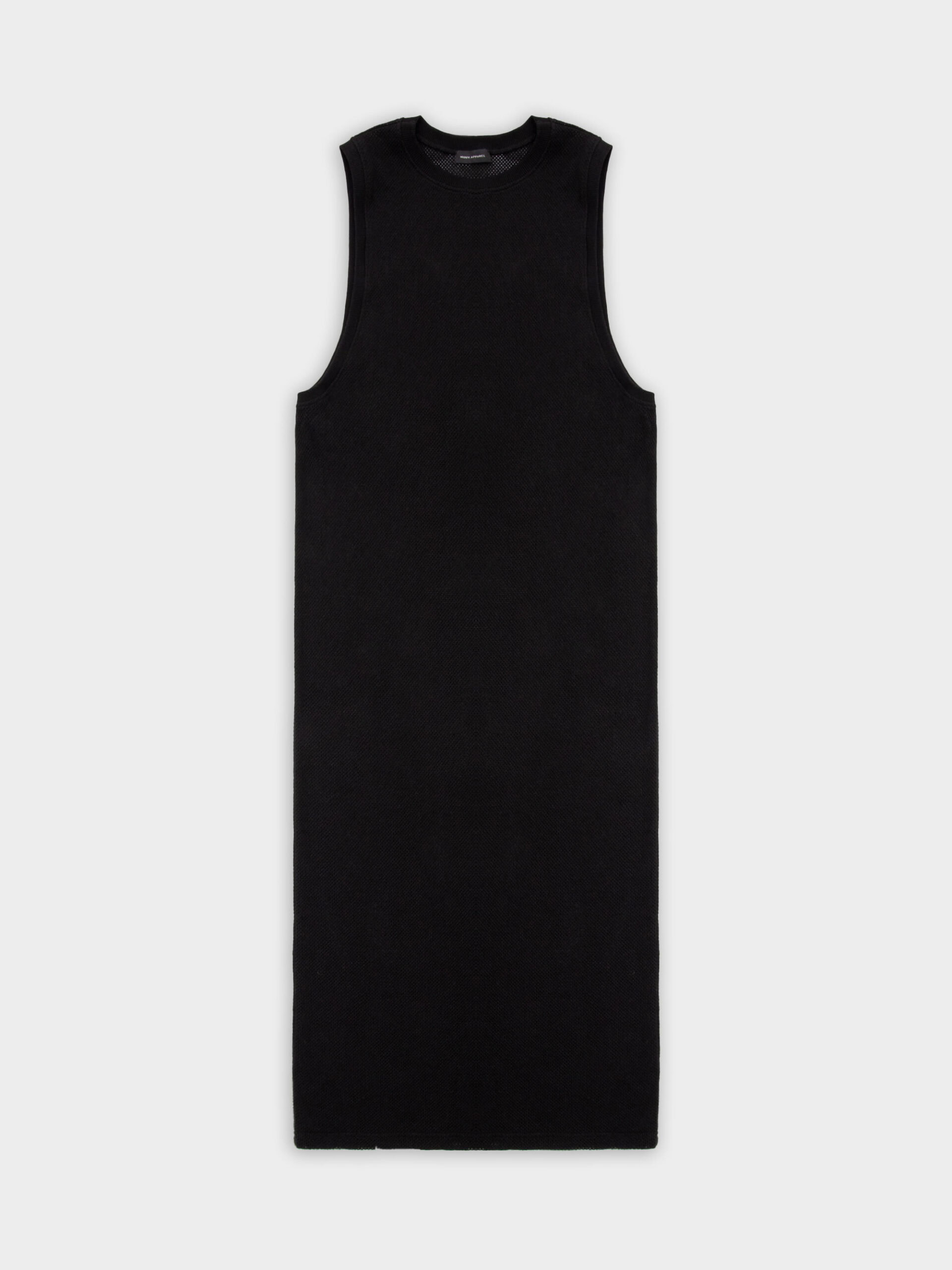 Siateczkowa, długa sukienka. Wygodna oraz minimalistyczna. Długość do kostek. Dekolt oraz rękawy wykończone są ściągaczem. Model posiada zadziornie wycięte boki. Świetnie się sprawdzi w stylizacjach causal’owych, wieczorowych, ale również jako narzutka na kostium kąpielowy.
