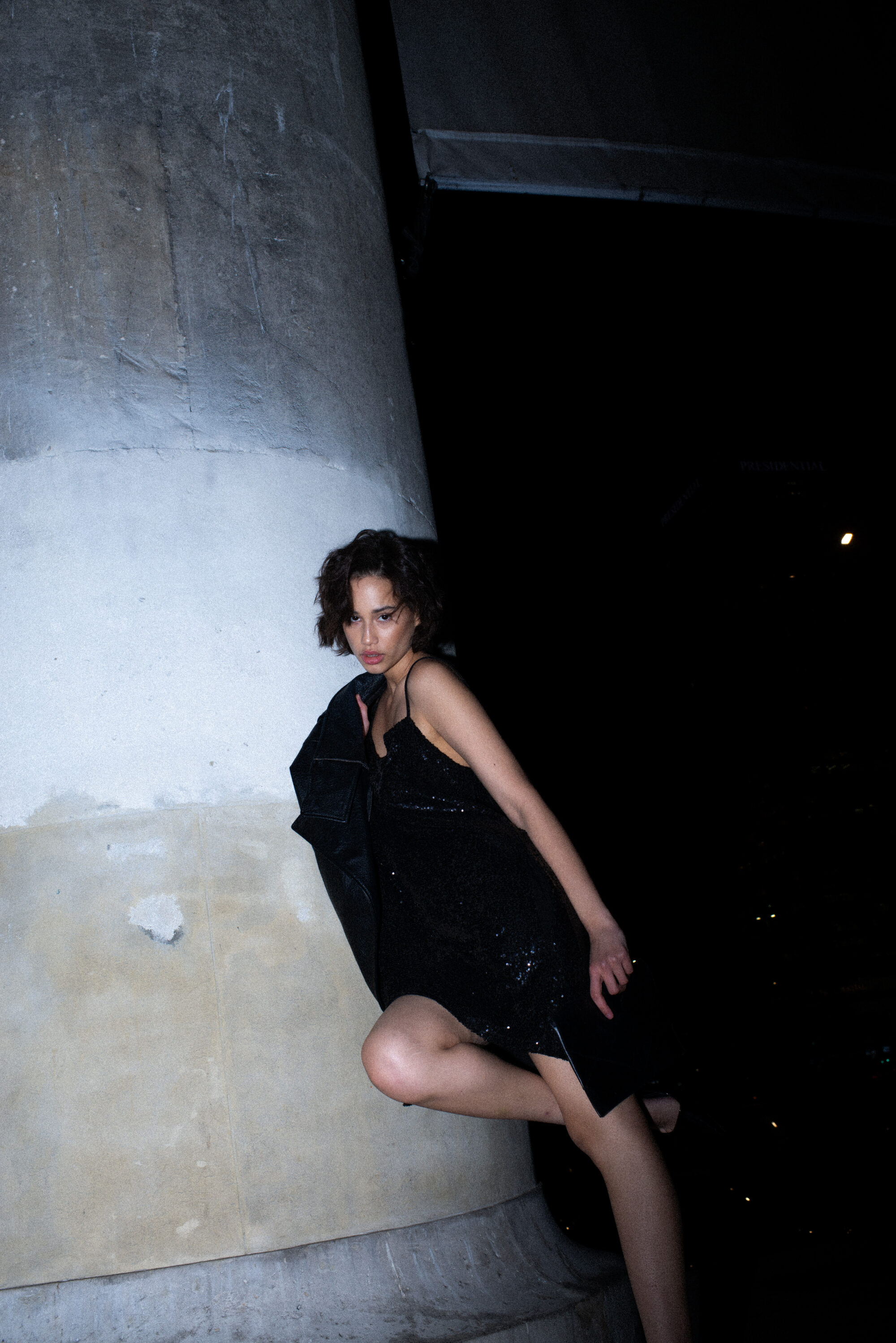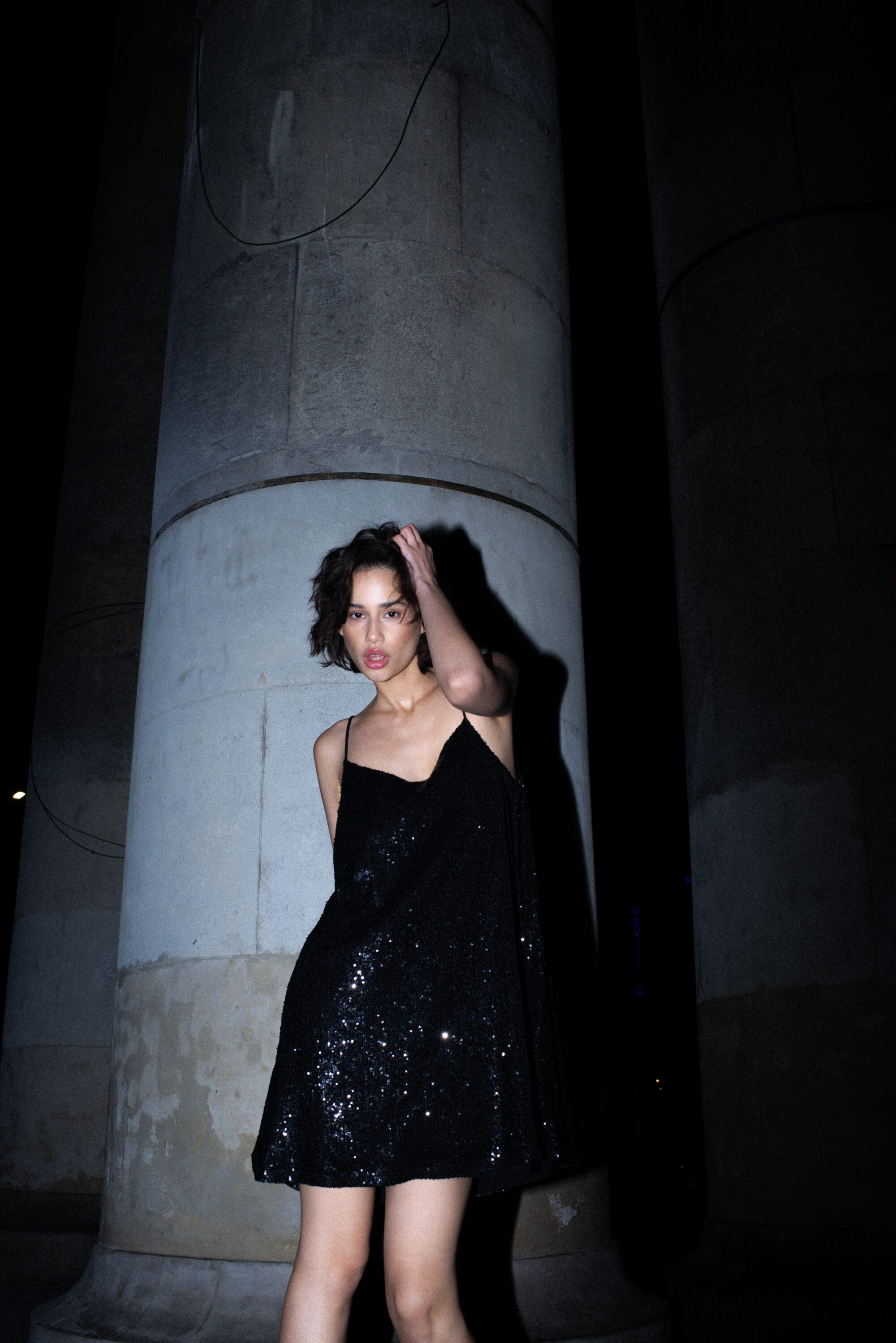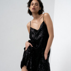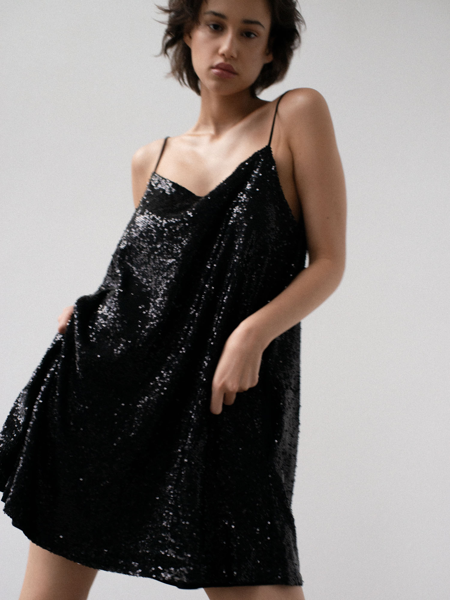 Nasz bestsellerowy krój #SURFGIRL powraca w nowej, sylwestrowej odsłonie. Sukienka na cienkich ramiączkach w prosty krój w literę A. Z przodu minimalistyczny dekolt, z tyłu ultra głębokie wycięcie, w kształcie litery V. Produkt doskonale podkreśla linię pleców. Aplikacja z ozdobnych cekinów. Sukienka posiada dopasowaną kolorystycznie wiskozową podszewkę.