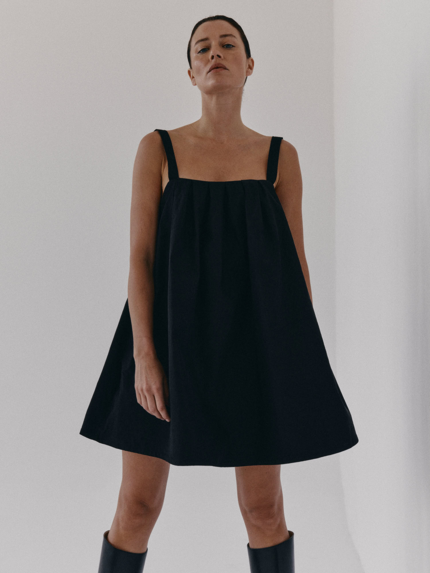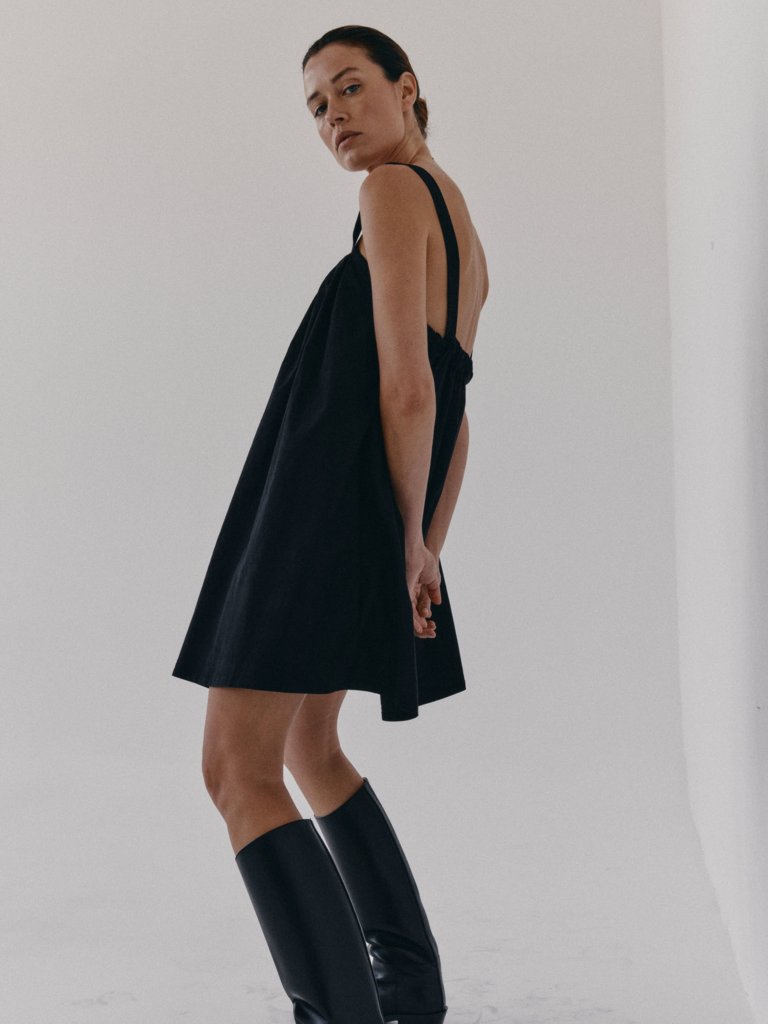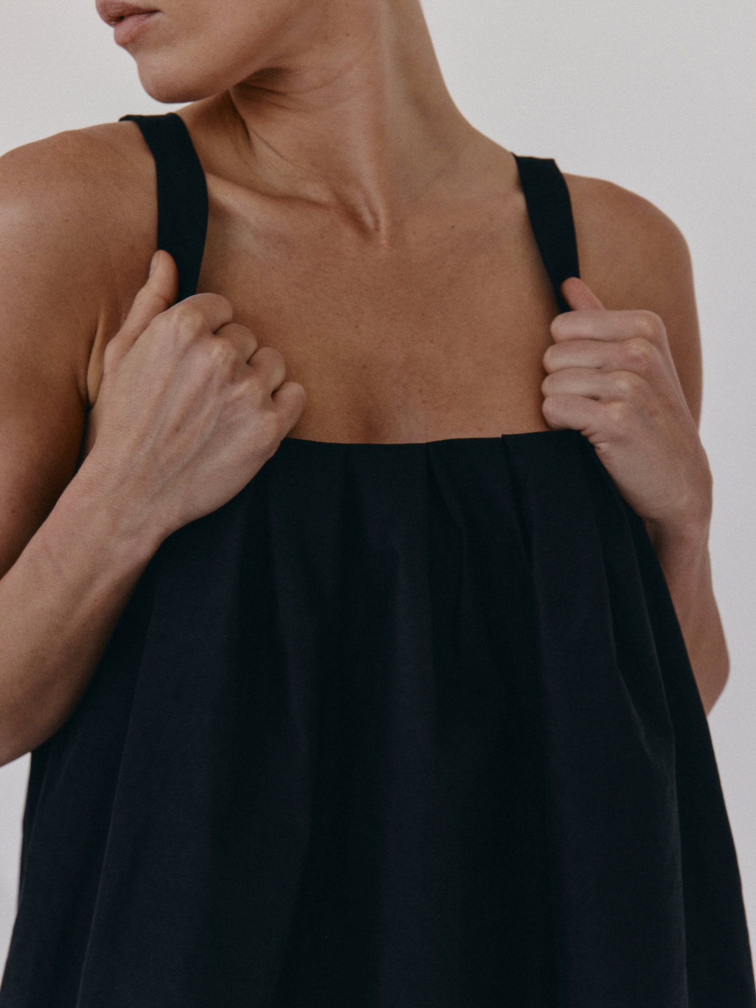 Krótka plisowana sukienka na szerokich ramiączkach. Z tyłu wszyta guma delikatnie opina ciało. Model stanowi idealną bazę letniej szafy. Luźny krój pozwala ukryć mankamenty sylwetki. Świetnie sprawdzi się do każdego rodzaju obuwia.
