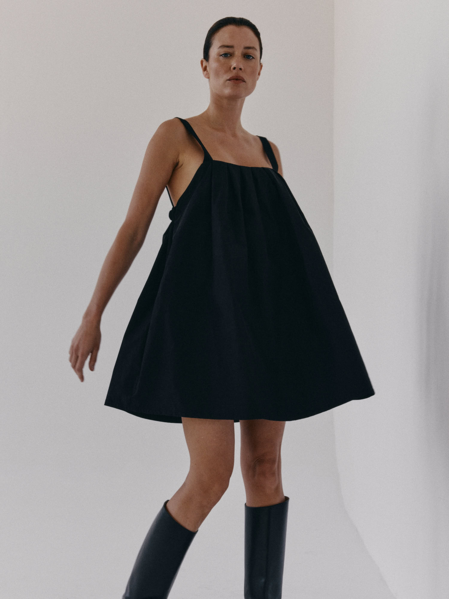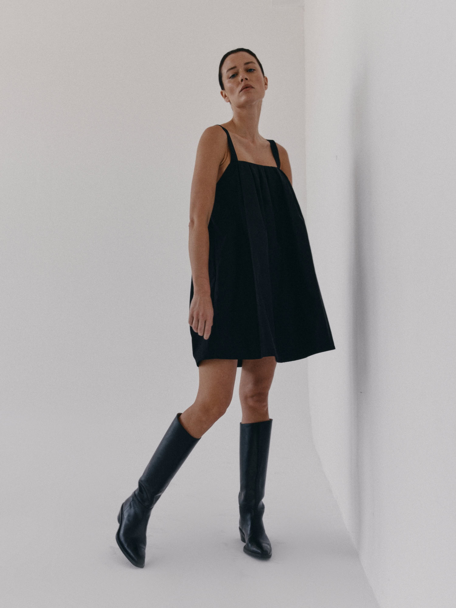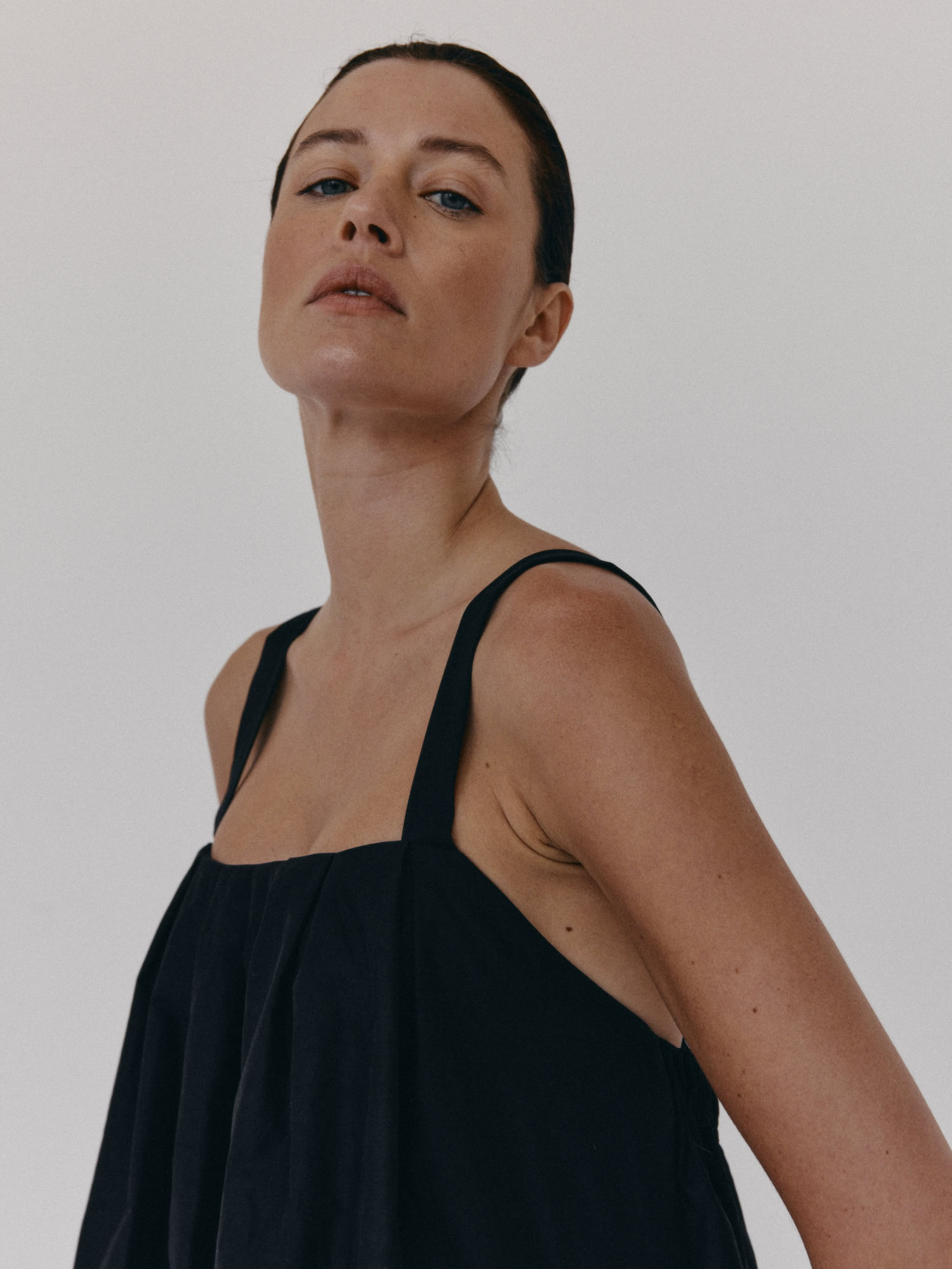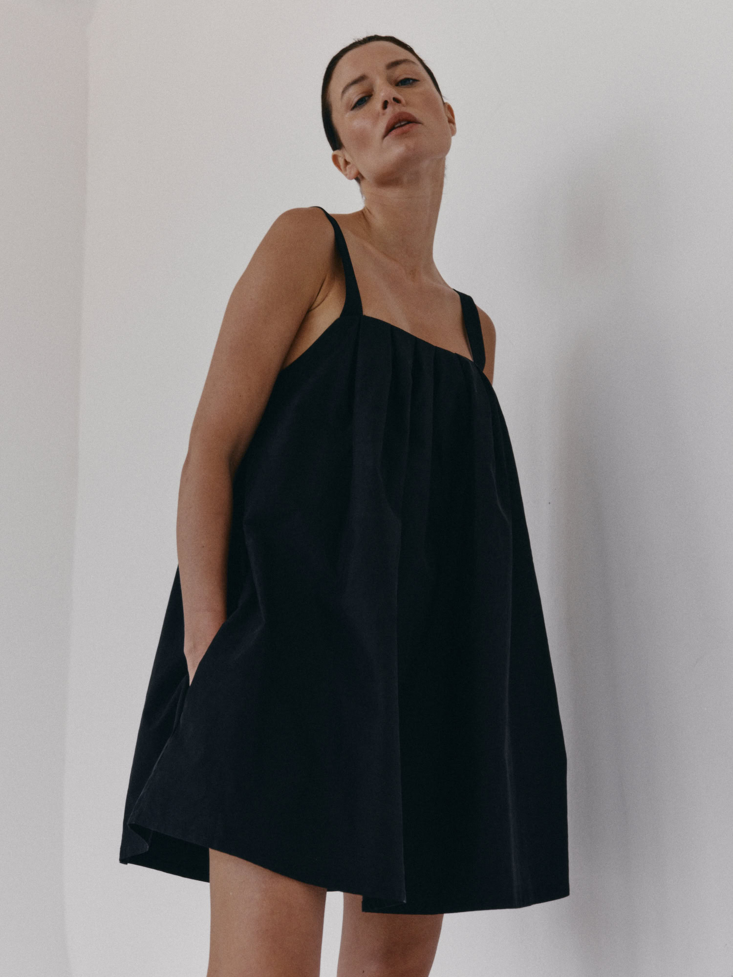 Krótka plisowana sukienka na szerokich ramiączkach. Z tyłu wszyta guma delikatnie opina ciało. Model stanowi idealną bazę letniej szafy. Luźny krój pozwala ukryć mankamenty sylwetki. Świetnie sprawdzi się do każdego rodzaju obuwia.