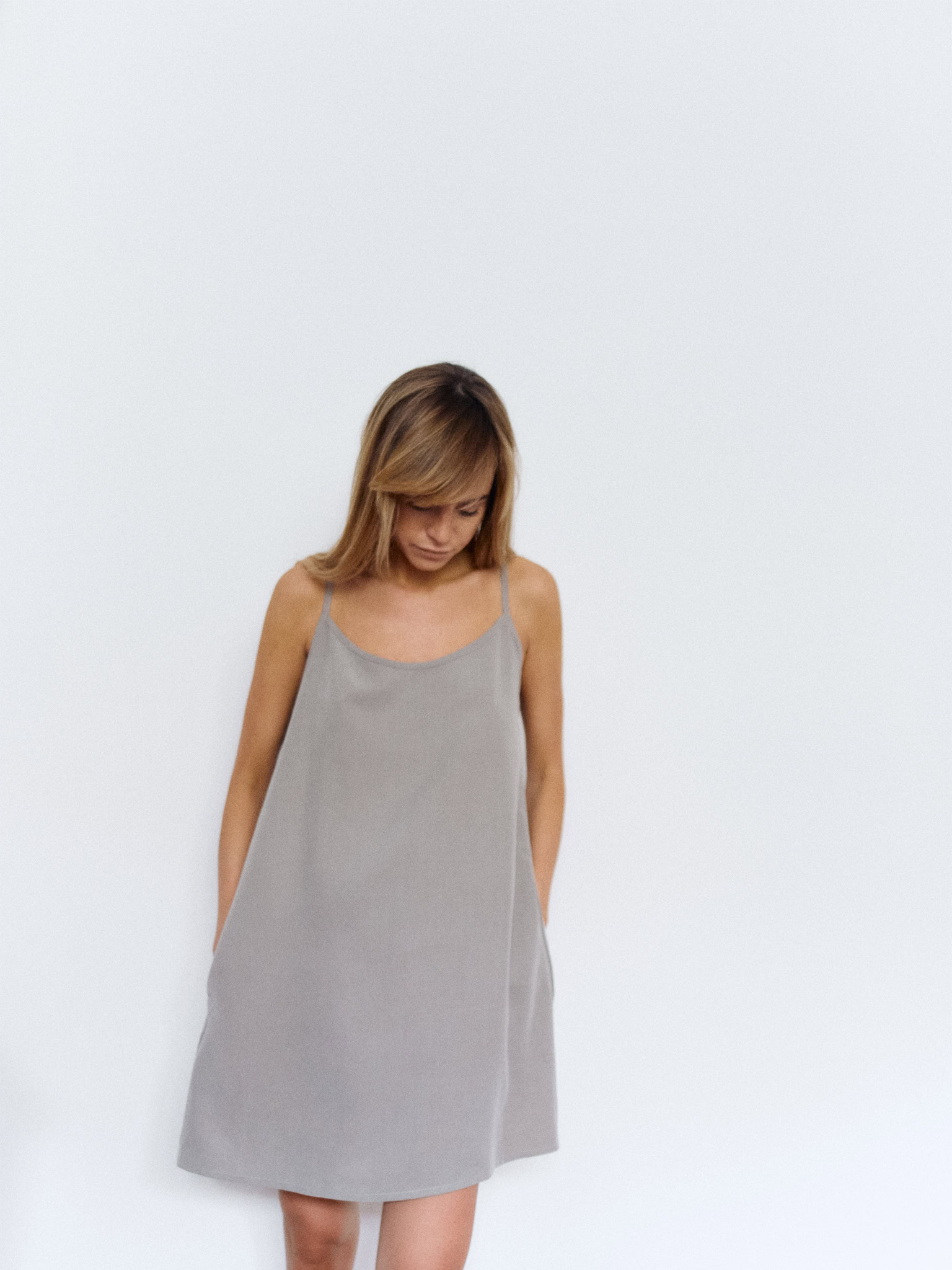 Sukienka na delikatnych, cienkich ramiączkach typu oversize o luźnym, prostym kroju. Model jest nową wersją naszej kultowej sukienki #SURFGIRL. Z przodu minimalistyczny dekolt, z tyłu ultra głębokie wycięcie w kształcie litery U. Produkt założony na gołe ciało doskonale podkreśla linię pleców. Dzięki specjalnej konstrukcji sukienka nie spada z ramion. Z przodu bardzo funkcjonalne dwie głębokie, wewnętrzne kieszenie. Pasuje do każdego rodzaju obuwia. Doskonale sprawdzi się zarówno w casualowej wersji, jak i w wieczorowej.