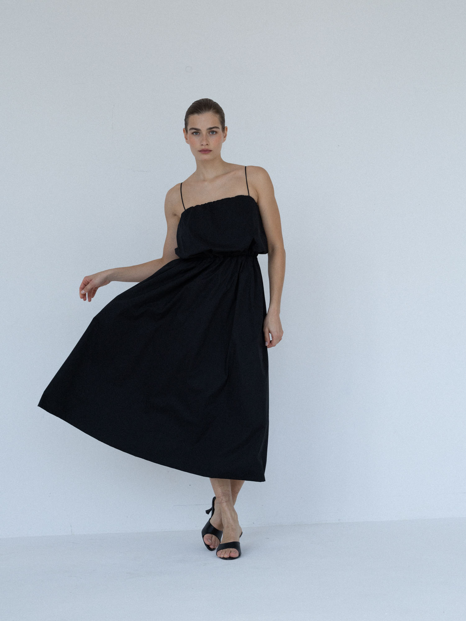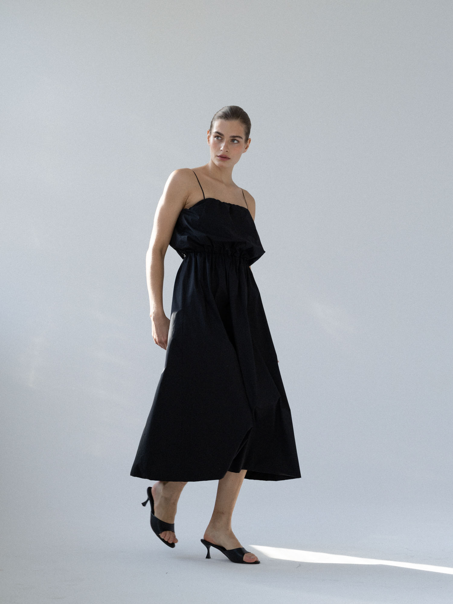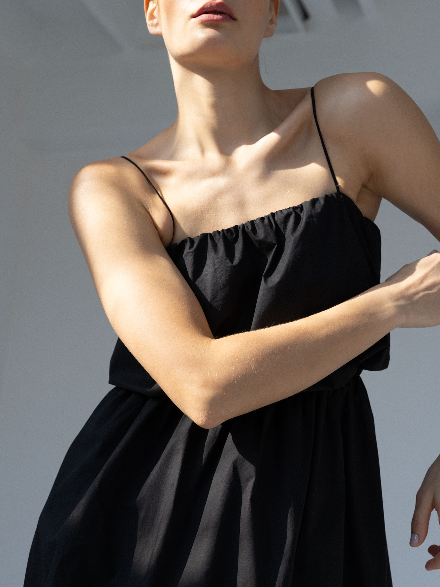 Sukienka MIEL uszyta jest z bawełny o charakterystycznej, delikatnie „chrupiącej” strukturze, która nadaje jej wyjątkowy charakter. Dodatek elastanu sprawia, że lekko się rozciąga nie tracąc przy tym swojego kształtu. To model, który sprawdzi się zarówno na co dzień, jak i w bardziej eleganckich stylizacjach — wystarczy zmienić dodatki. Lekka, przewiewna i niezwykle uniwersalna, idealna na cieplejsze dni.