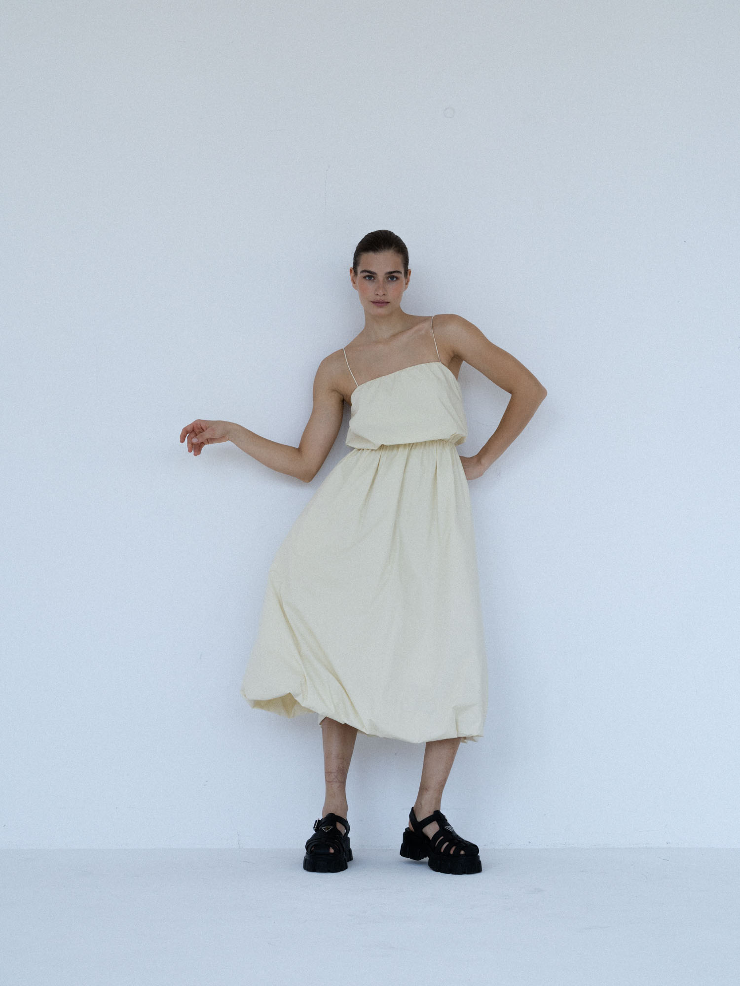 sukienka midi z chrupiącej bawełny MIEL buttermilk