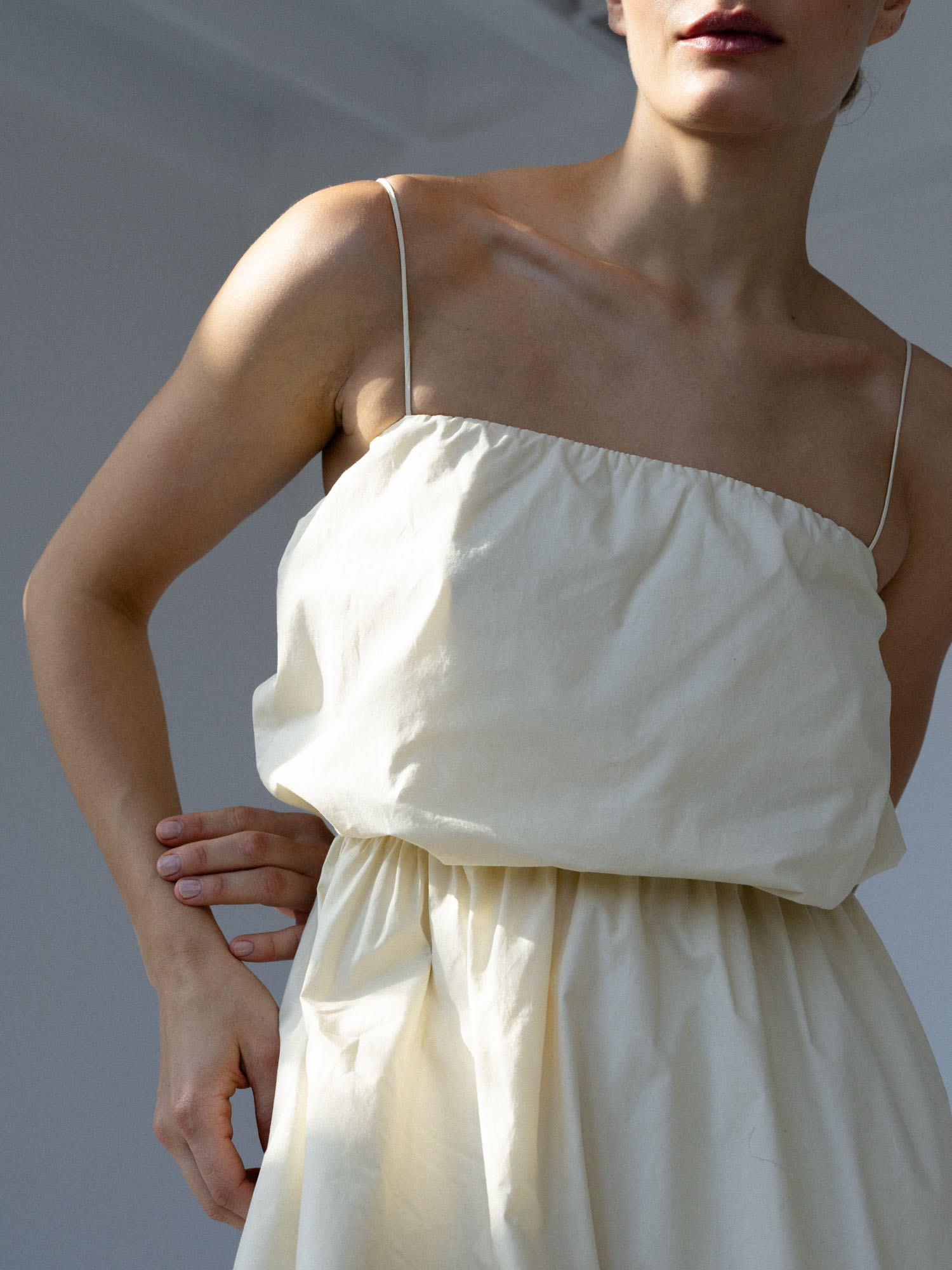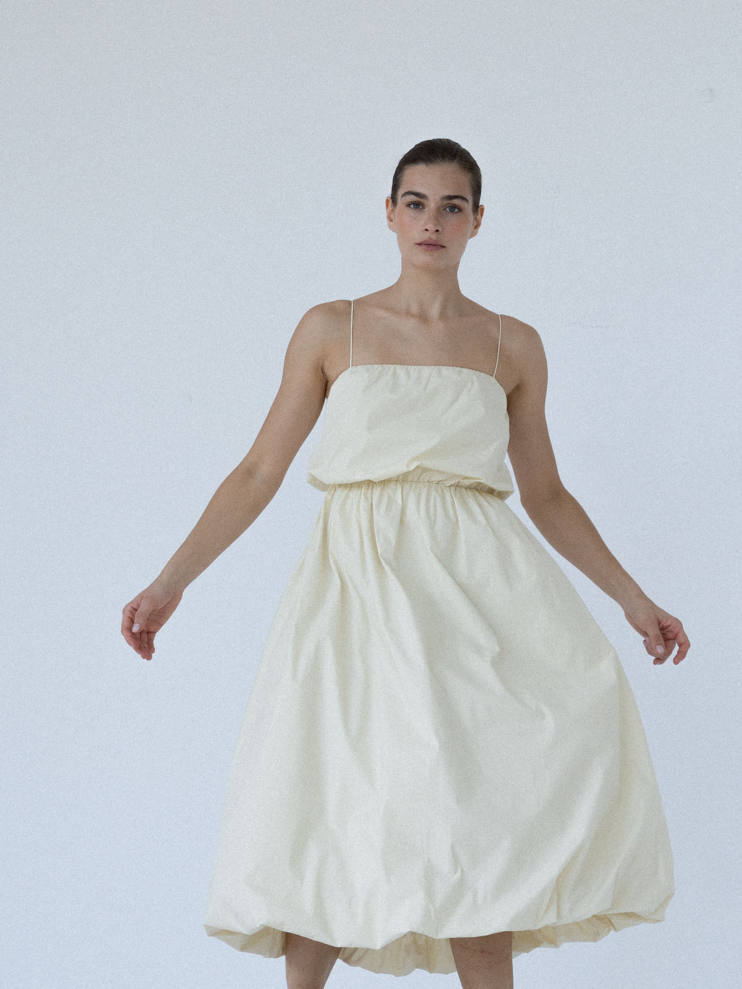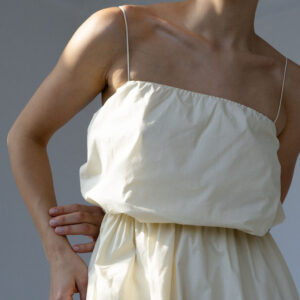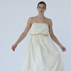 Sukienka MIEL uszyta jest z bawełny o charakterystycznej, delikatnie „chrupiącej” strukturze, która nadaje jej wyjątkowy charakter. Dodatek elastanu sprawia, że lekko się rozciąga nie tracąc przy tym swojego kształtu. To model, który sprawdzi się zarówno na co dzień, jak i w bardziej eleganckich stylizacjach — wystarczy zmienić dodatki. Lekka, przewiewna i niezwykle uniwersalna, idealna na cieplejsze dni.