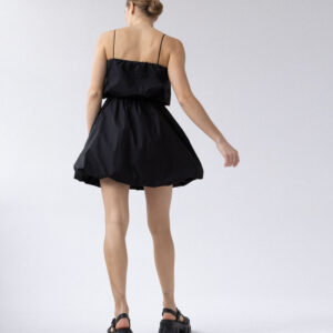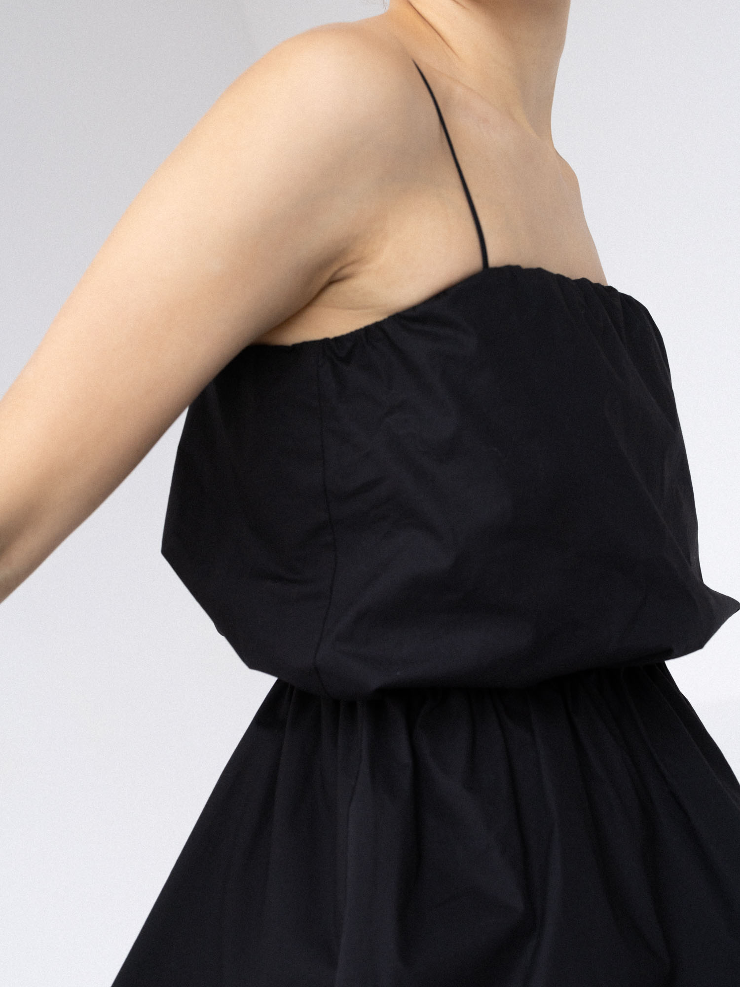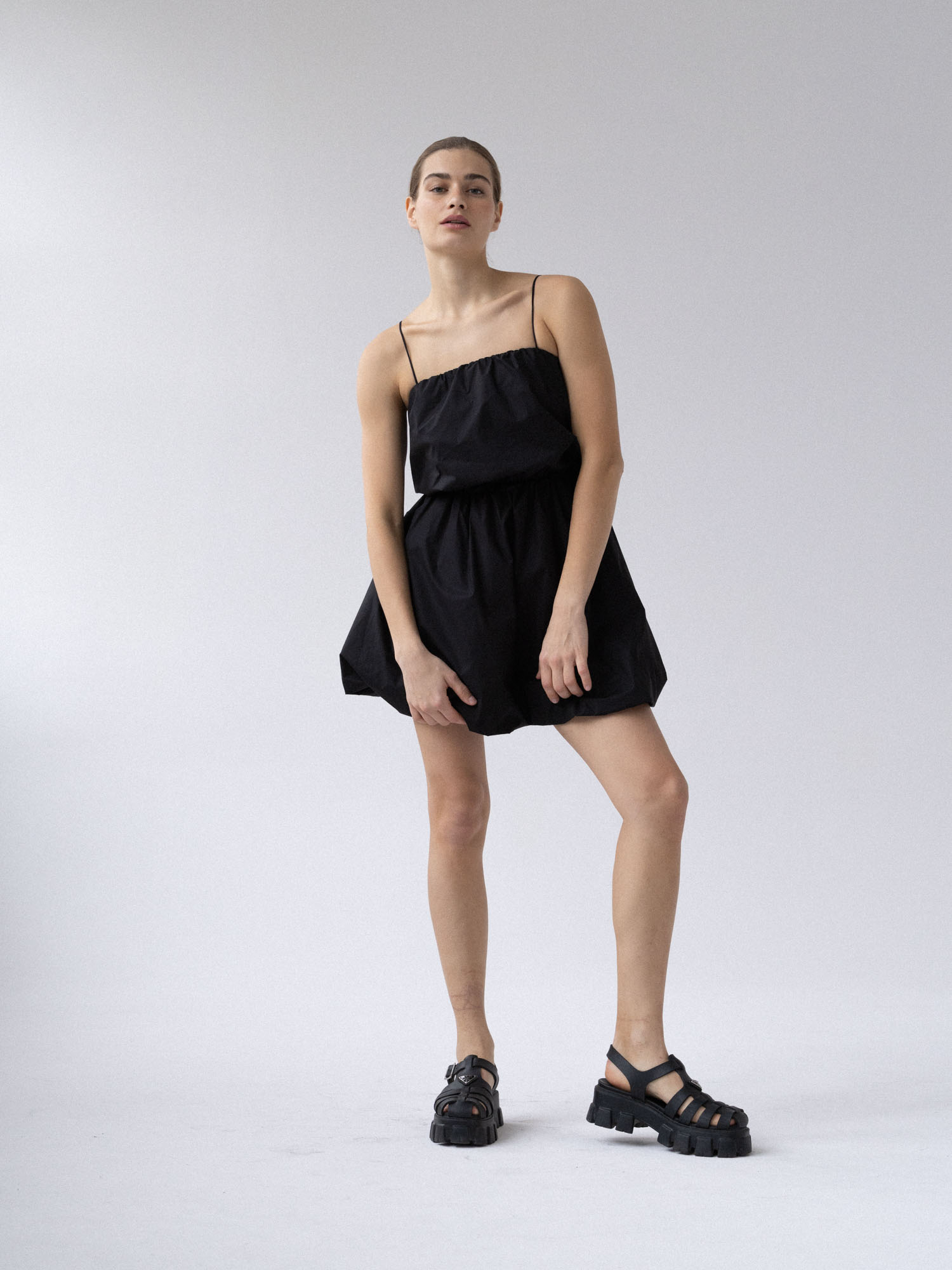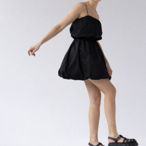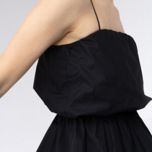 Sukienka o klasycznym i minimalistycznym kroju na cienkich ramiączkach. Delikatnie rozkloszowana z elastyczną gumką w talii. Uszyta z gładkiej bawełny. Pięknie podkreśla sylwetkę.
