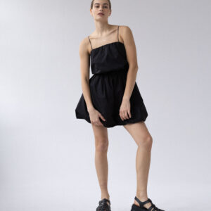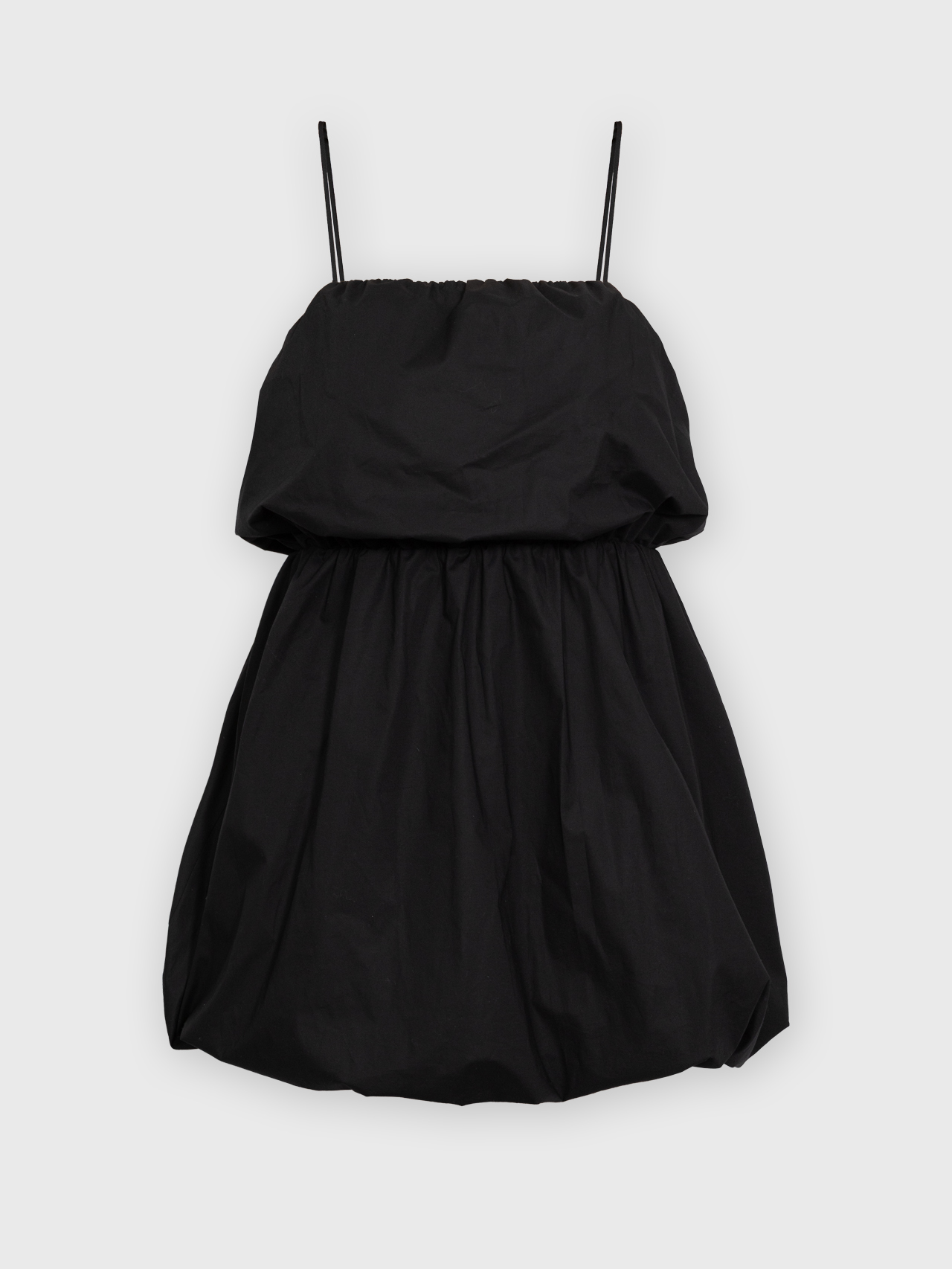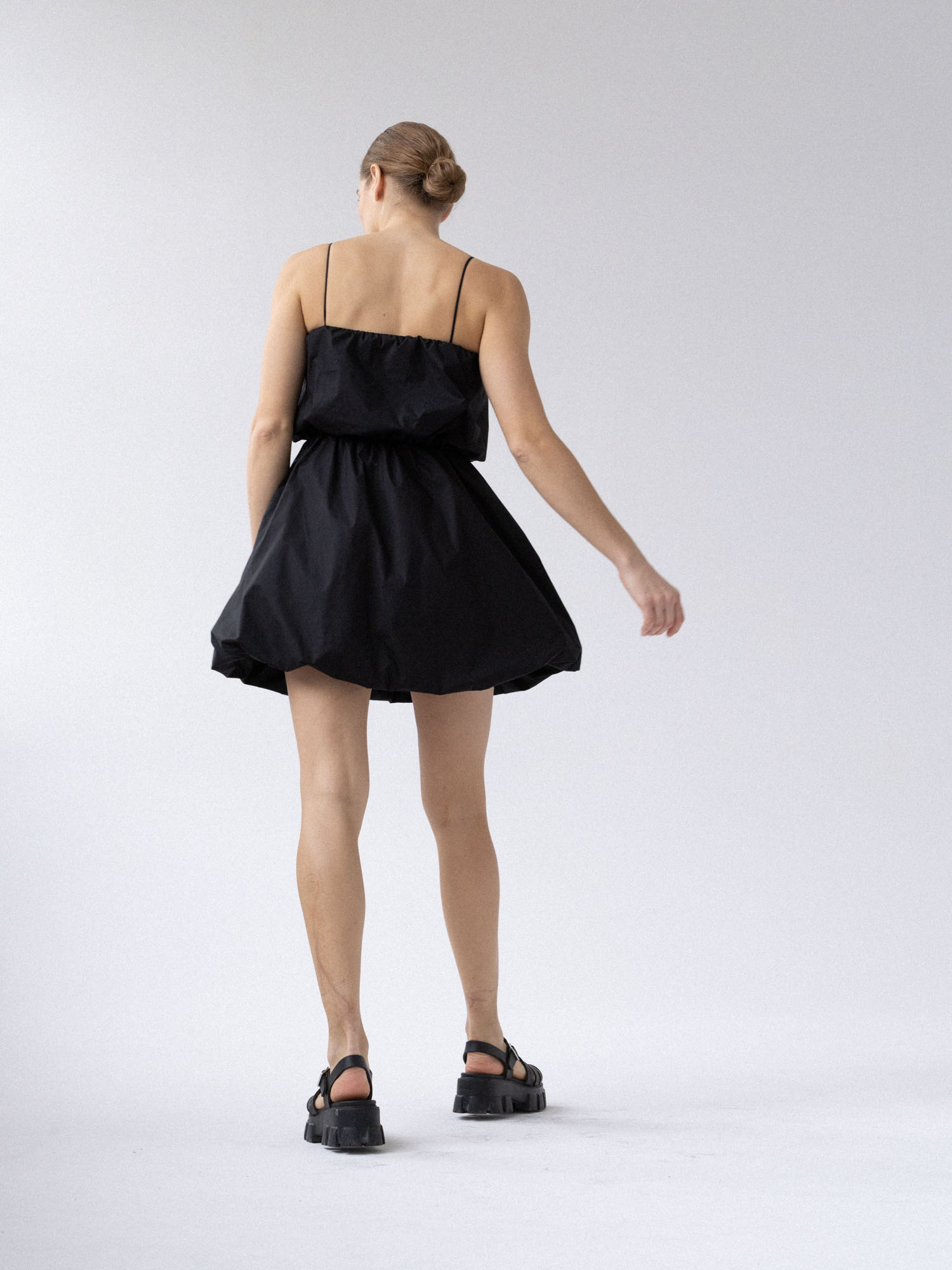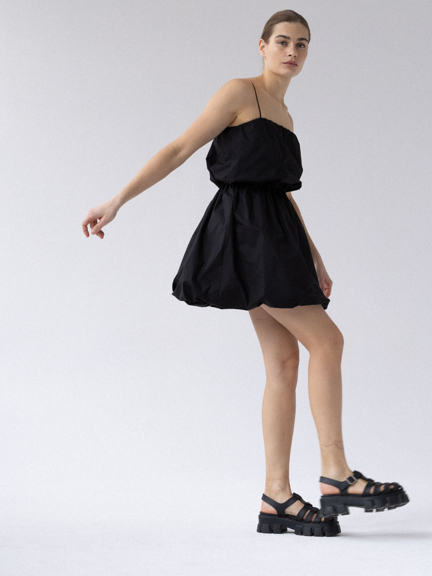 Sukienka o klasycznym i minimalistycznym kroju na cienkich ramiączkach. Delikatnie rozkloszowana z elastyczną gumką w talii. Uszyta z gładkiej bawełny. Pięknie podkreśla sylwetkę.