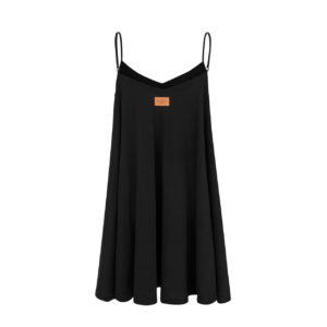 Sportowa sukienka na cienkich ramiączkach, typu oversize z kolekcji LUST FOR THE SUN. Wykonana z jakościowej bawełny o obniżonej gramaturze, dzięki czemu jest bardzo przewiewna i doskonale sprawdzi się podczas upalnych dni. Model zarówno z przodu jak i tyłu posiada dekolt w kształcie litery V oraz pionowe przeszycia. Delikatne, cienkie ramiączka posiadają trwałe, metalowe regulatory, które umożliwiają dopasowanie sukienki do swojej sylwetki. Dzięki specjalnej konstrukcji ramiączka nie spadają z ramion. Z tyłu pod wycięciem wszyta metka z ekoskóry z delikatnie wytłoczonym logo marki.