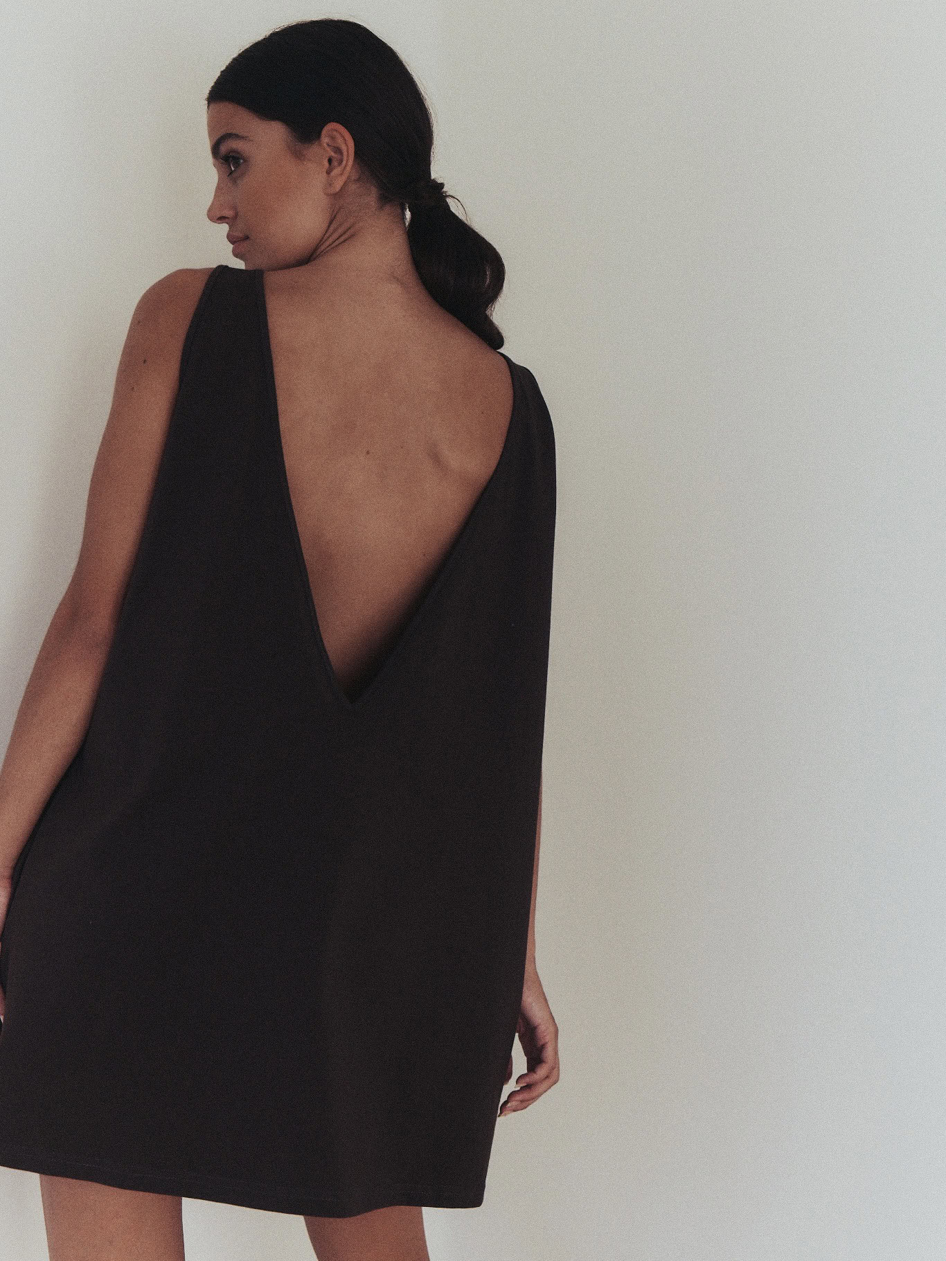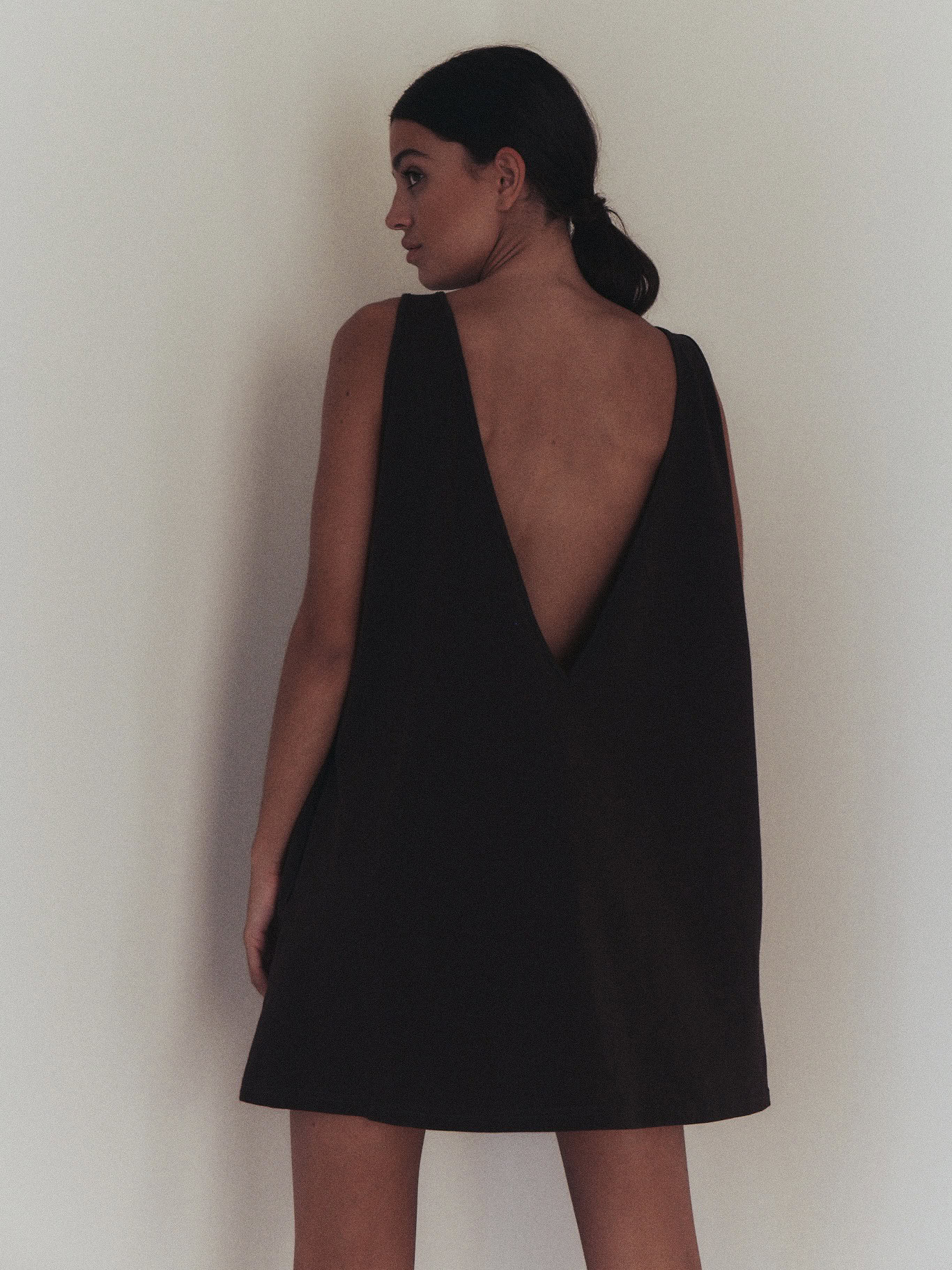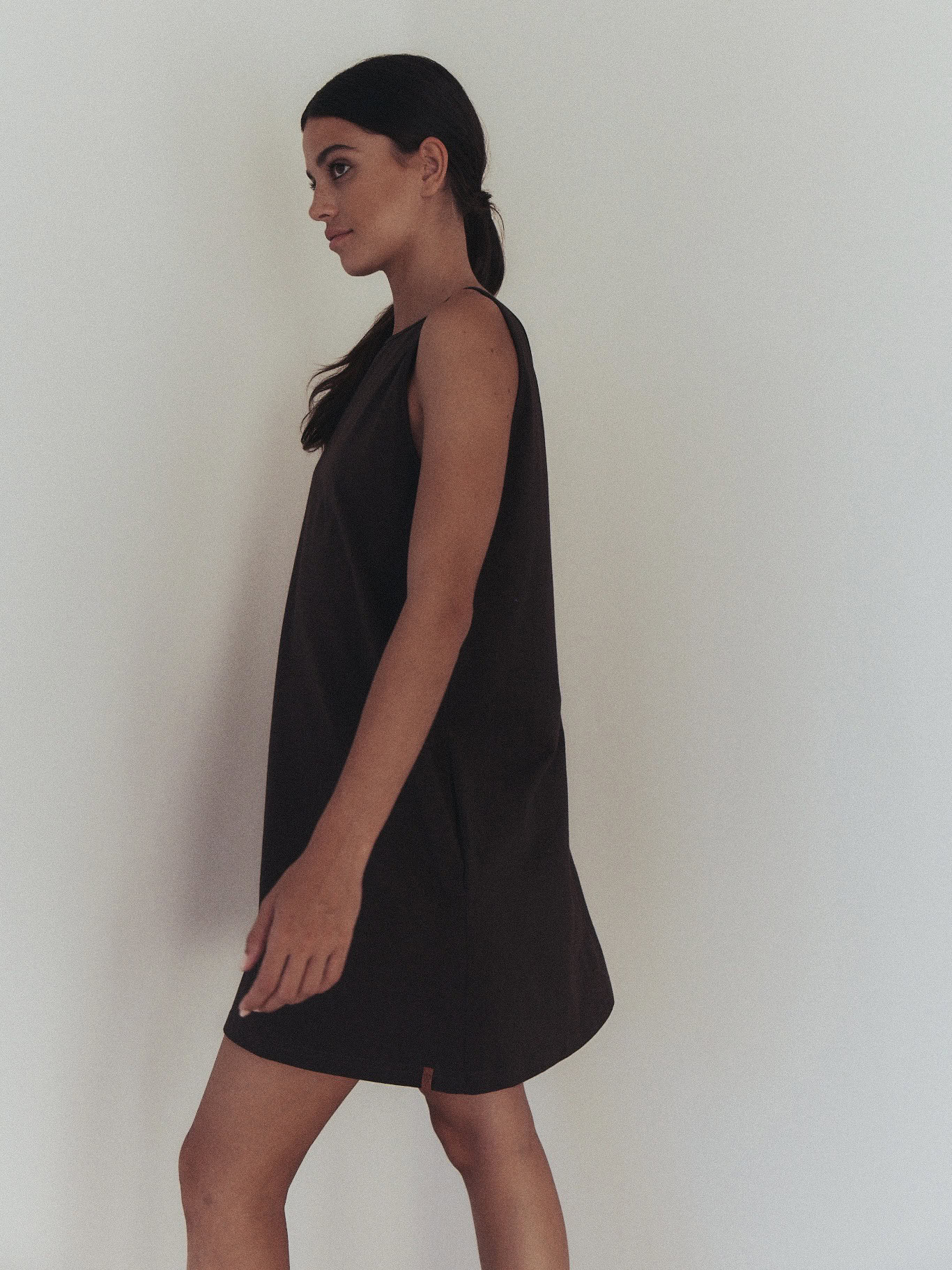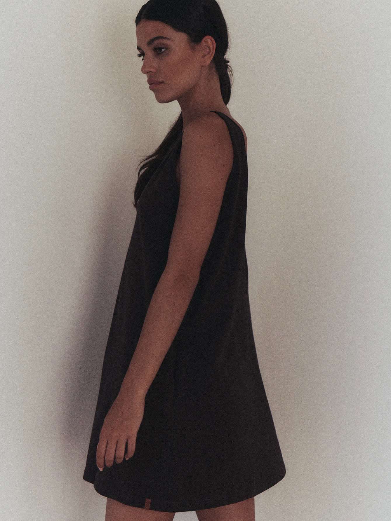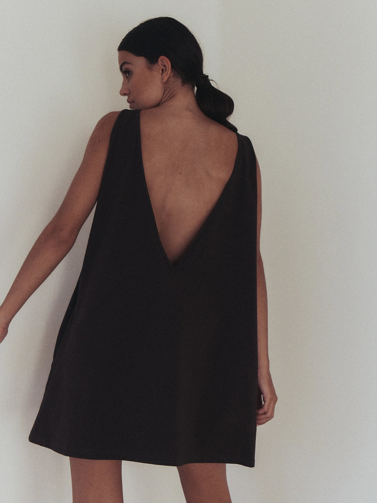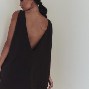 Sportowa sukienka na grubszych ramiączkach, typu oversize. Z przodu minimalistyczny dekolt, z tyłu niesamowicie głębokie wycięcie, w kształcie litery V. Produkt założony na gołe ciało doskonale podkreśla linię pleców. Dzięki specjalnej konstrukcji sukienka nie spada z ramion. Z przodu bardzo funkcjonalne dwie głębokie, wewnętrzne kieszenie. Doskonale sprawdzi się zarówno na co dzień do pracy, jak i wieczorne wyjście.