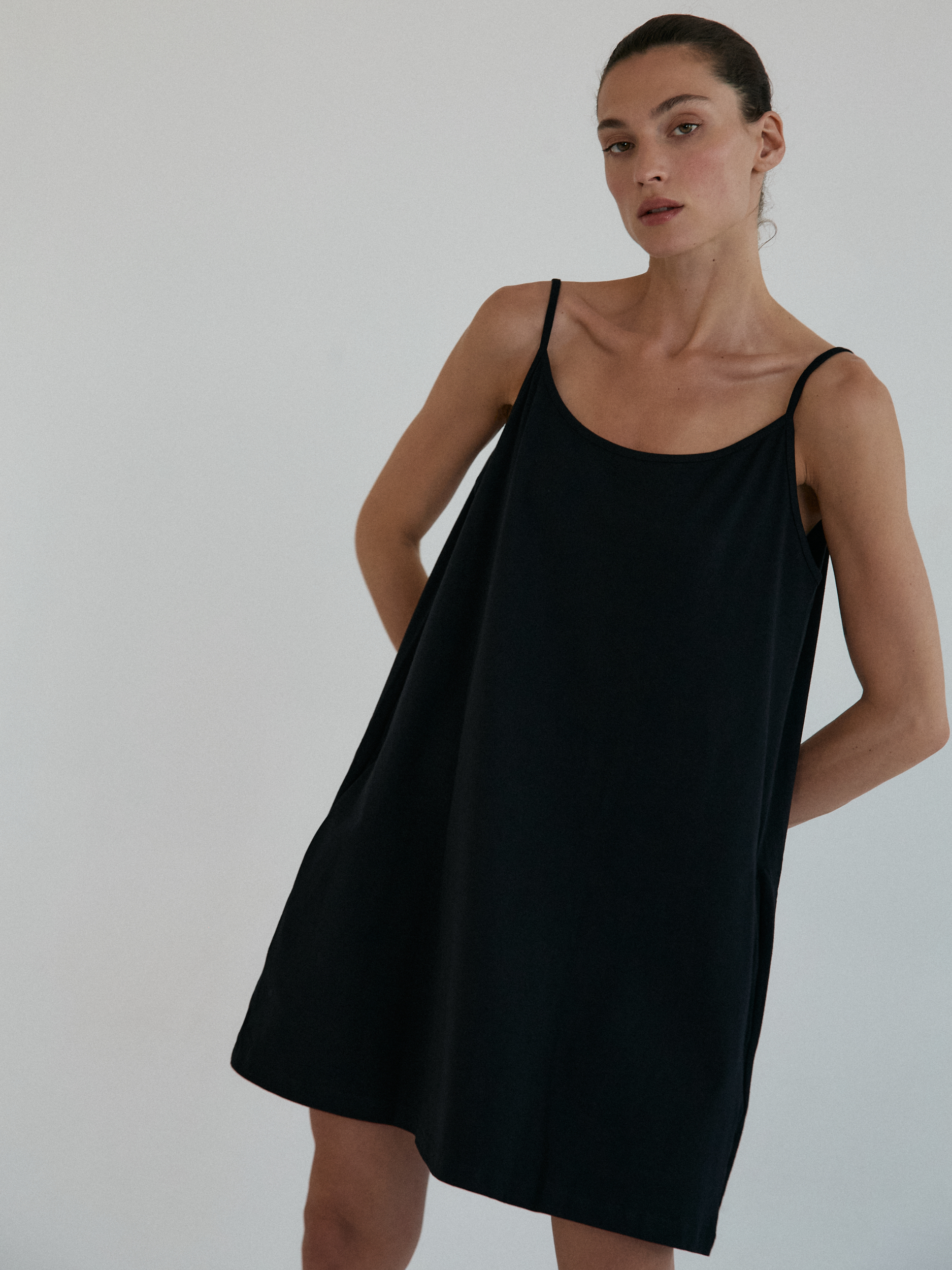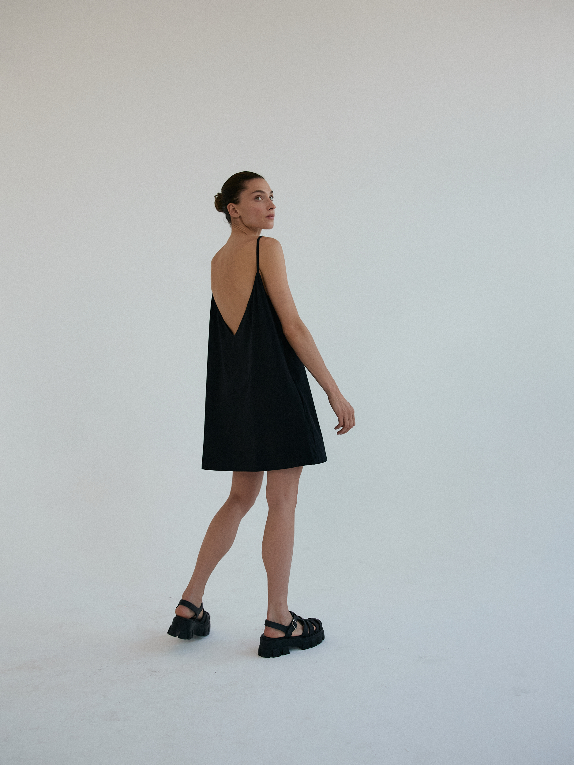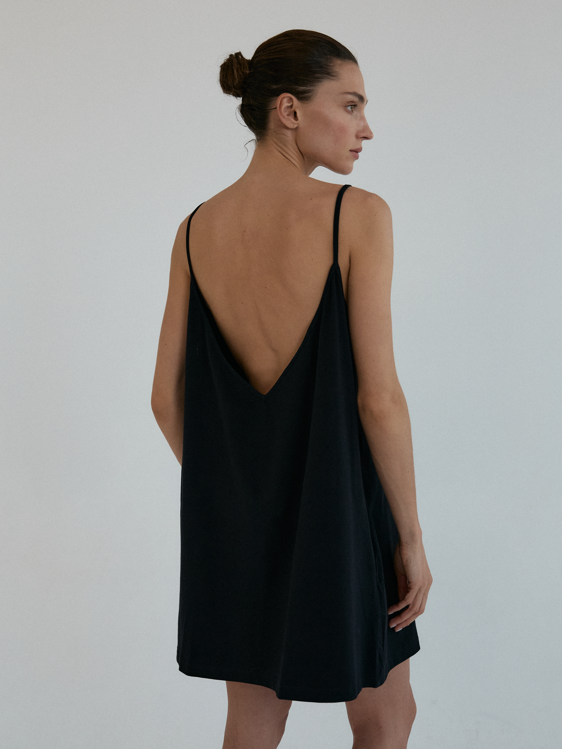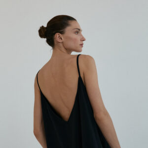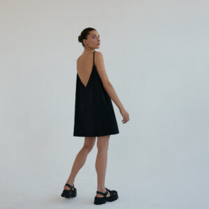 Sportowa sukienka na delikatnych, cienkich ramiączkach, typu oversize z kolekcji TUMBLR GRLS. Z przodu minimalistyczny dekolt, z tyłu niesamowicie głębokie wycięcie, w kształcie litery V. Produkt założony na gołe ciało doskonale podkreśla linię pleców. Świetnie gra również w komplecie z naszymi stanikami lub body DEEP.CUT. Dzięki specjalnej konstrukcji sukienka nie spada z ramion. Z przodu bardzo funkcjonalne dwie głębokie, wewnętrzne kieszenie.