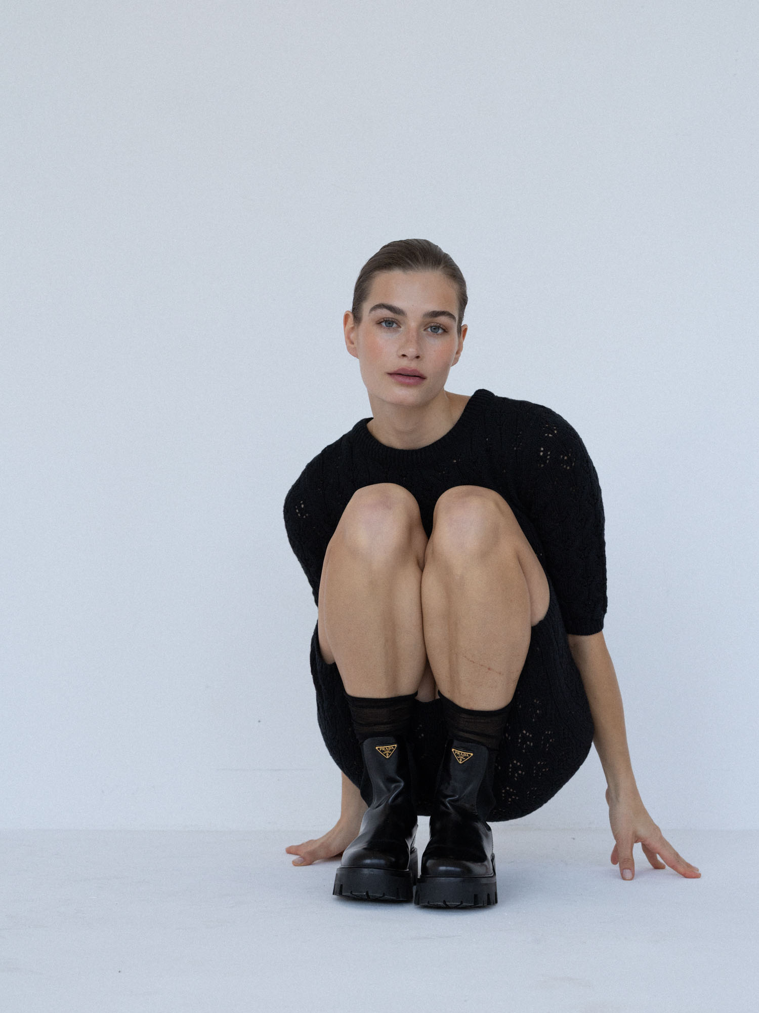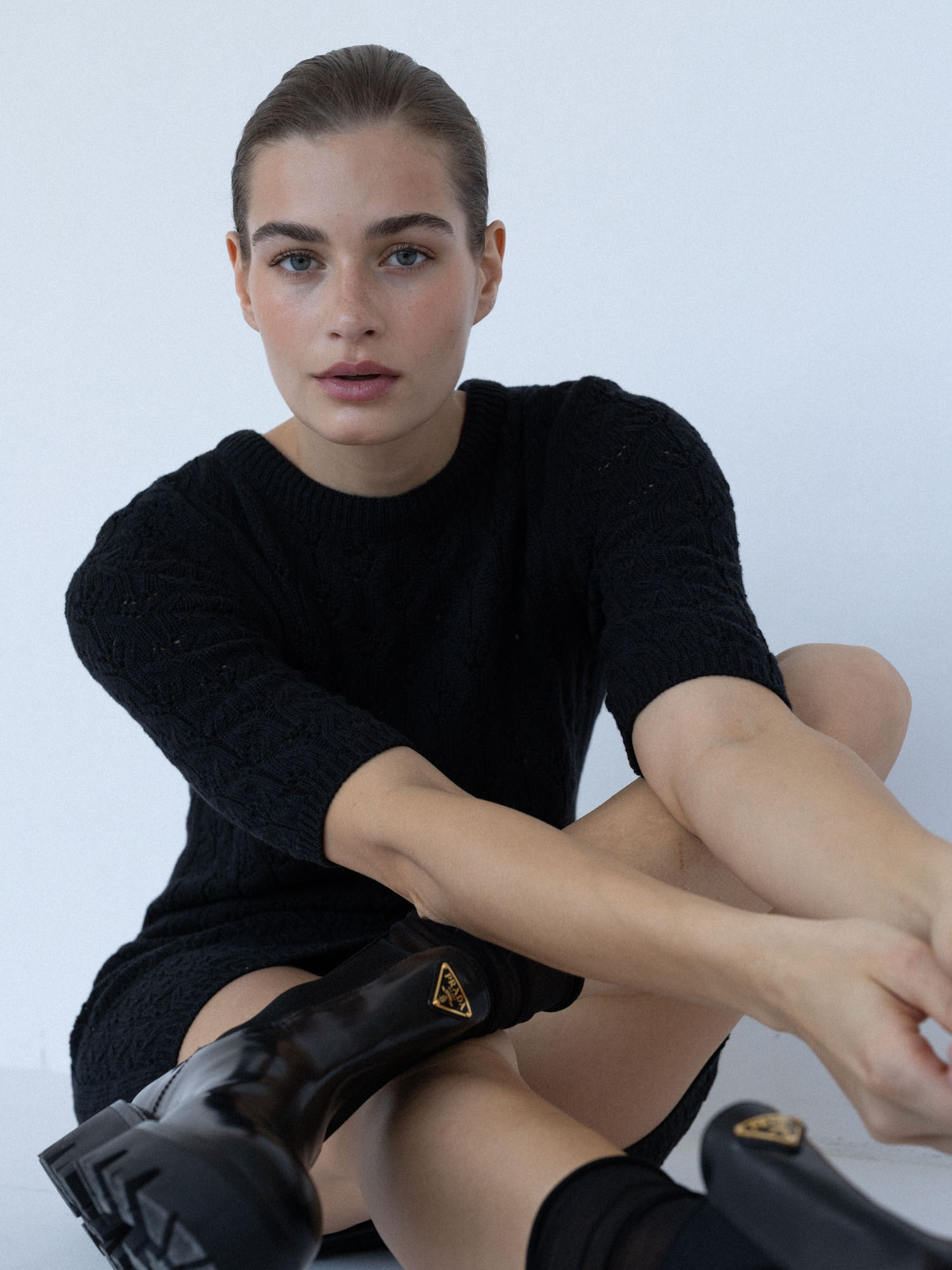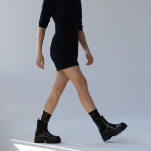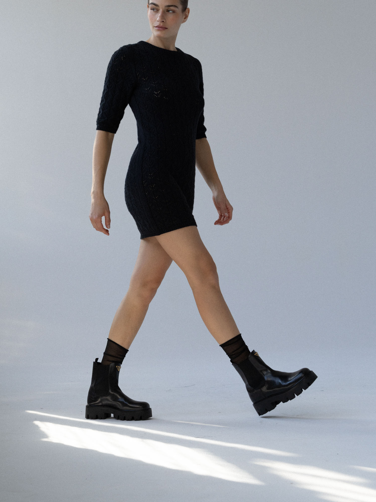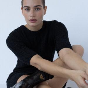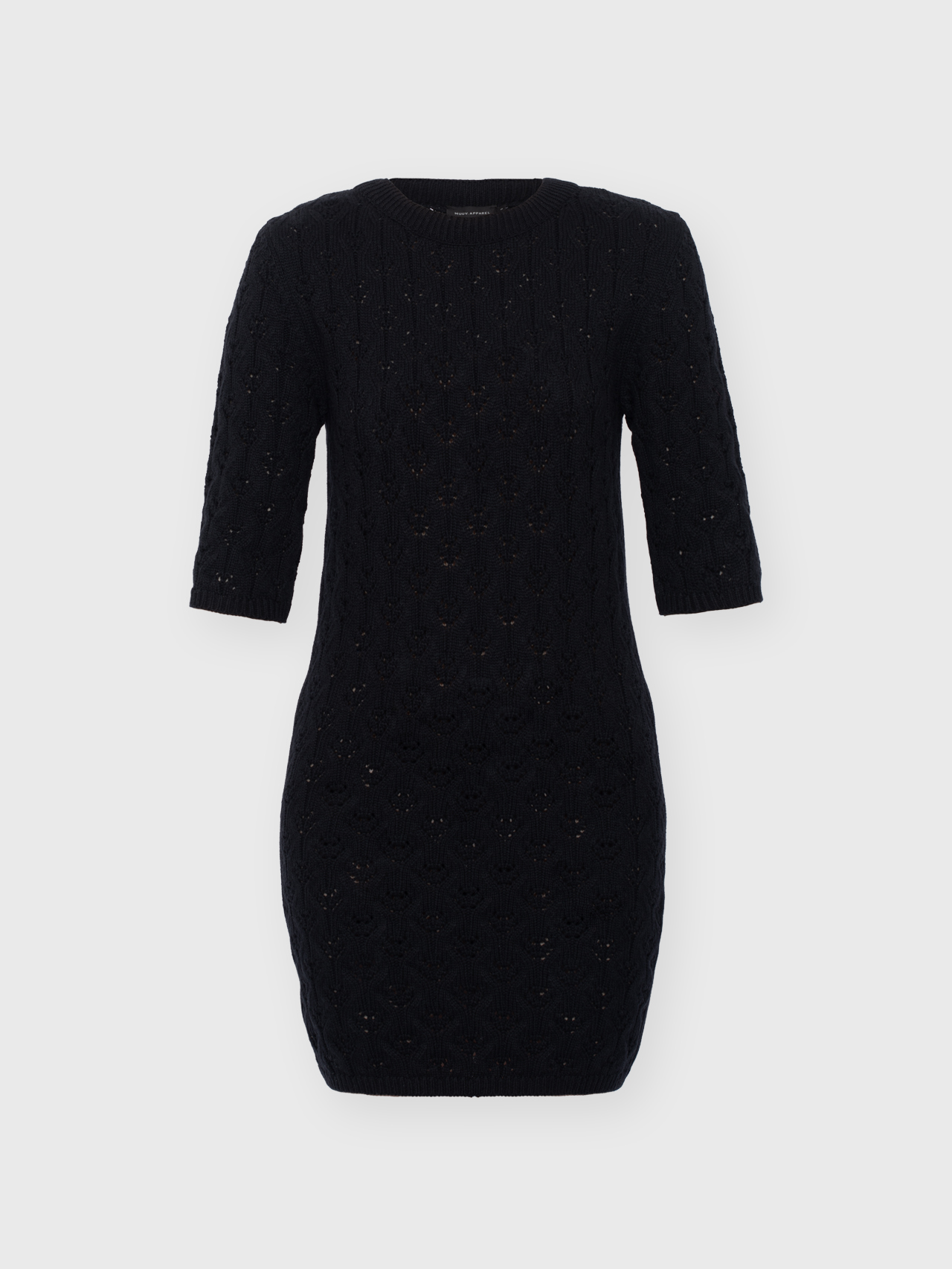 Minimalistyczna sukienka z krótkim rękawem o klasycznym, ponadczasowym kroju. Lekko wytaliowany fason z dopasowanym rękawkiem oraz ściągaczami przy rękawach i szyi subtelnie podkreśla sylwetkę. Ażurowy, lekko prześwitujący splot nadaje jej lekkości i delikatnego charakteru, a elastyczna dzianina naturalnie dopasowuje się do ciała.