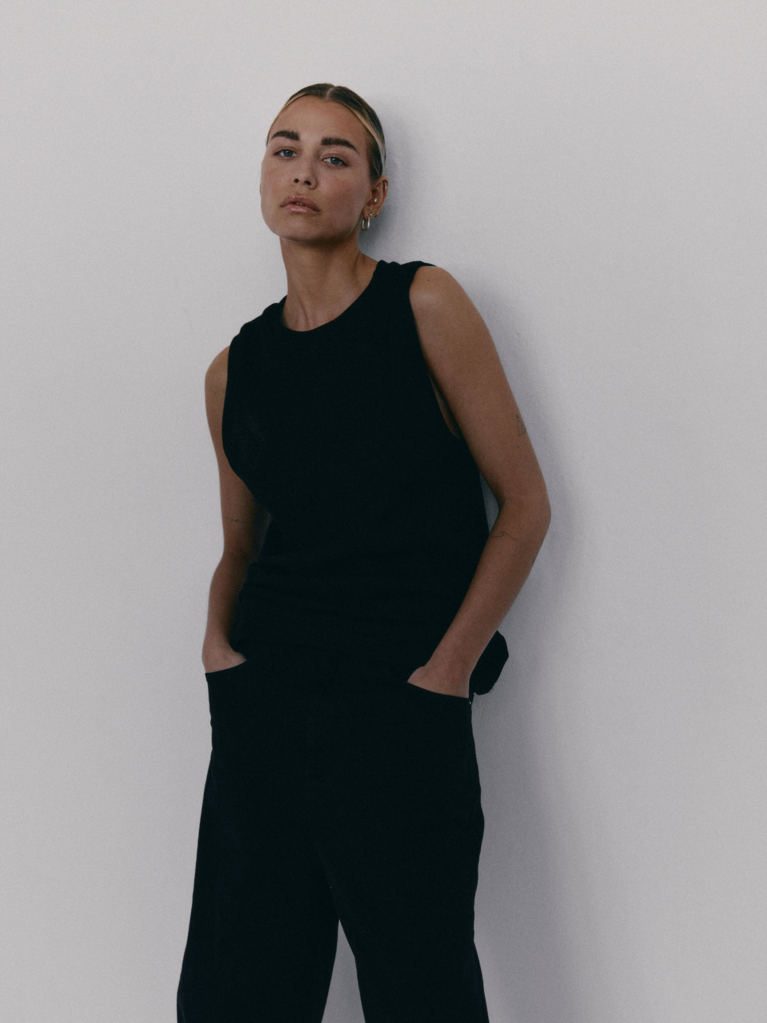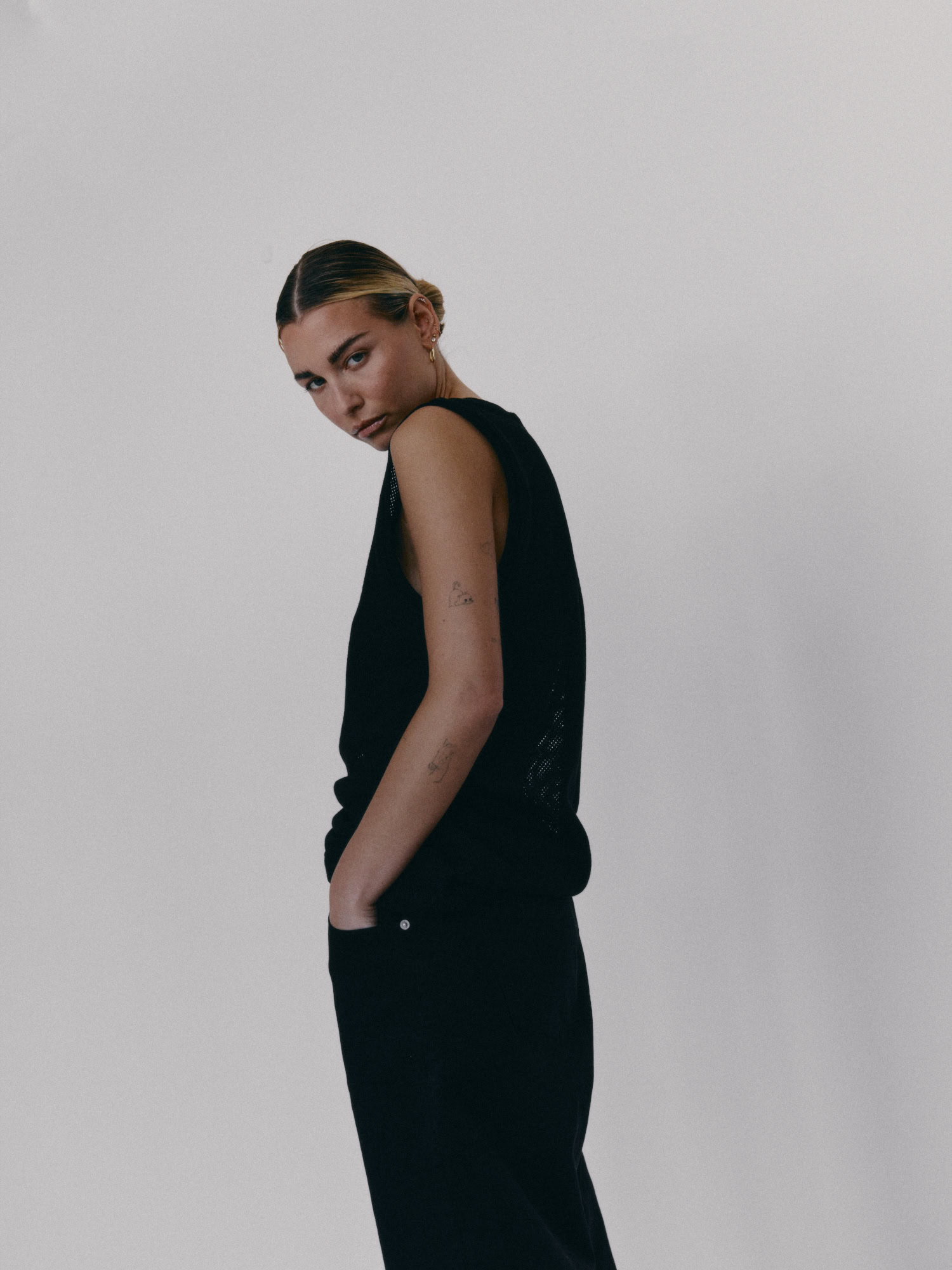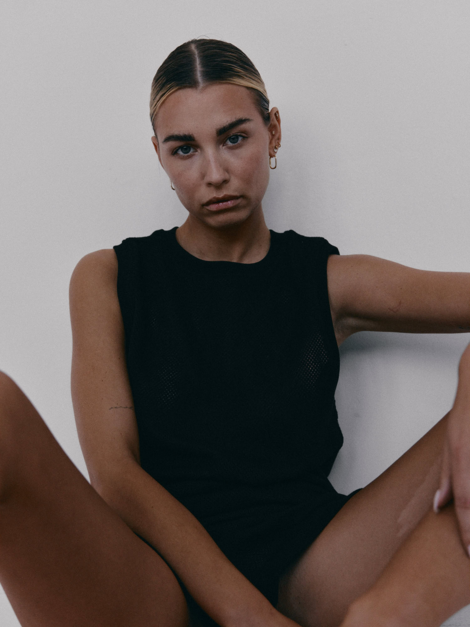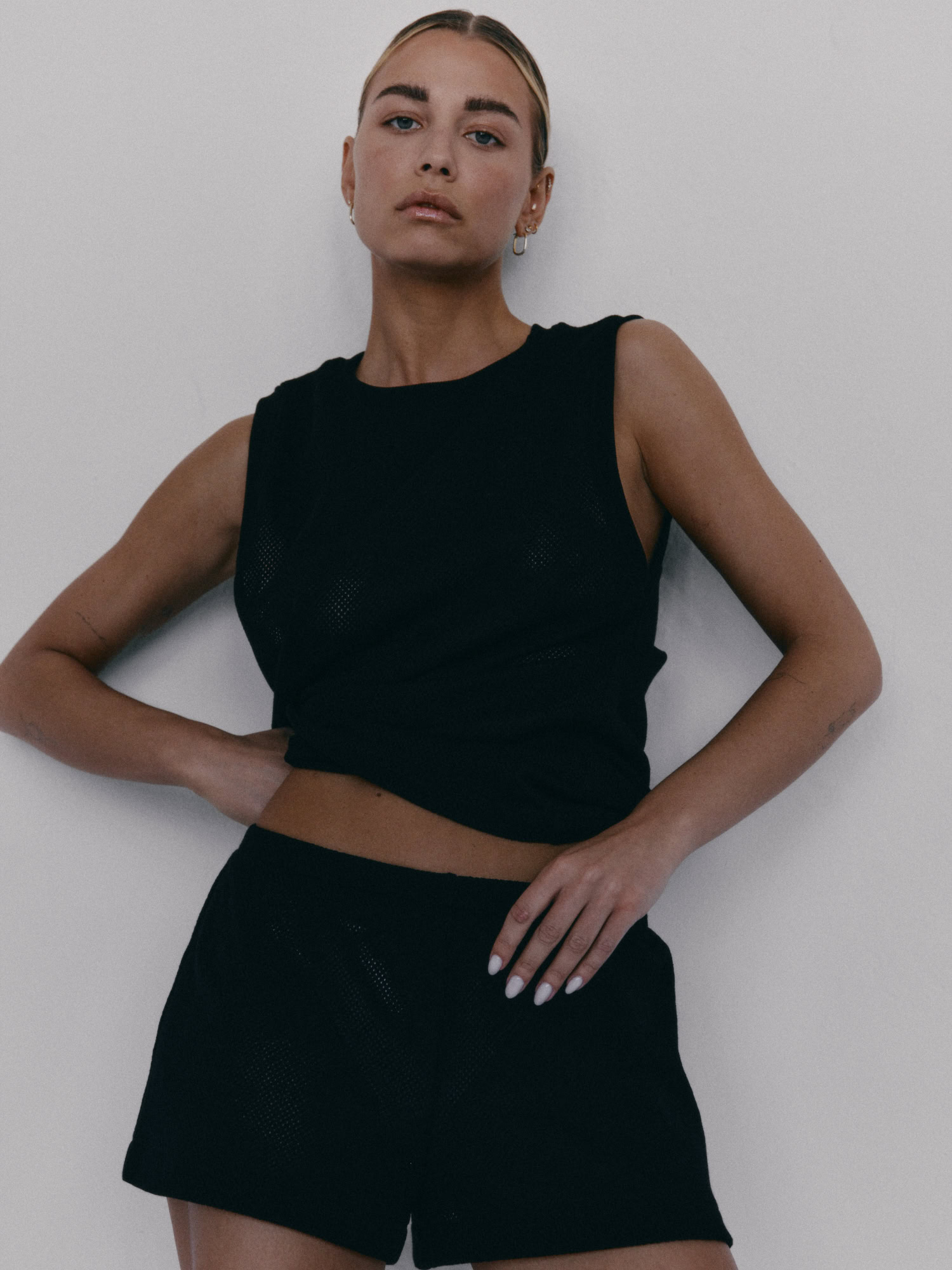 Siateczkowy top typu kamizelka, o luźnym kroju. Dekolt oraz rękawy wykończone ściągaczem. Wygodna i minimalistyczna. Idealnie sprawdzi się w stylizacjach sportowych jak i casualowych. Ze spodenkami LLARD tworzy zestaw doskonały.