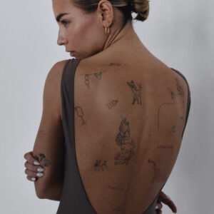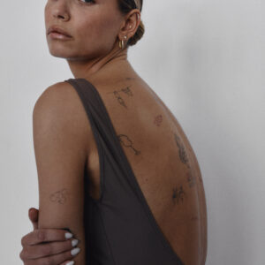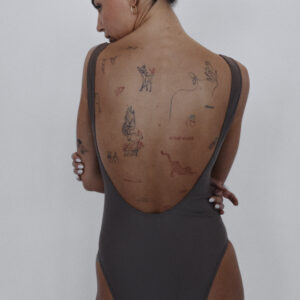 Jednoczęściowy kostium kąpielowy z bardzo dużym wycięciami na biodrach oraz plecach. Model podkreśla linię pleców i optycznie wydłuża nogi.
