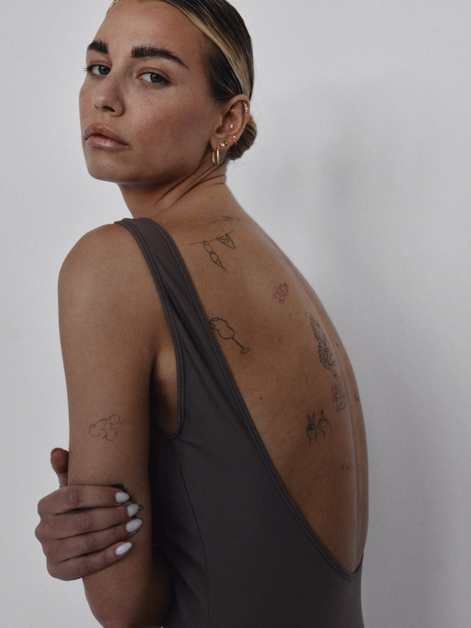 kostium kąpielowy typu open-back V SWIMSUIT cappuccino
